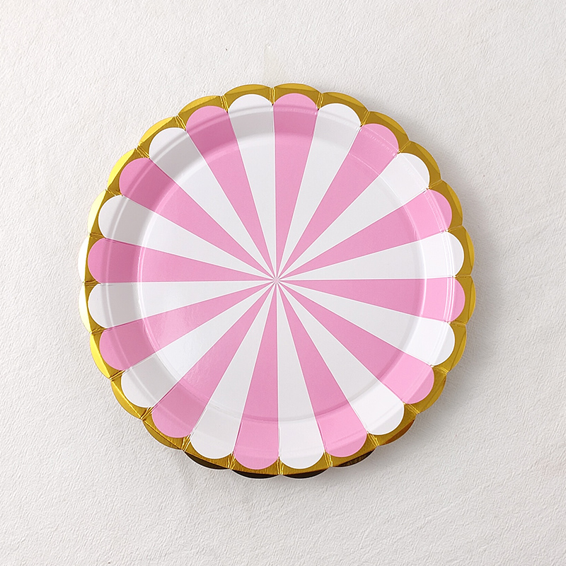 • 7inch 핫 스탬핑 줄무늬 핑크 종이 접시 - 10개