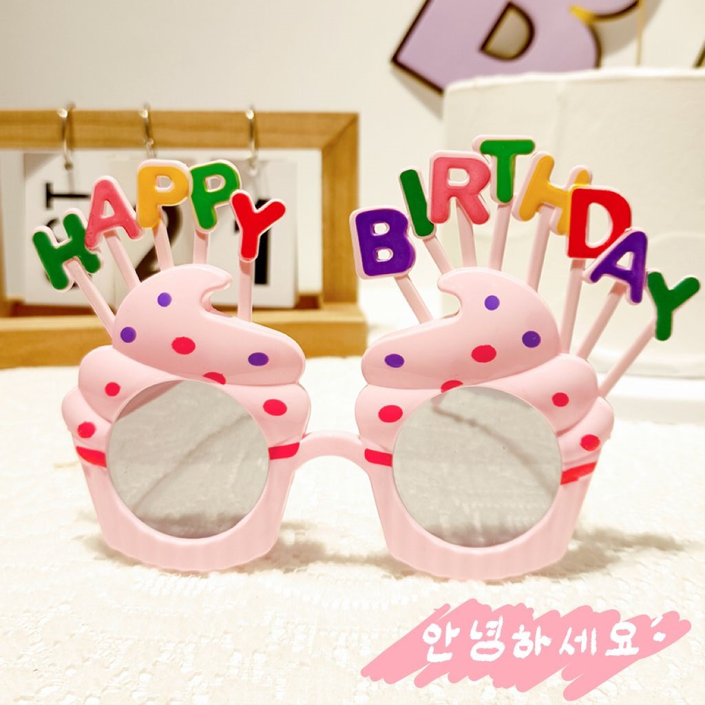 • 8-82 생일 편지 안경 - 핑크 프레임과 회색 렌즈