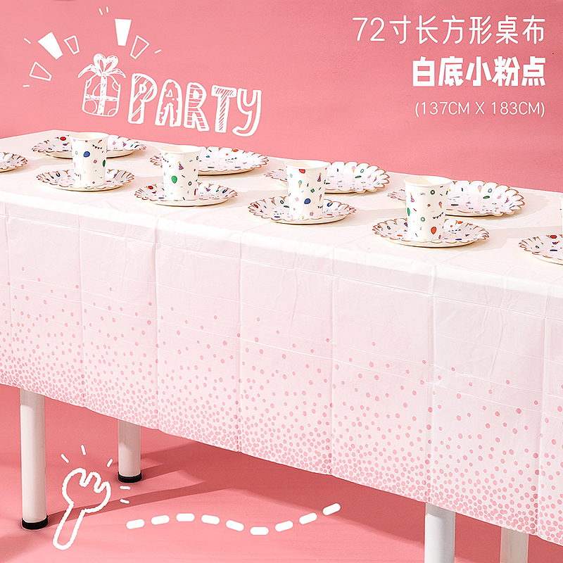 • 흰색 배경에 작은 분홍색 도트 식탁보