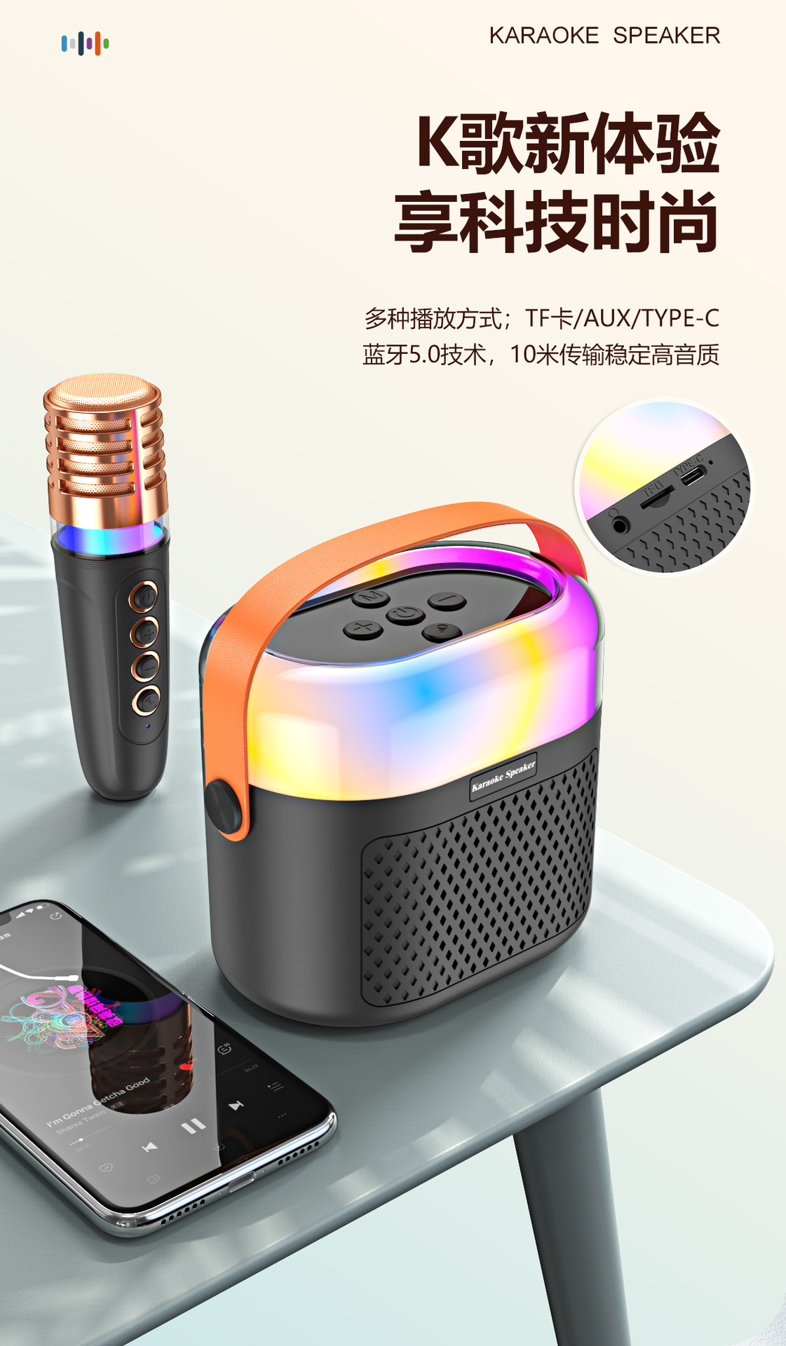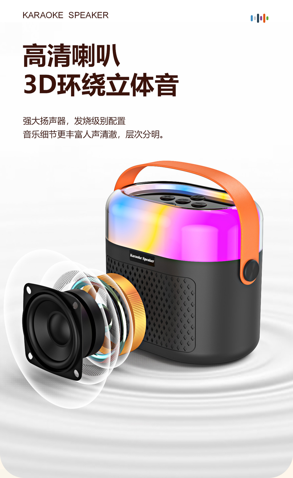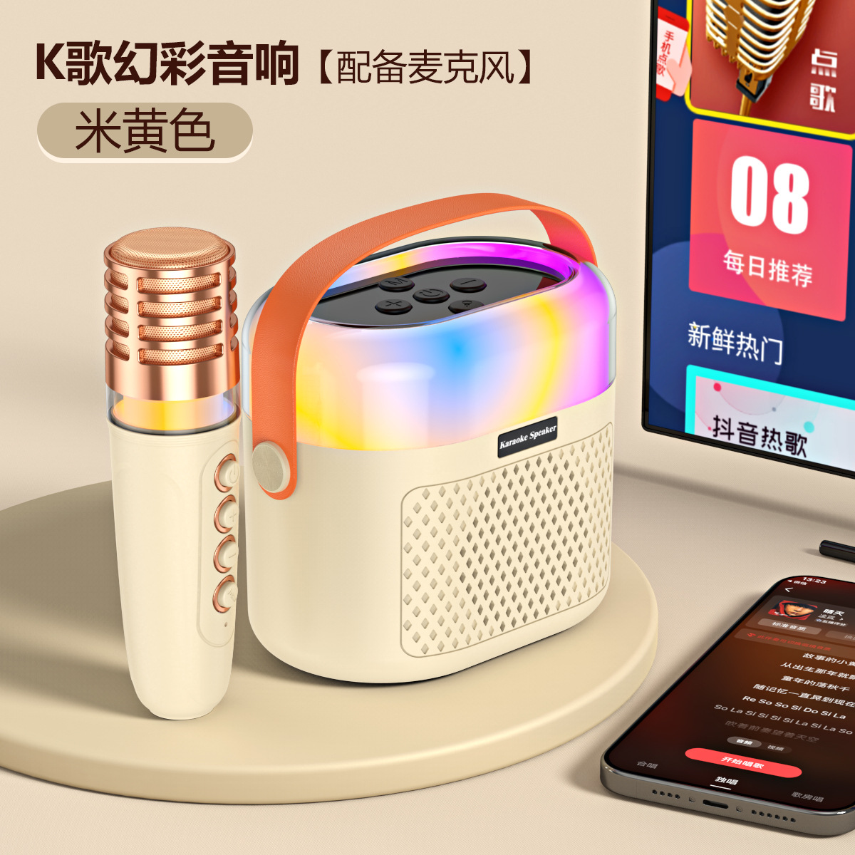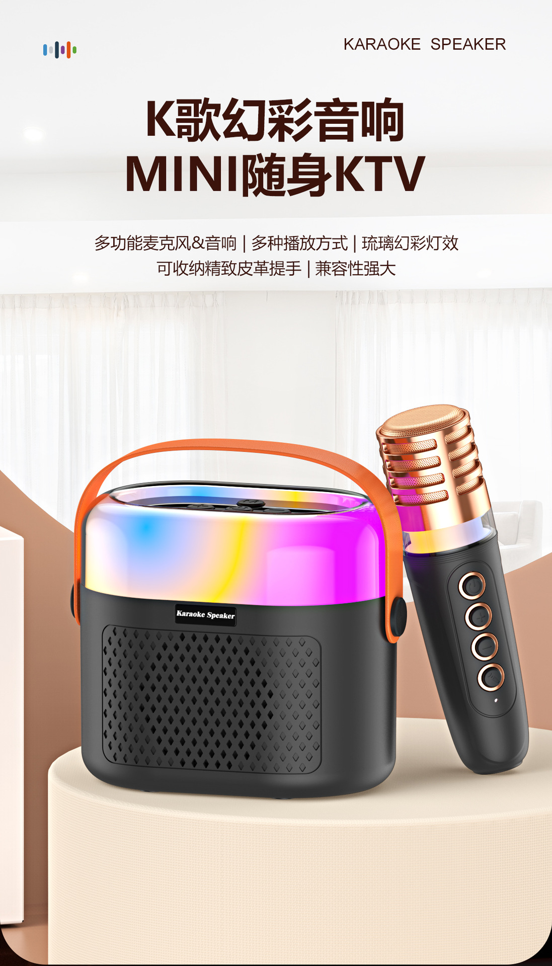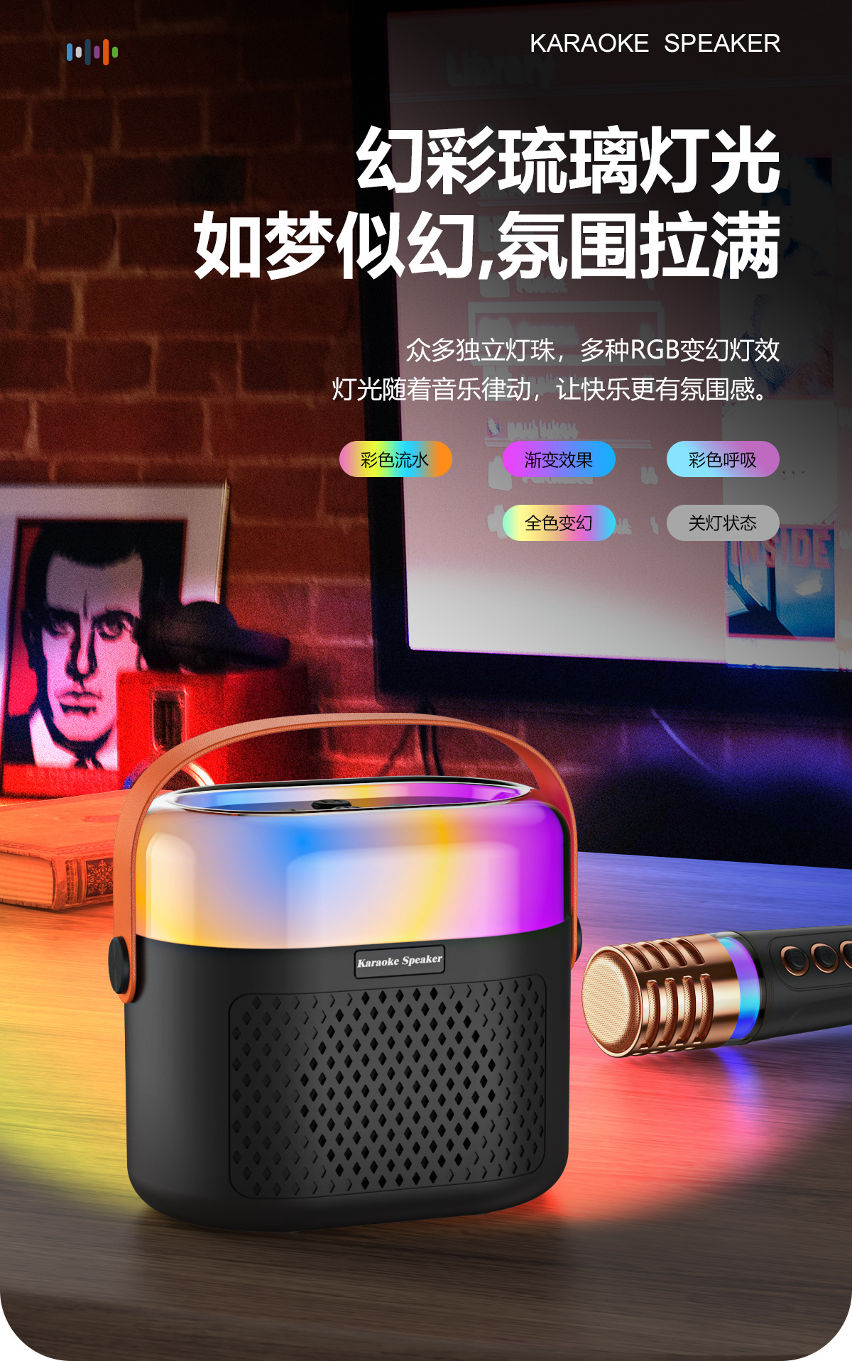 국경 새로운 다채로운 RGB 조명 블루투스 작은 스피커 홈 K-노래 무선 마이크 오디오 통합 세트스토어 가기