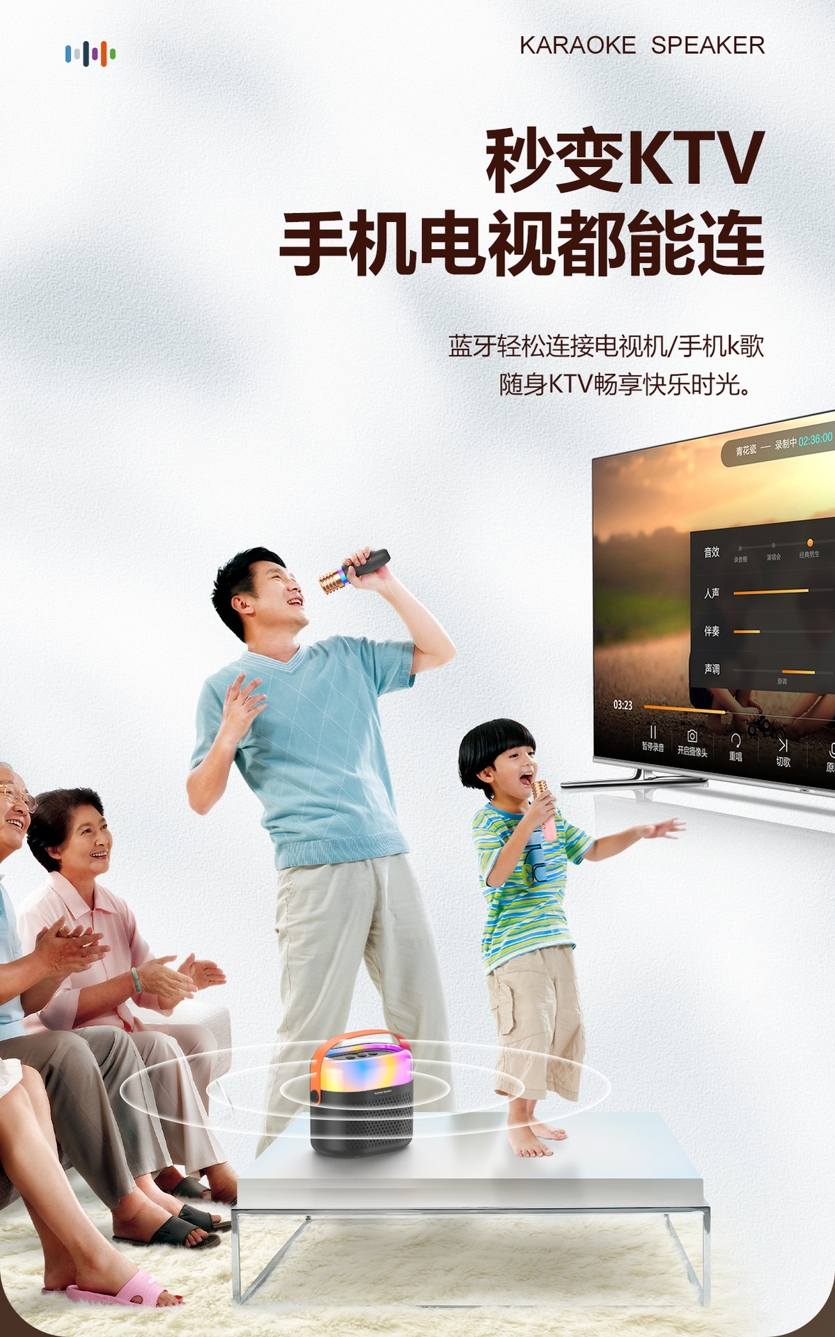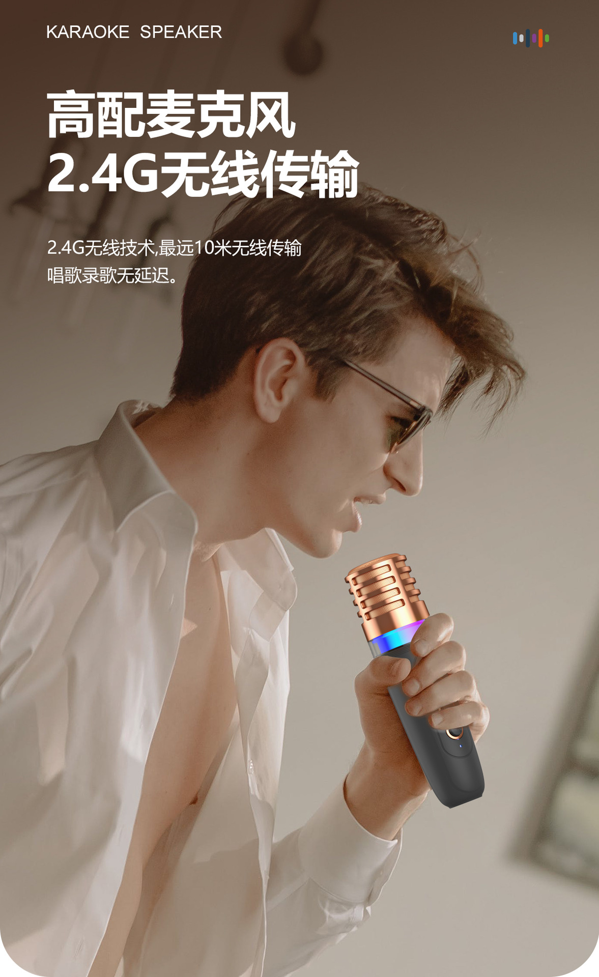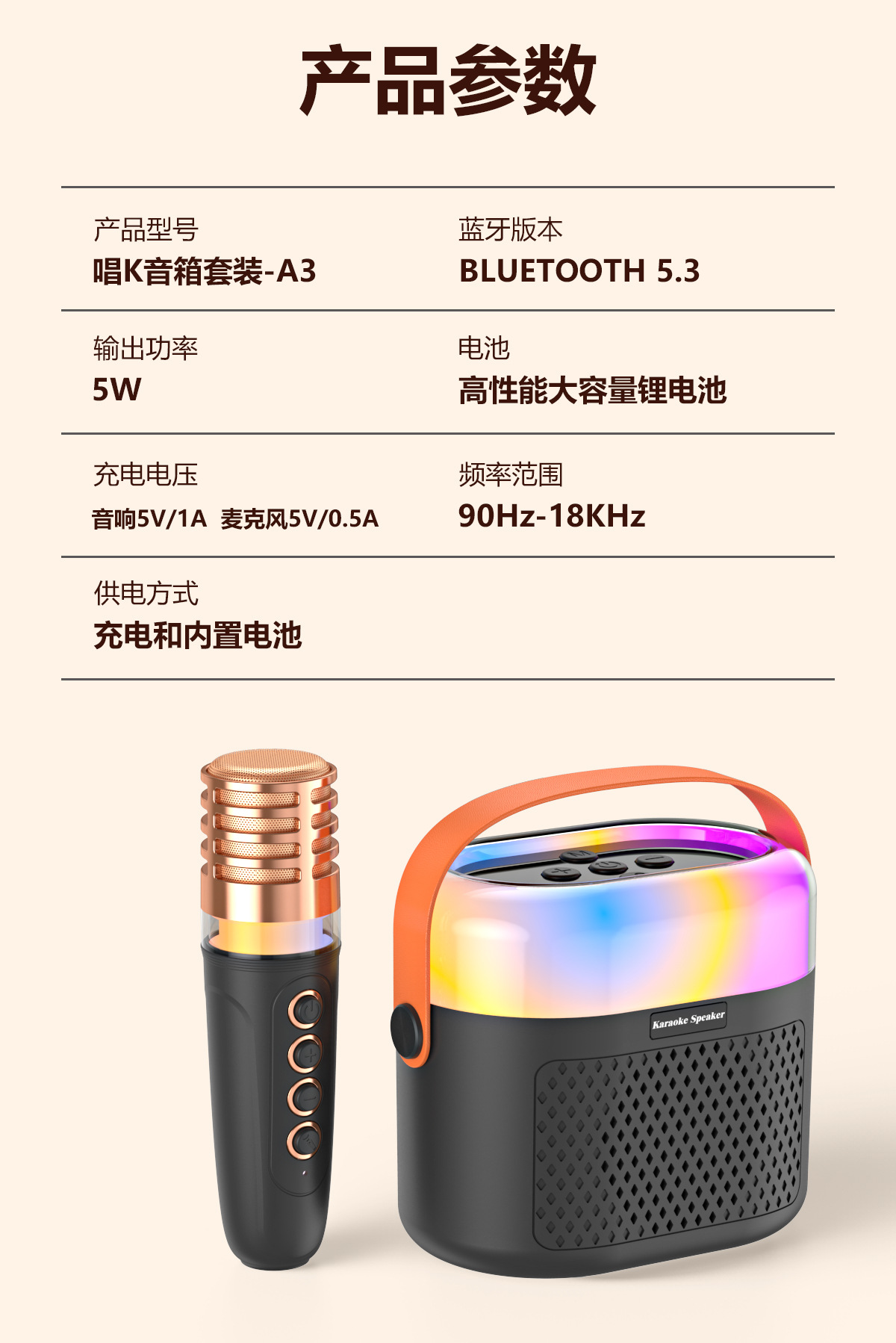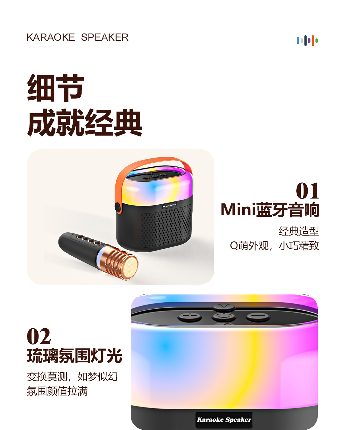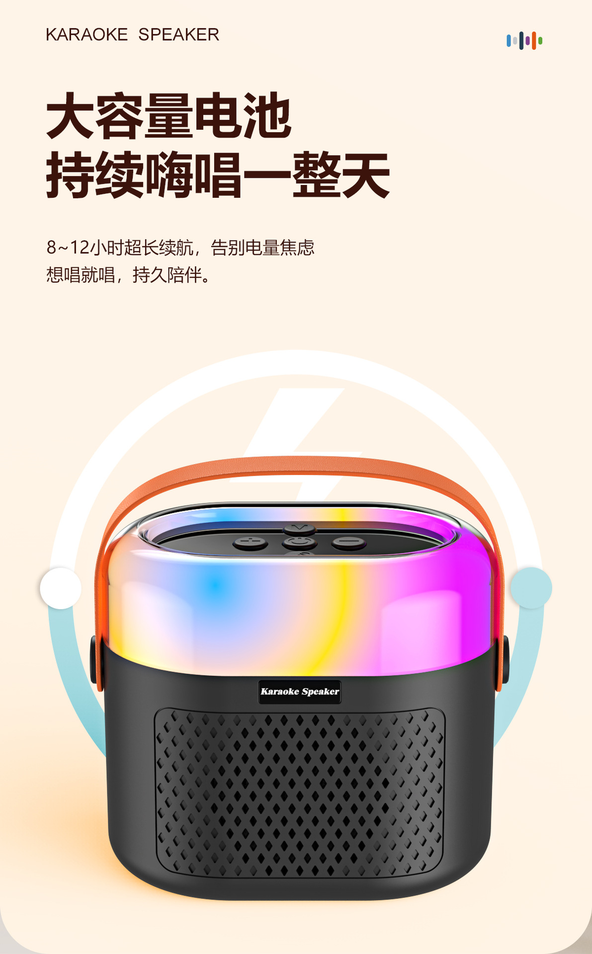 국경 새로운 다채로운 RGB 조명 블루투스 작은 스피커 홈 K-노래 무선 마이크 오디오 통합 세트스토어 가기