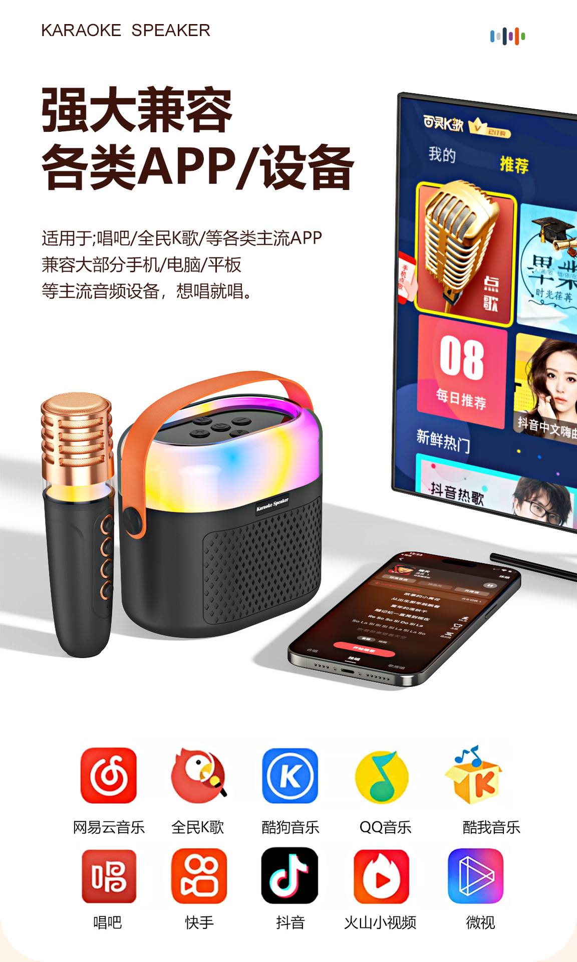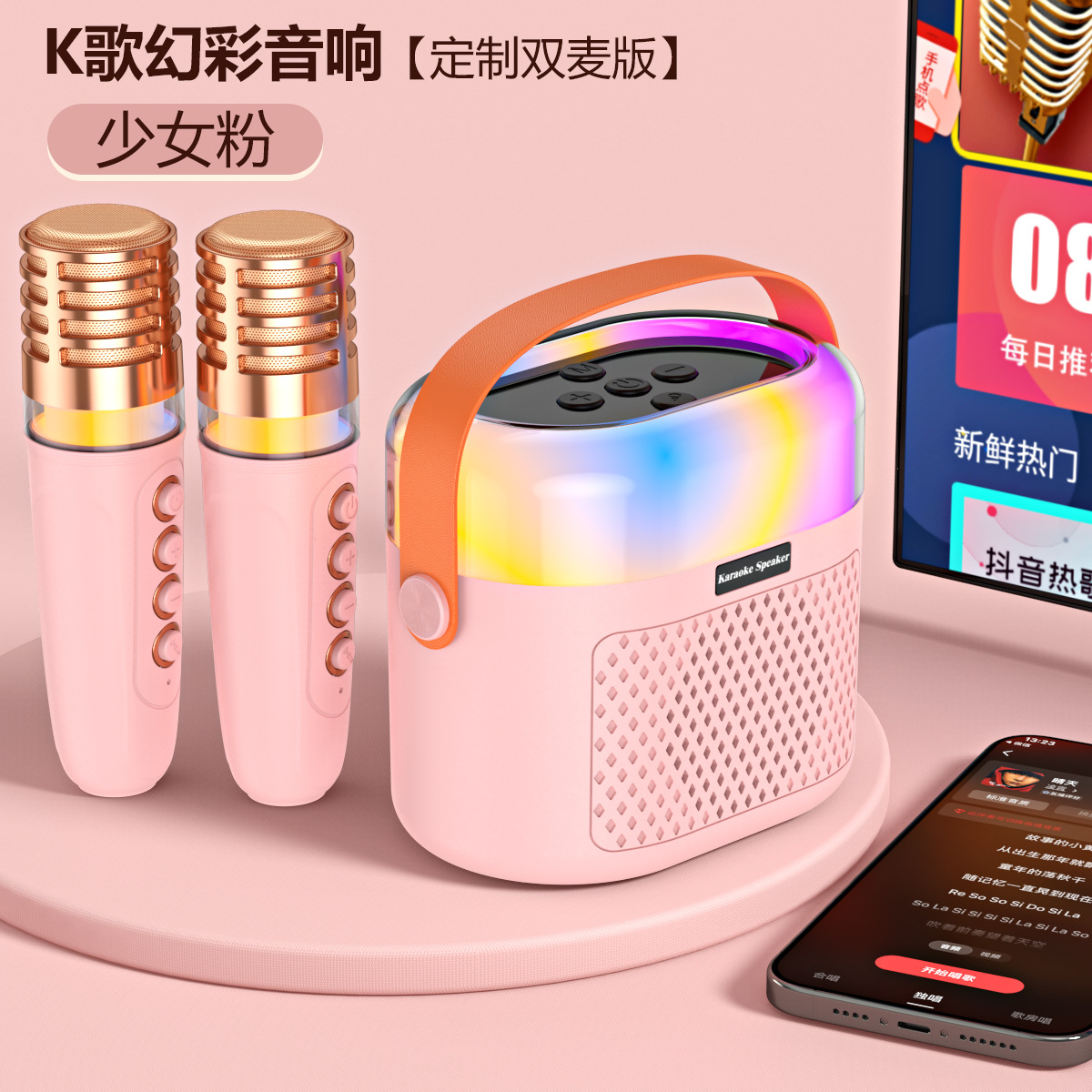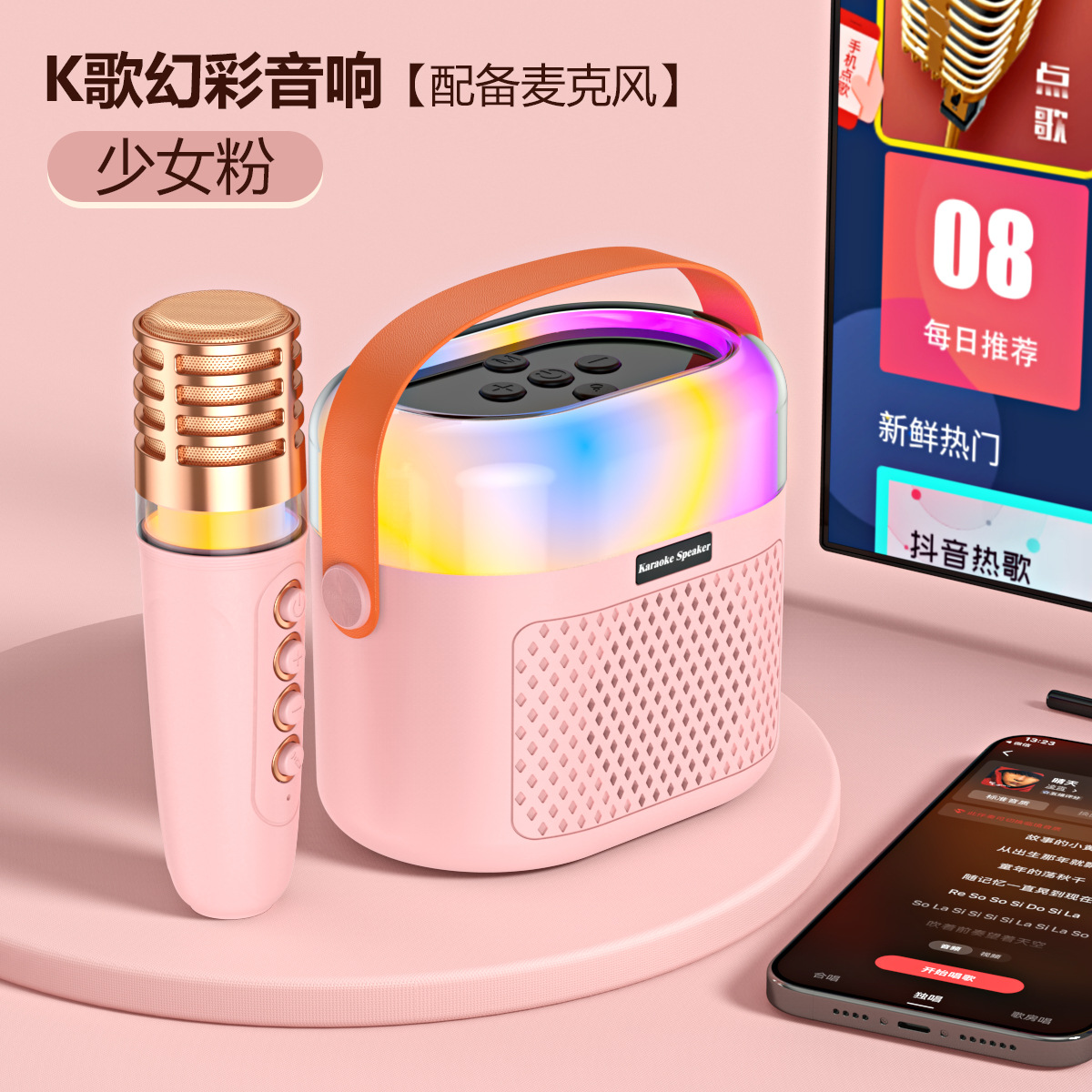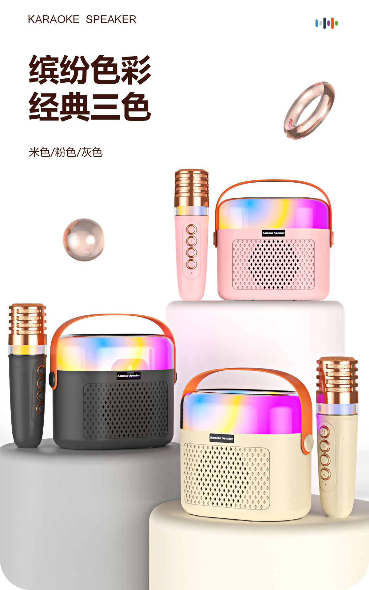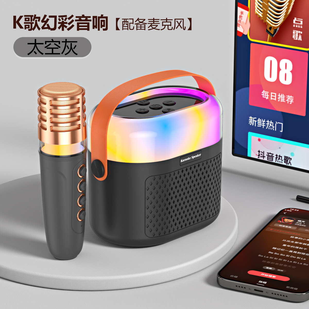 국경 새로운 다채로운 RGB 조명 블루투스 작은 스피커 홈 K-노래 무선 마이크 오디오 통합 세트