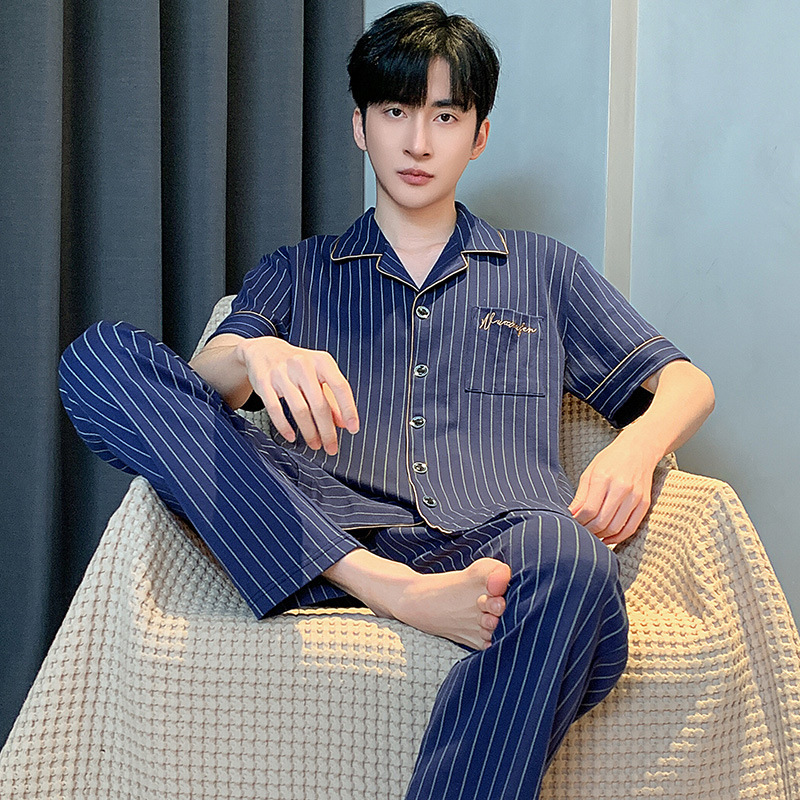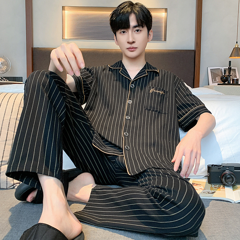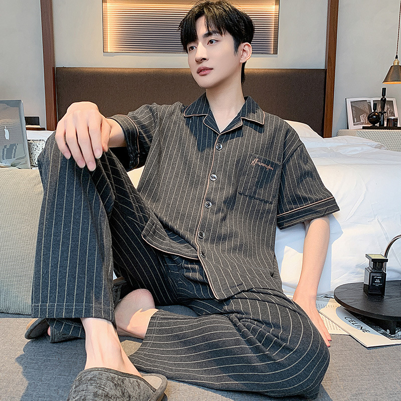 공장 도매 남성 잠옷 여름 2024 새로운 짧은 소매 바지 얇은 카디건 홈 의류 캐주얼 세트스토어 가기