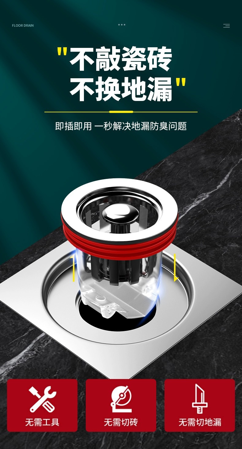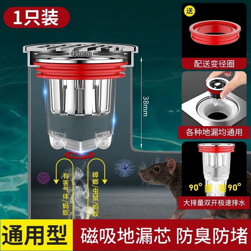 배수구 냄새 방지기, 화장실 하수구 냄새 방지, 탈취, 화장실 방충관, 대형 필터 내장형, 범용스토어 가기