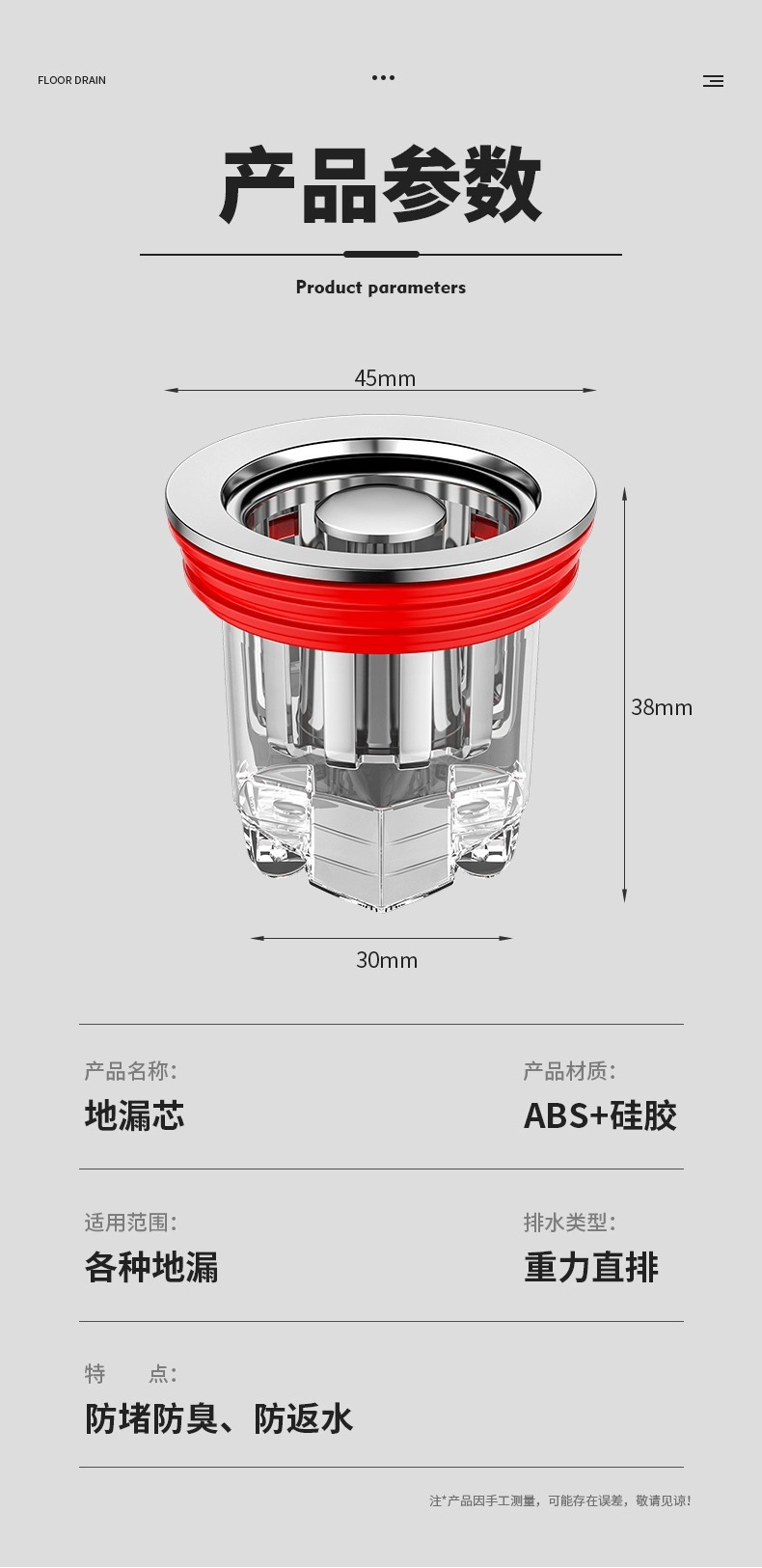 • 자기 흡입 더블 오픈 플로어 드레인 코어 ABS