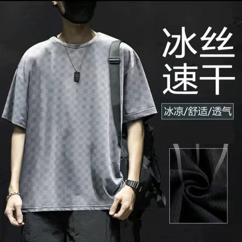 아이스 실크 빠른 건조 남성 캐주얼 세트 여름 얇은 플러스 사이즈 반팔 셔츠 패션 브랜드 스포츠 올매치 세트스토어 가기