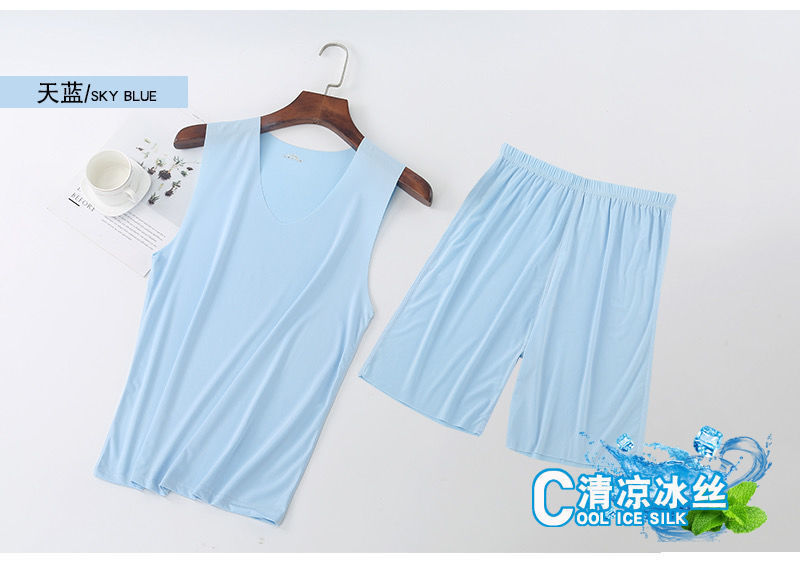 • 아이스 실크 세트-하늘색 [둥근 목 조끼 반바지]]
