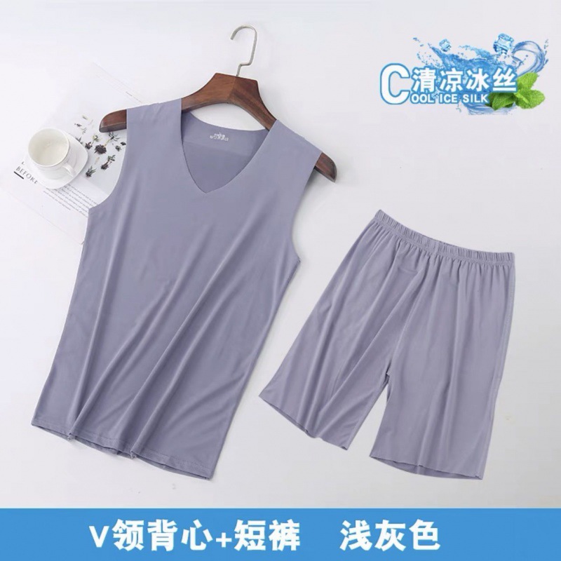 • 아이스 실크 세트 그레이 [V 넥 조끼 반바지]