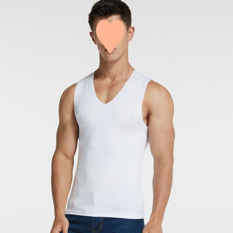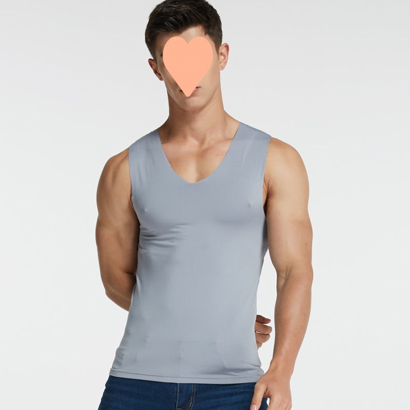 남자 아이스 실크 잠옷 세트 여름 얇은 스포츠 피트니스 목 원활한 조끼 높은 탄성 빠른 건조 반바지