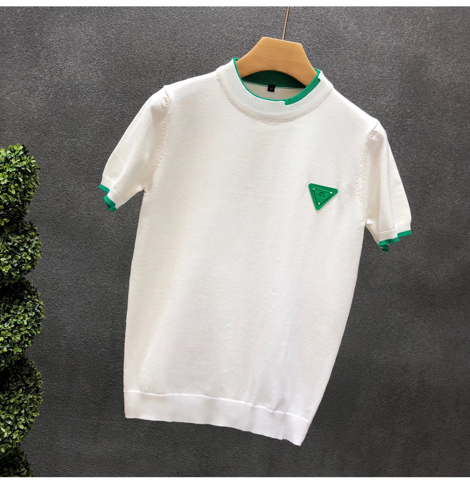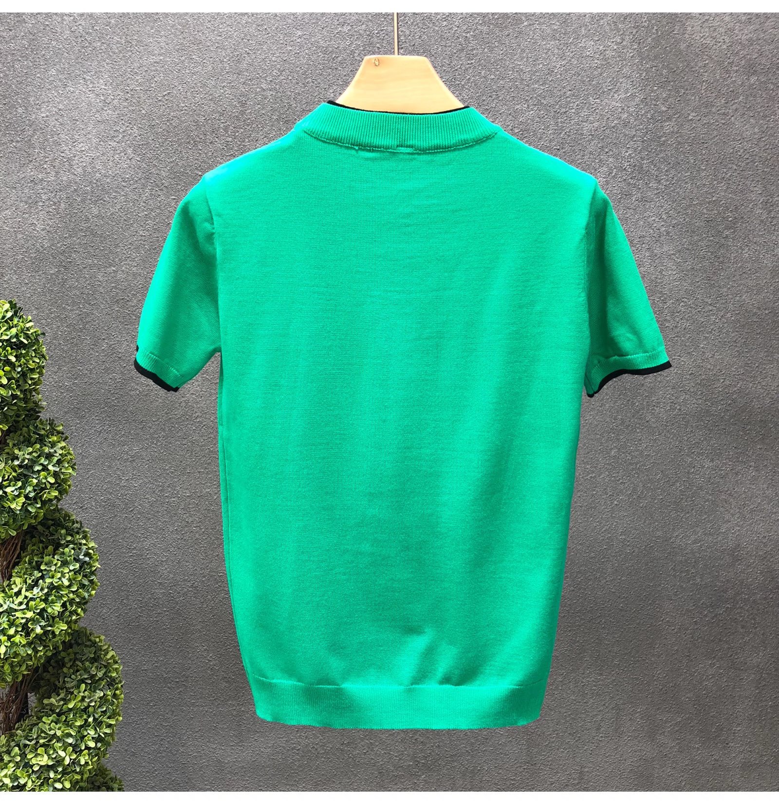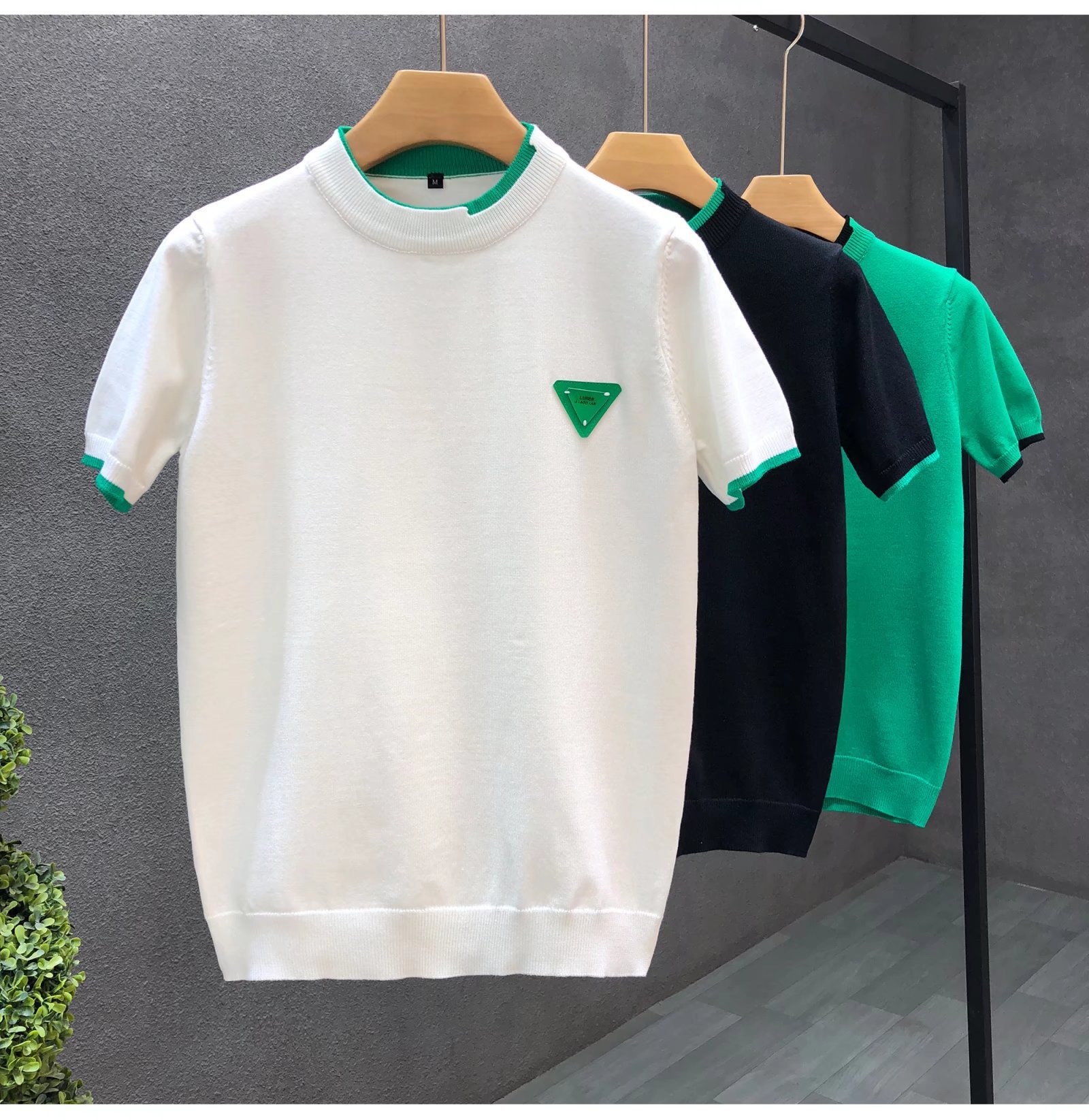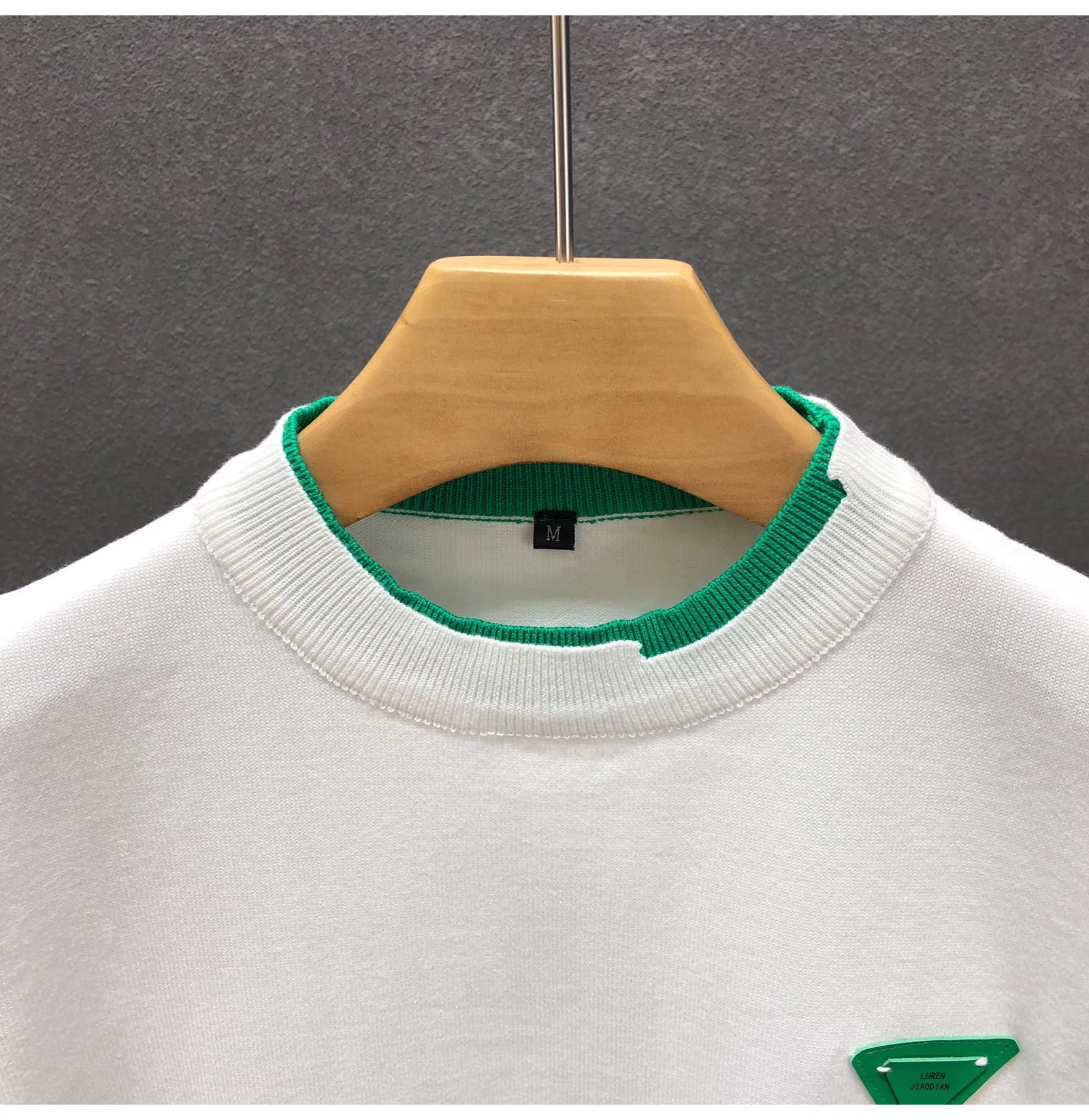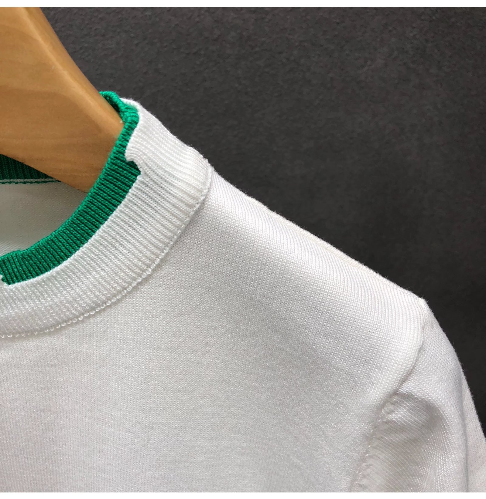 트렌디 한 브랜드 화이트 니트 반팔 아이스 실크 남성용 트렌디 한 핸들 따뜻한 내반소매 스웨터 티셔츠 남성베이스 셔츠스토어 가기