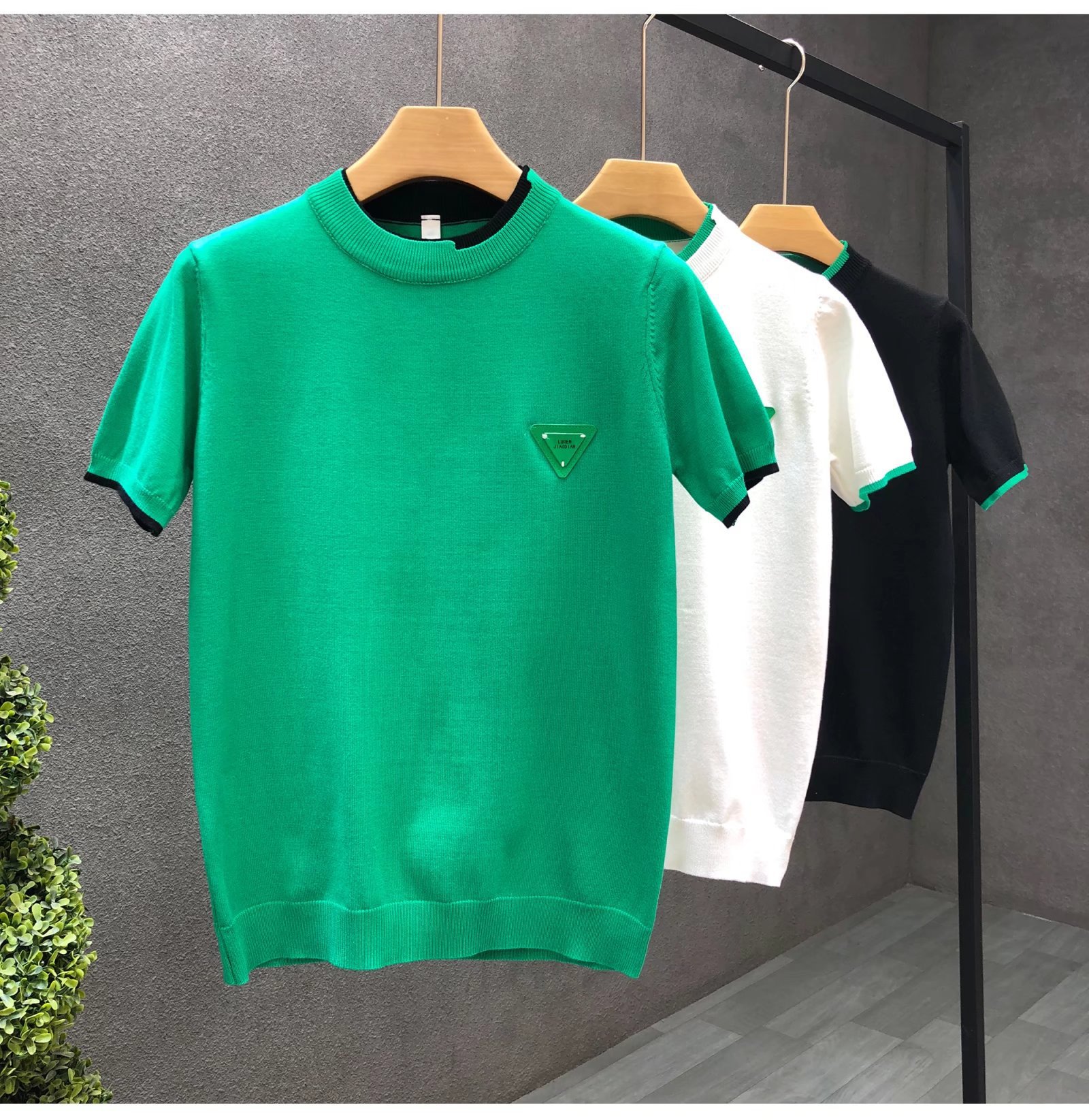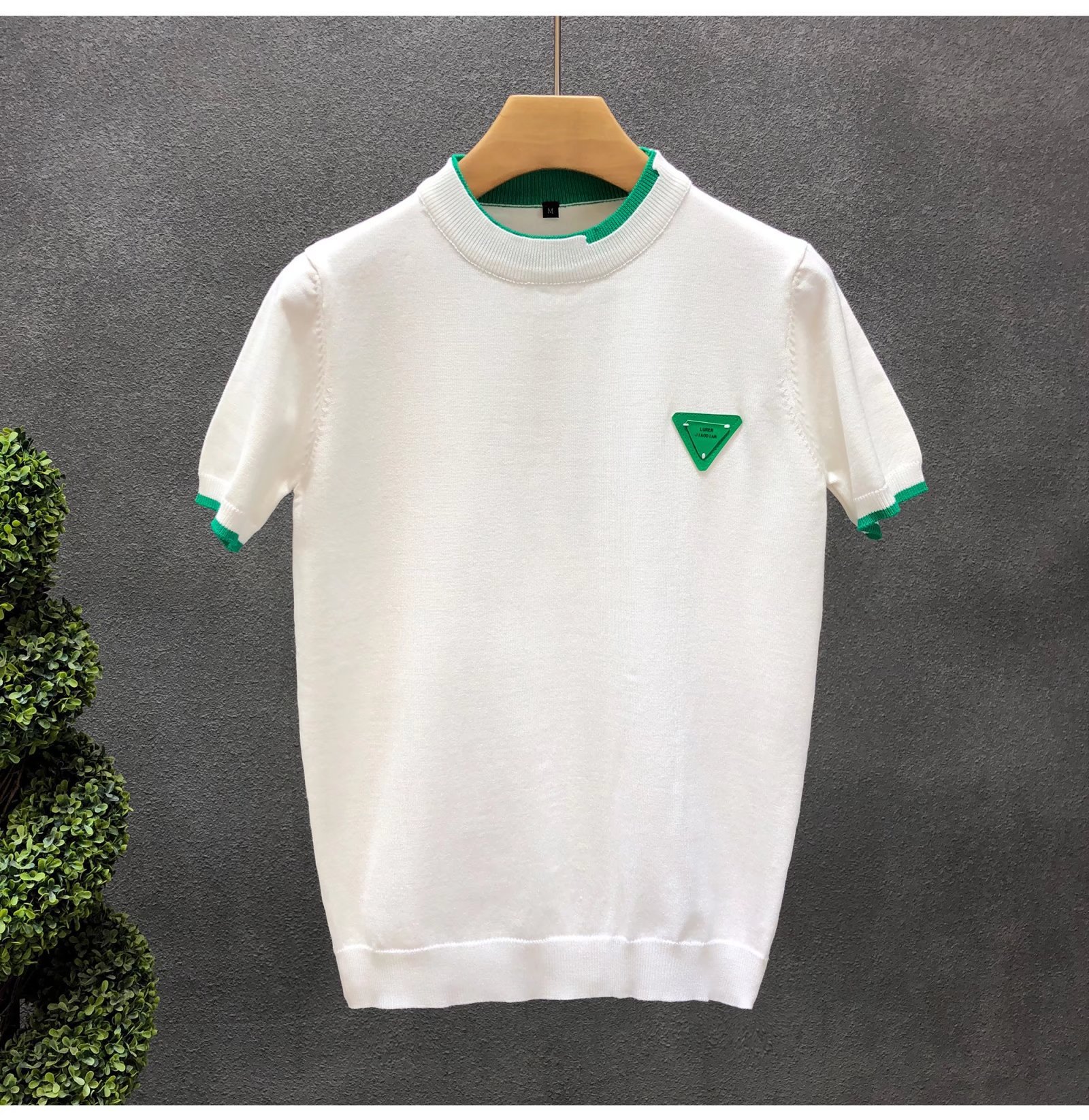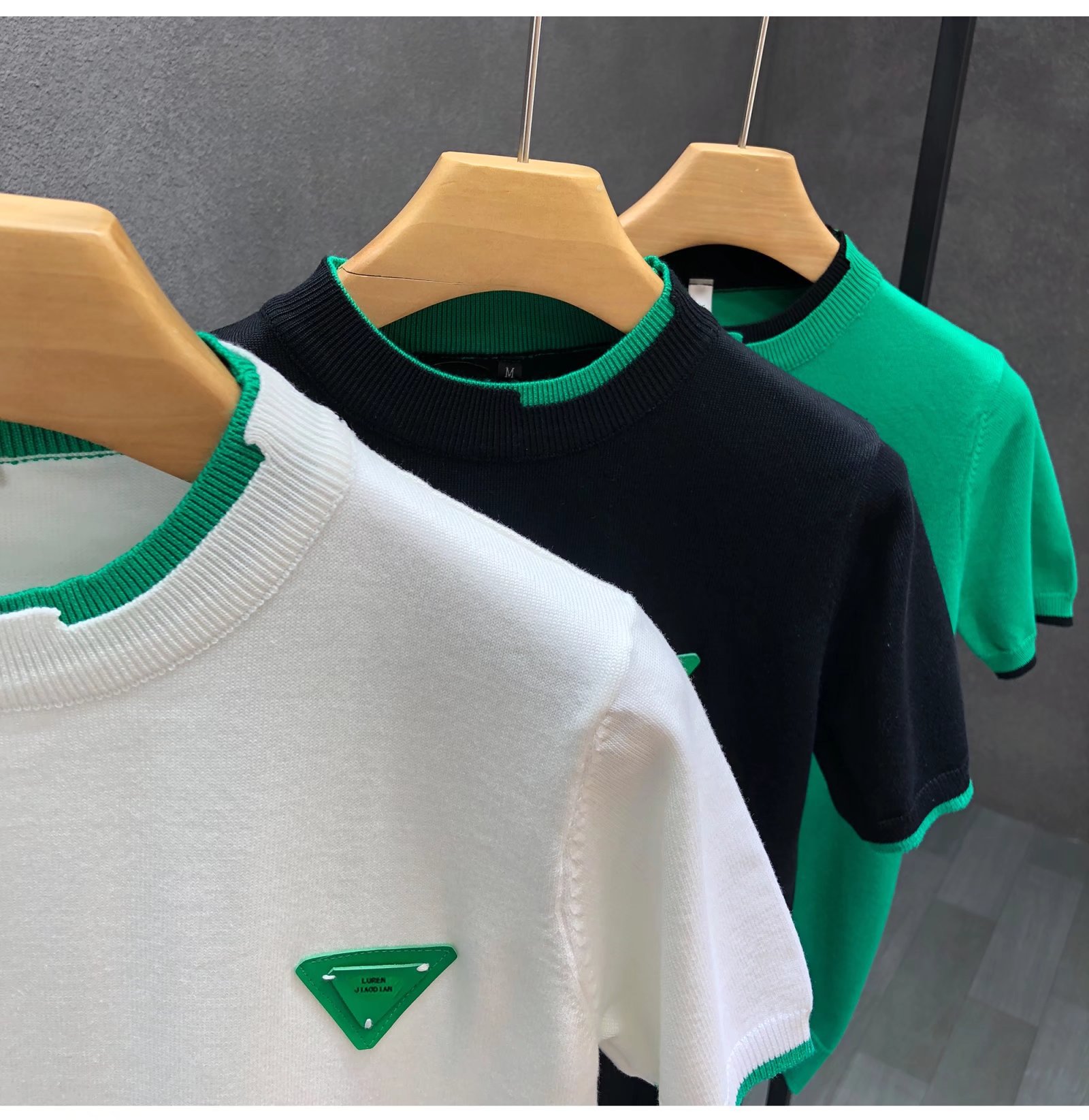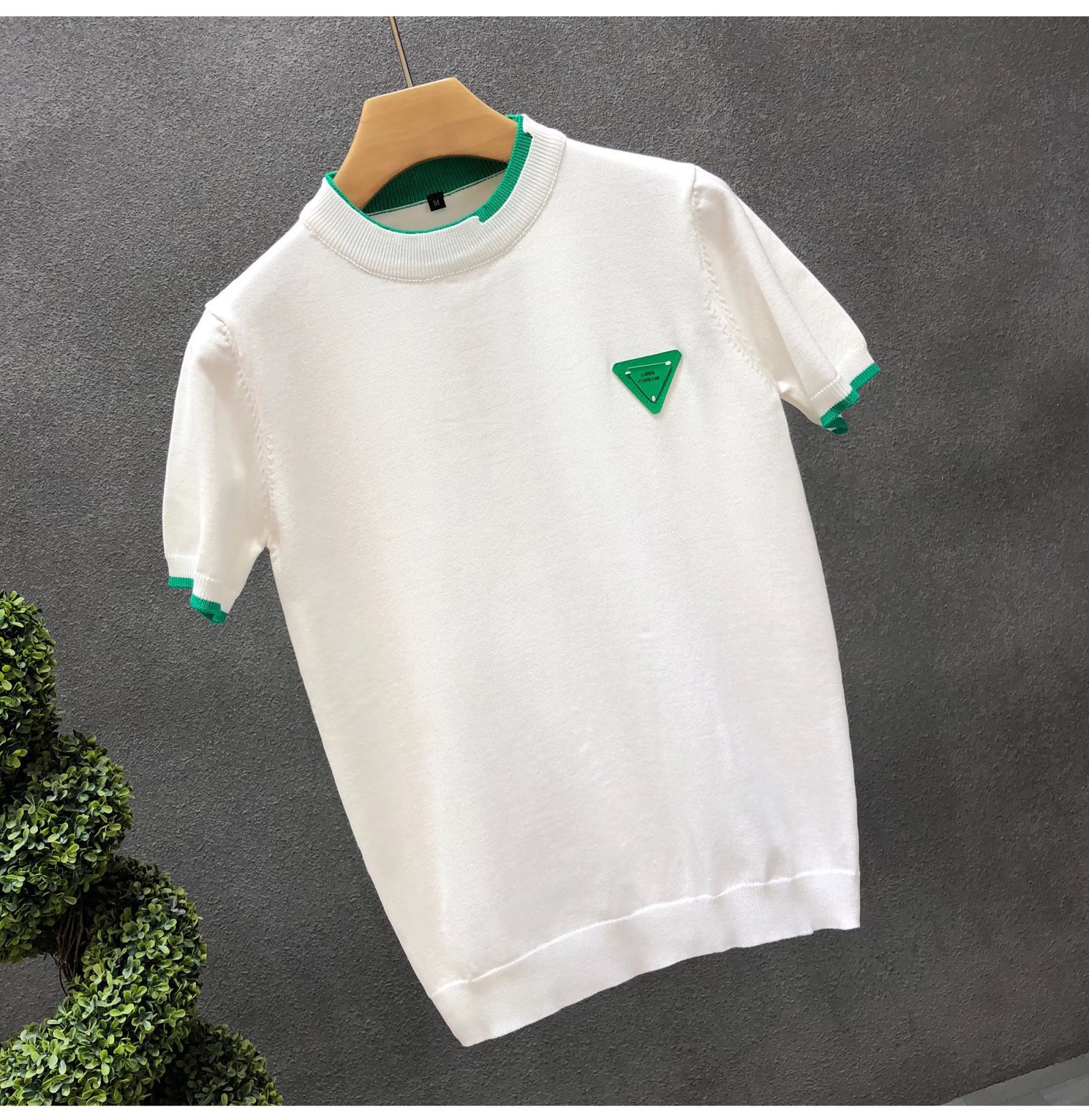 트렌디 한 브랜드 화이트 니트 반팔 아이스 실크 남성용 트렌디 한 핸들 따뜻한 내반소매 스웨터 티셔츠 남성베이스 셔츠스토어 가기