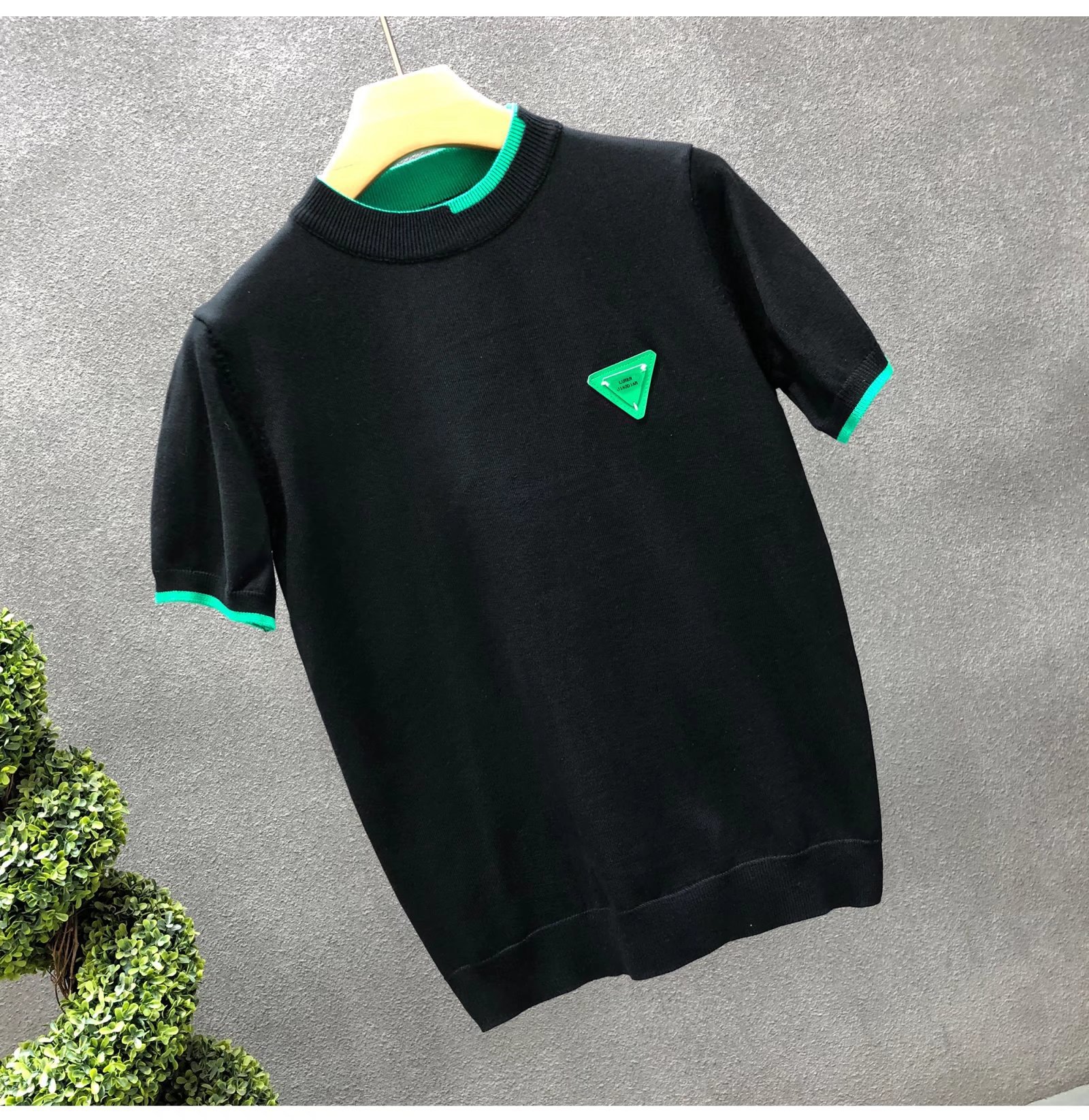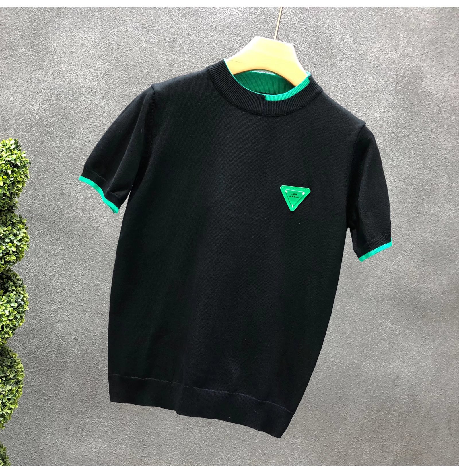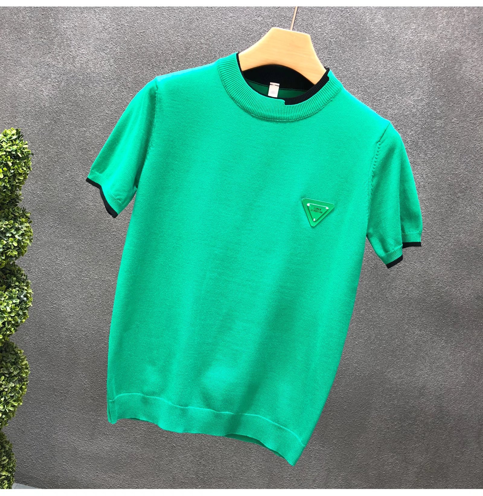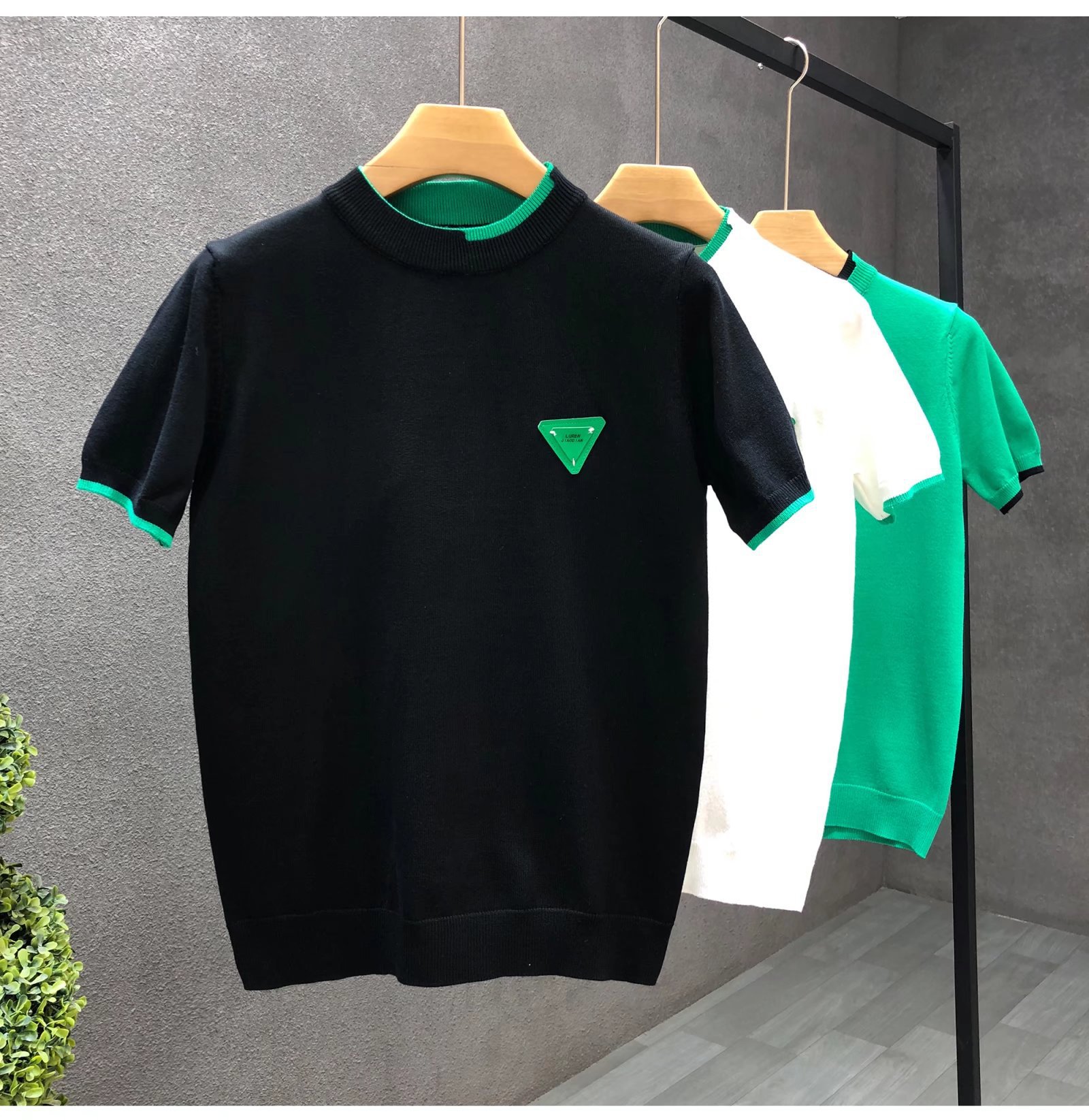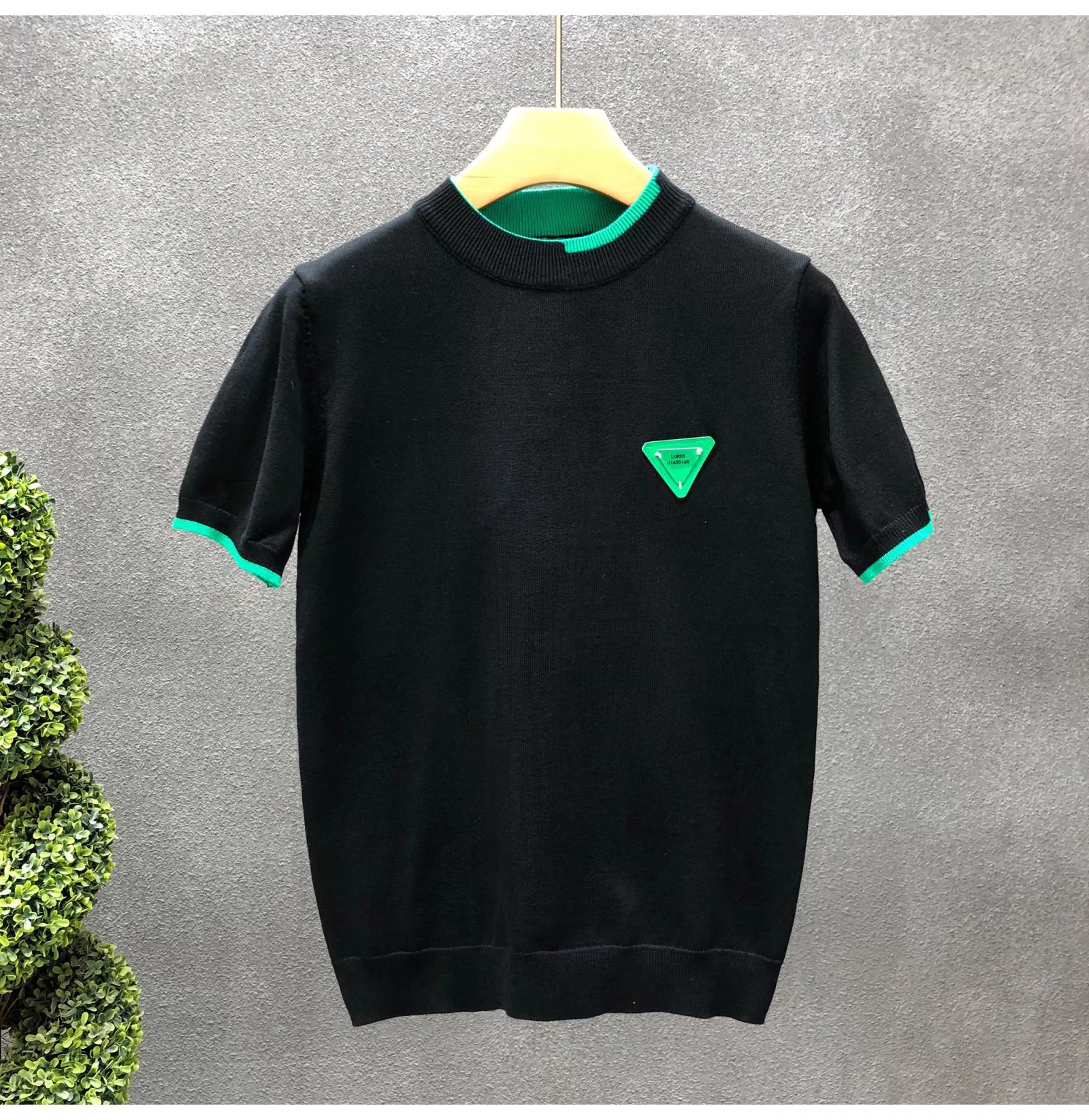트렌디 한 브랜드 화이트 니트 반팔 아이스 실크 남성용 트렌디 한 핸들 따뜻한 내반소매 스웨터 티셔츠 남성베이스 셔츠스토어 가기
