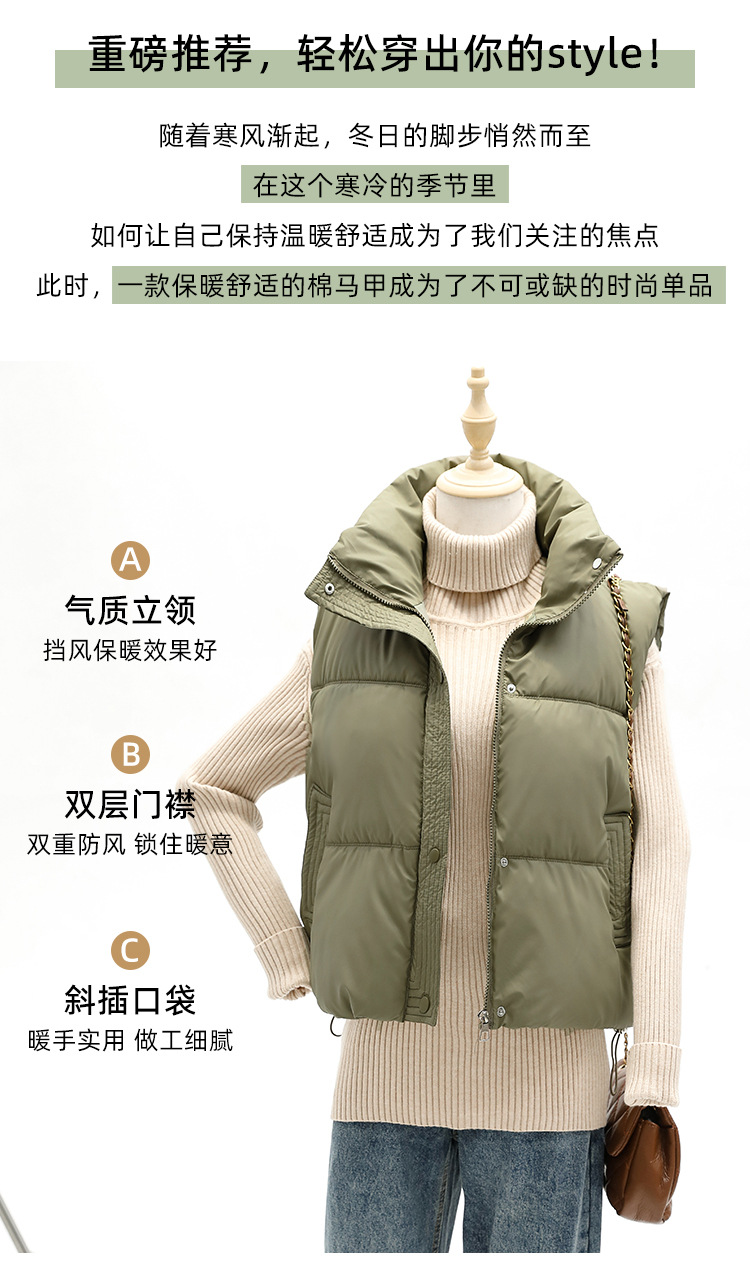 대외 무역 국경 간 및 면화 패딩 재킷 조끼 여성 외부 면화 패딩 재킷 착용 짧은 가을 및 겨울 슬림 핏 민소매 재킷 조끼 트렌디스토어 가기
