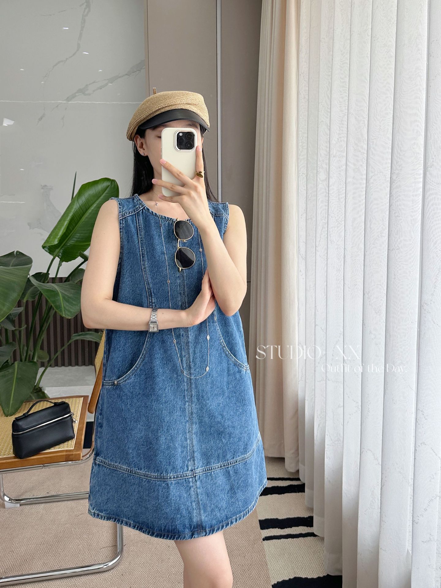 这款牛仔裙裁自全棉斜纹牛仔面料,