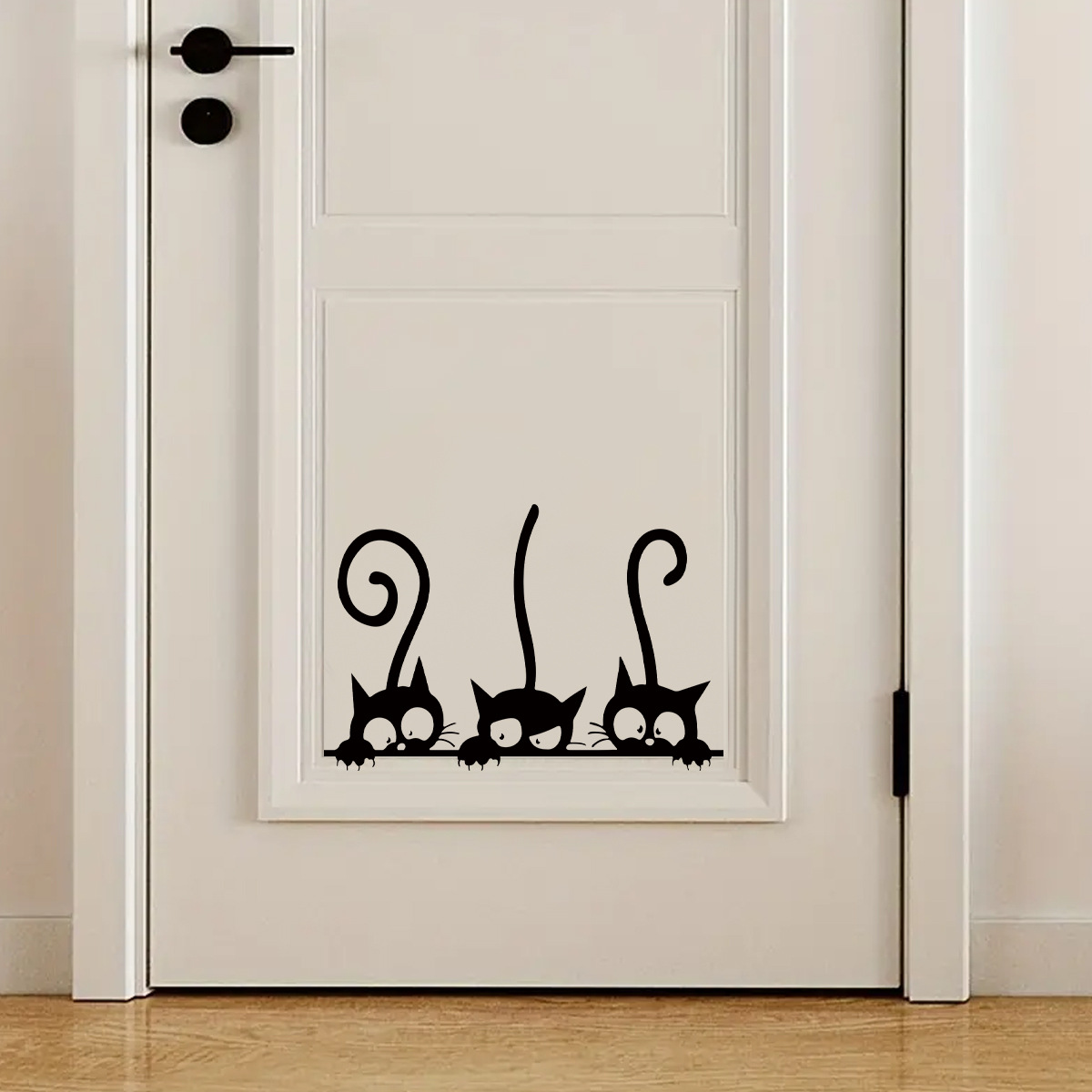 간단한 귀여운 새끼 고양이 문 스티커 자체 접착 벽 스티커 Ins 실루엣 룸 배경 벽 장식 스티커 BR0707C