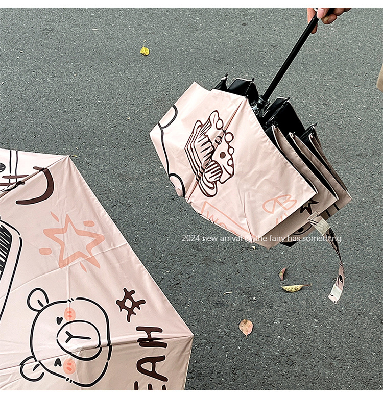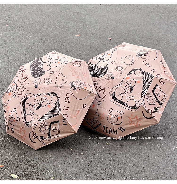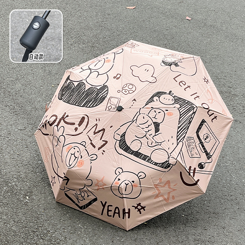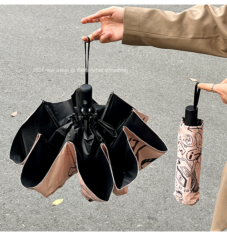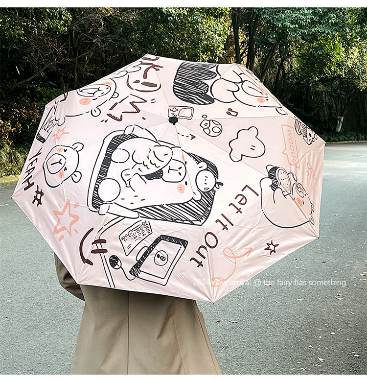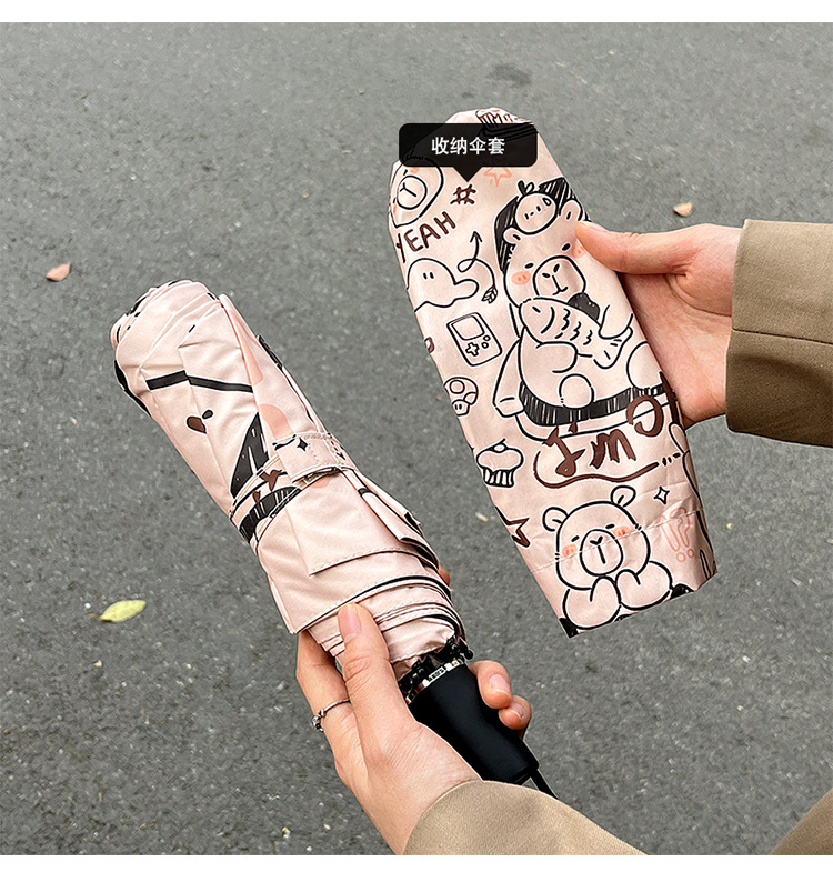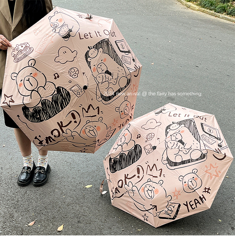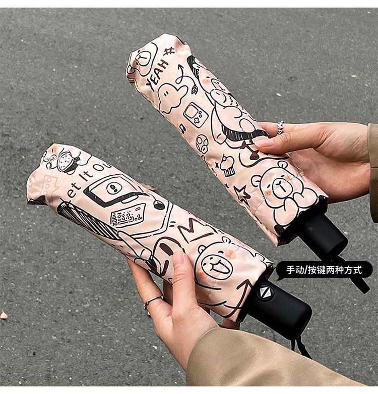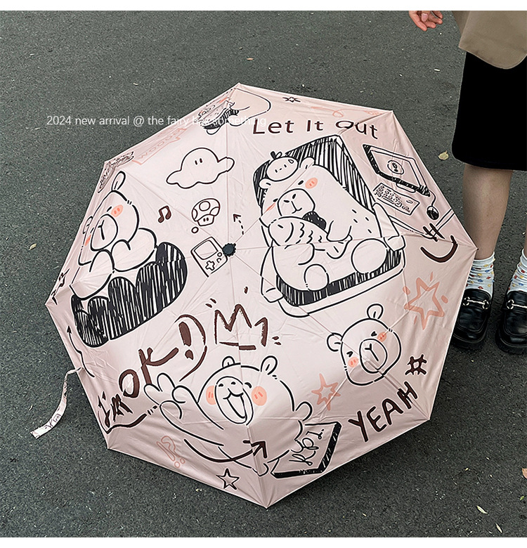 원래 귀여운 재미 우산 창조적 인 낙서 비닐 방수 UV 휴대용 이중 목적 접이식 차양 도매스토어 가기