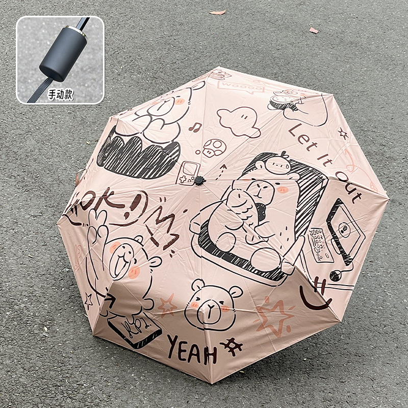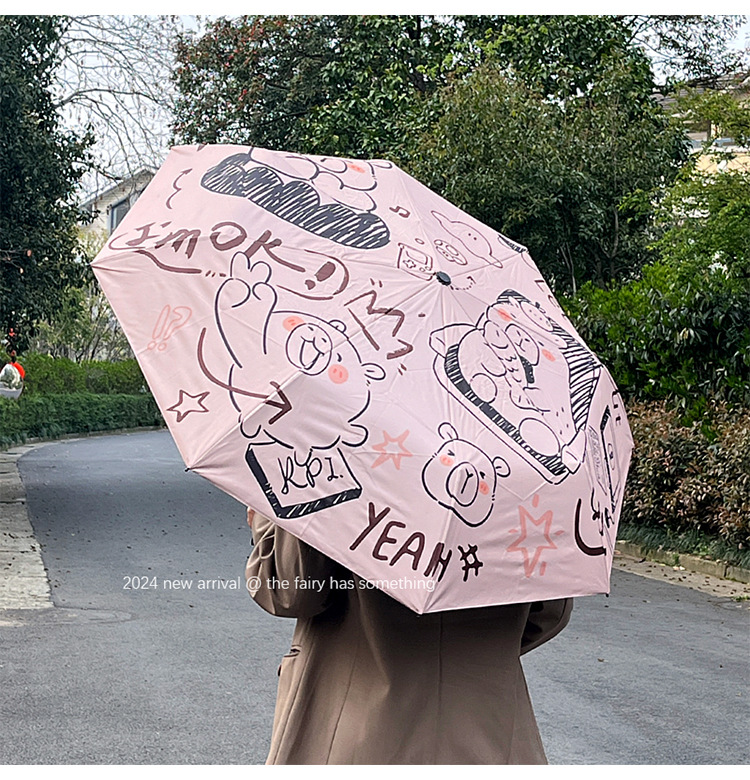 원래 귀여운 재미 우산 창조적 인 낙서 비닐 방수 UV 휴대용 이중 목적 접이식 차양 도매