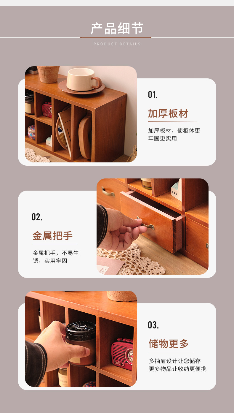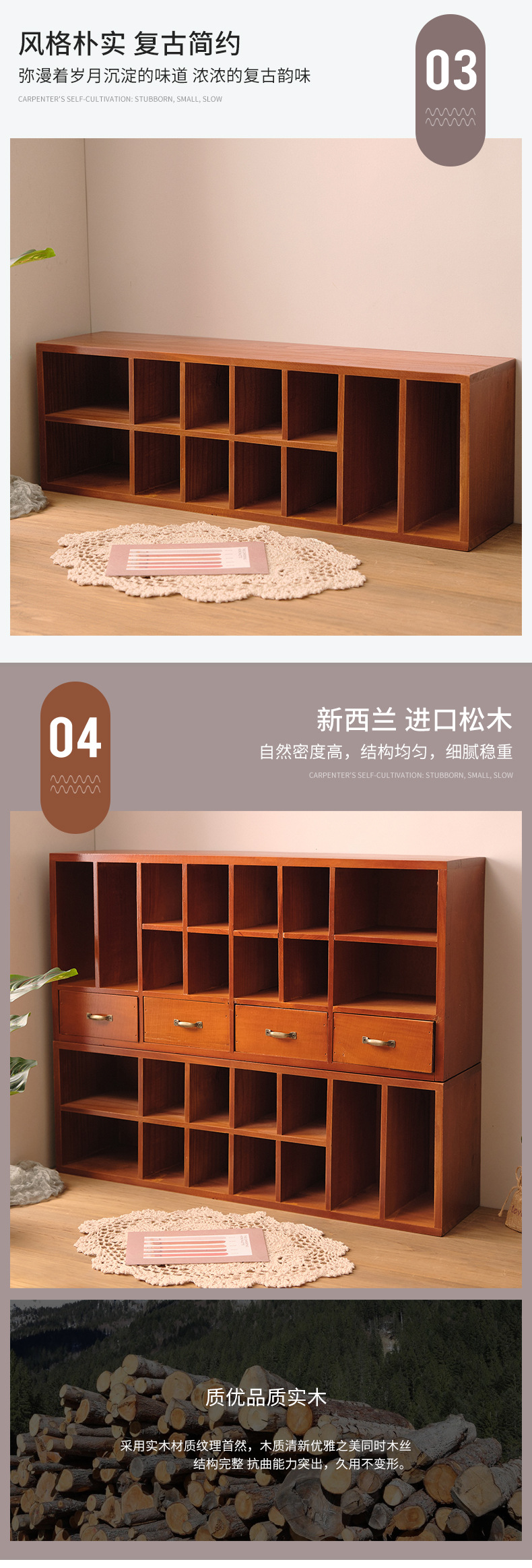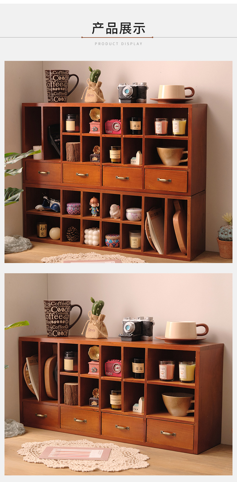 빈티지 데스크탑 스토리지 캐비닛 데스크탑 스토리지 랙 벽 걸이 벽 저장 상자 펀치 프리 솔리드 우드 랙스토어 가기