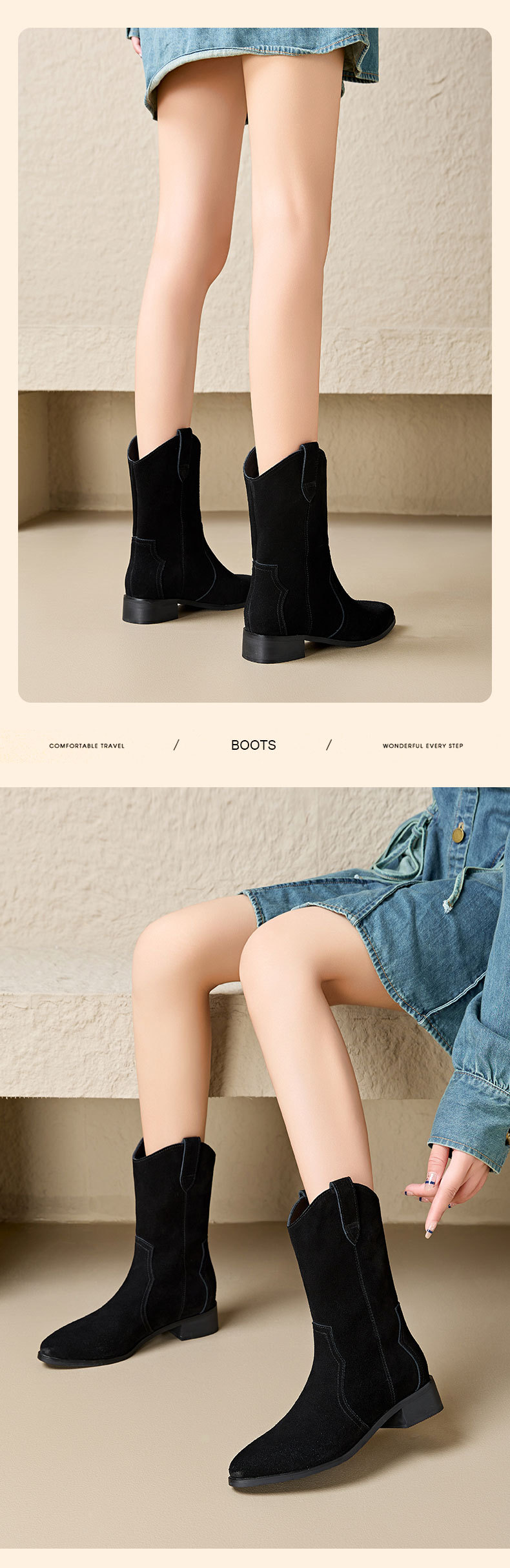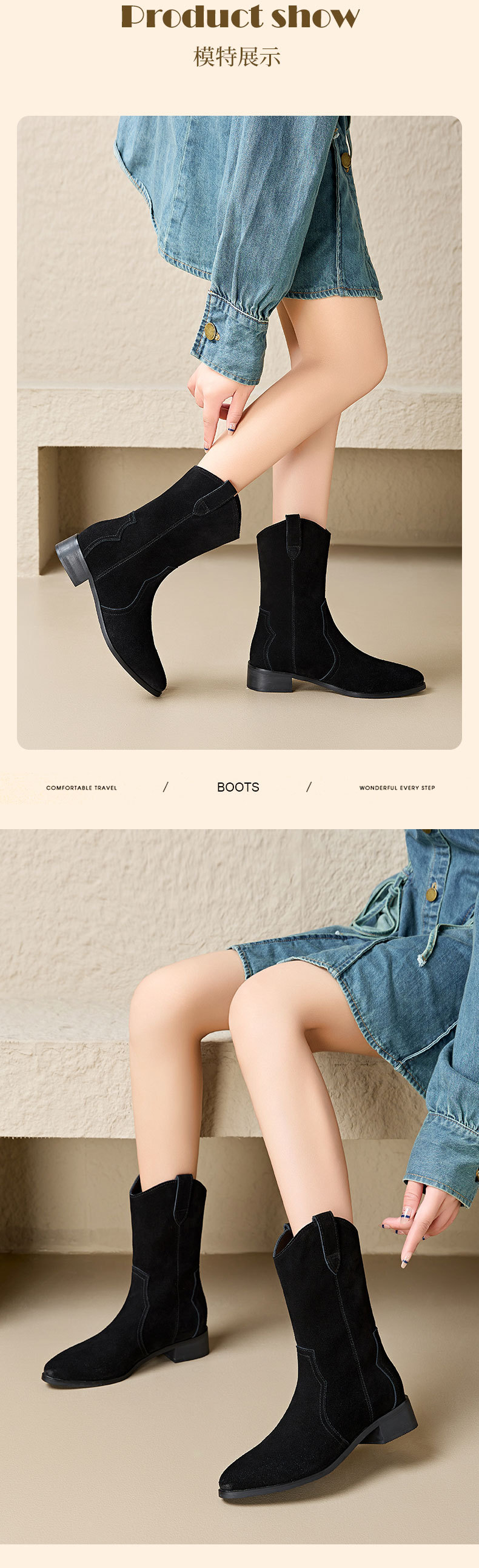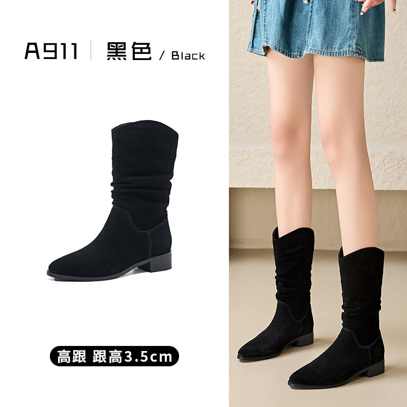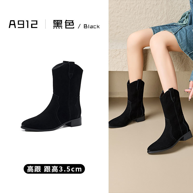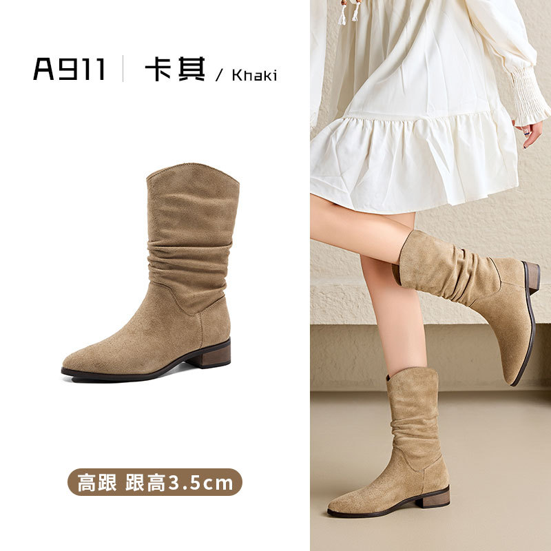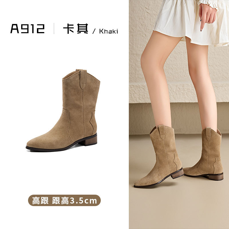 정품 가죽 마틴 부츠 여성 레트로 다크 브라운 기사 부츠 두꺼운 힐 슬리밍 뾰족한 서양 데님 발목 부츠 가을과 겨울 여성 신발스토어 가기