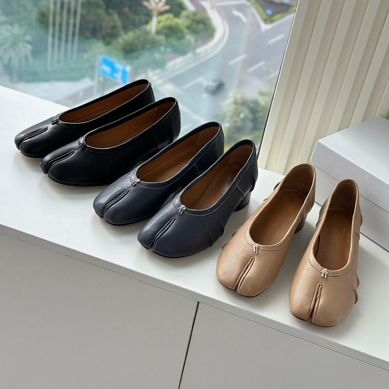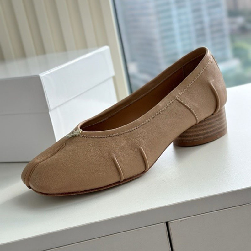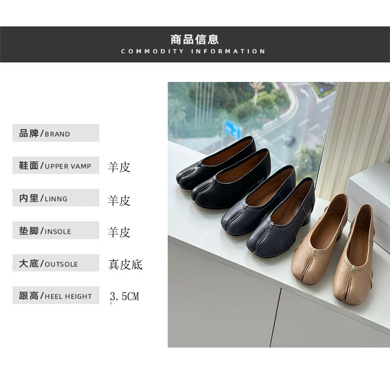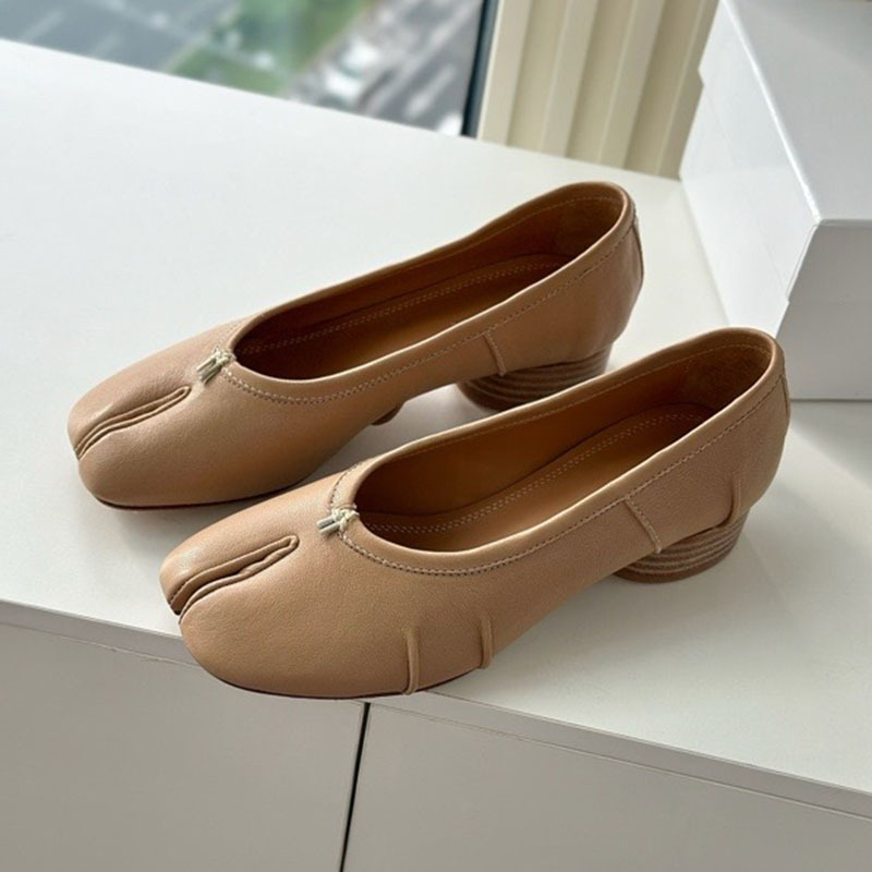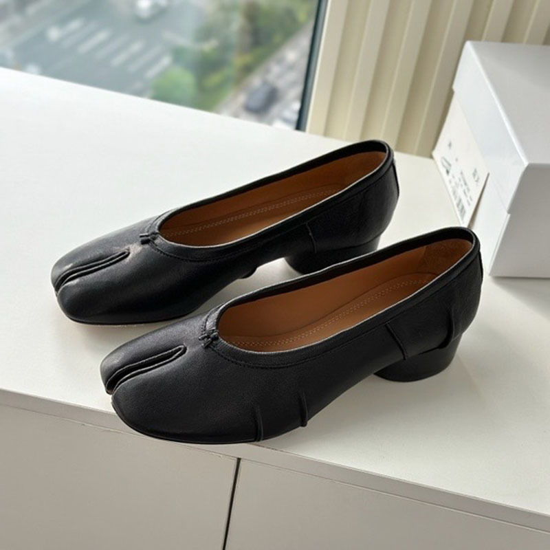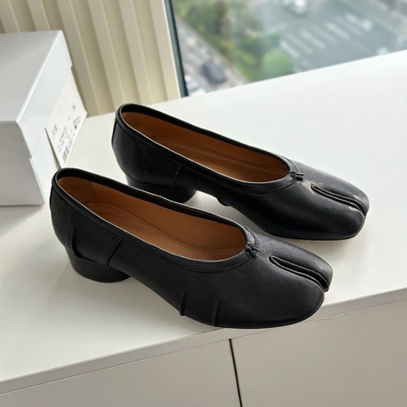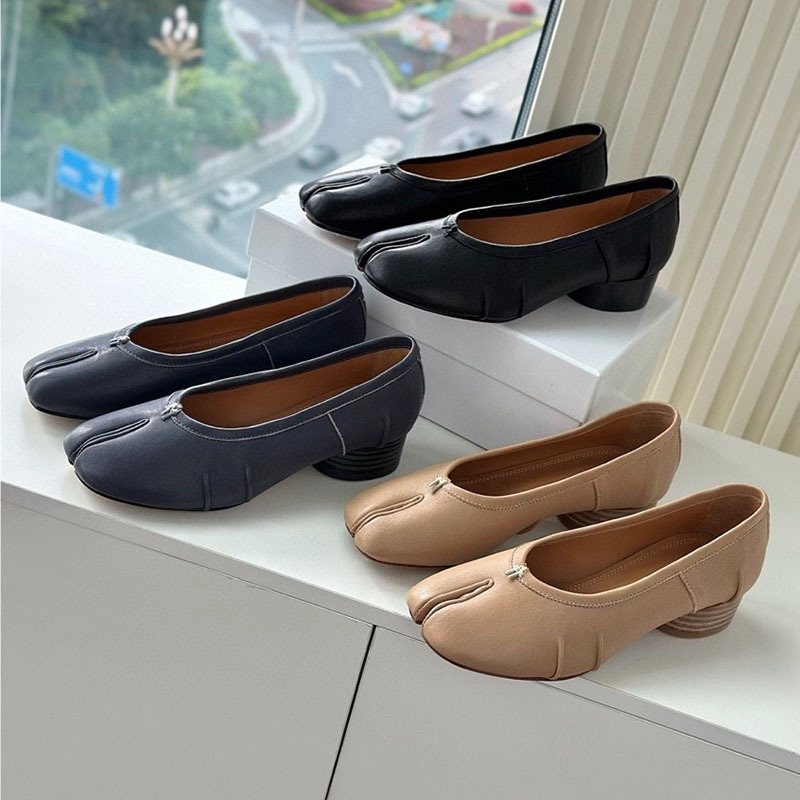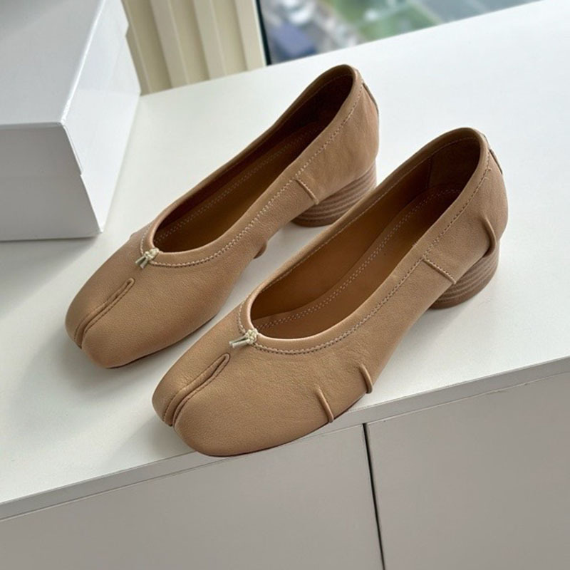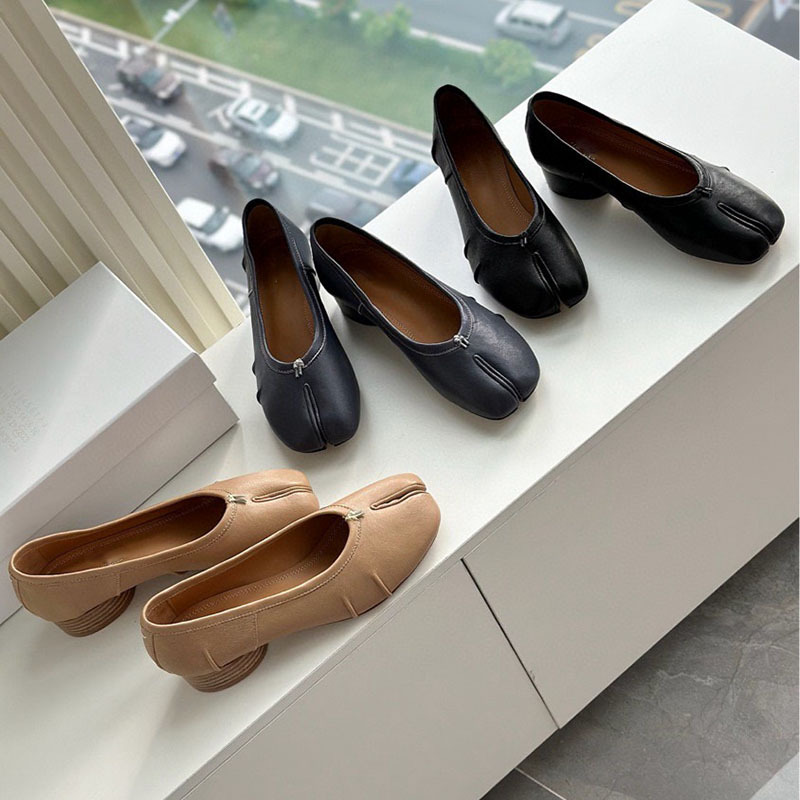 새로운 미드 힐 신발 발레 발굽 신발 타비 신발 여성 주름 가죽 메리 제인 신발스토어 가기