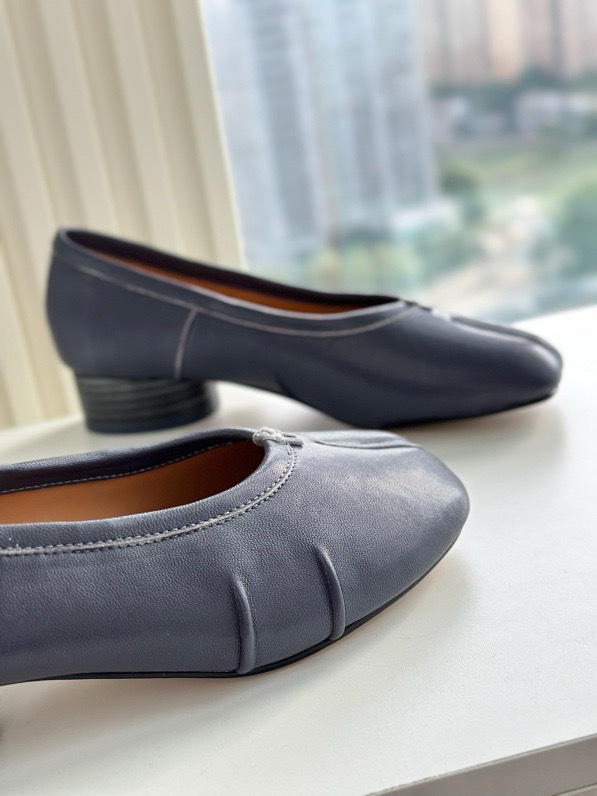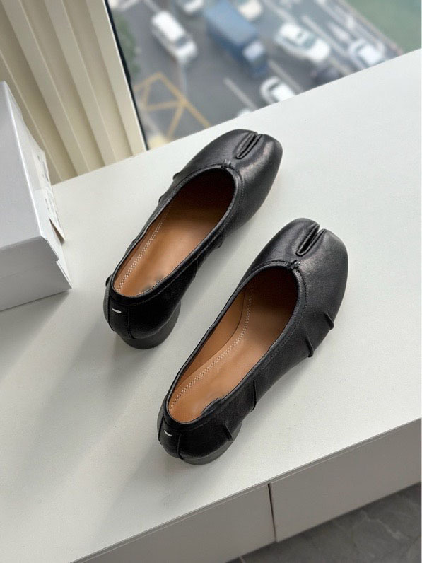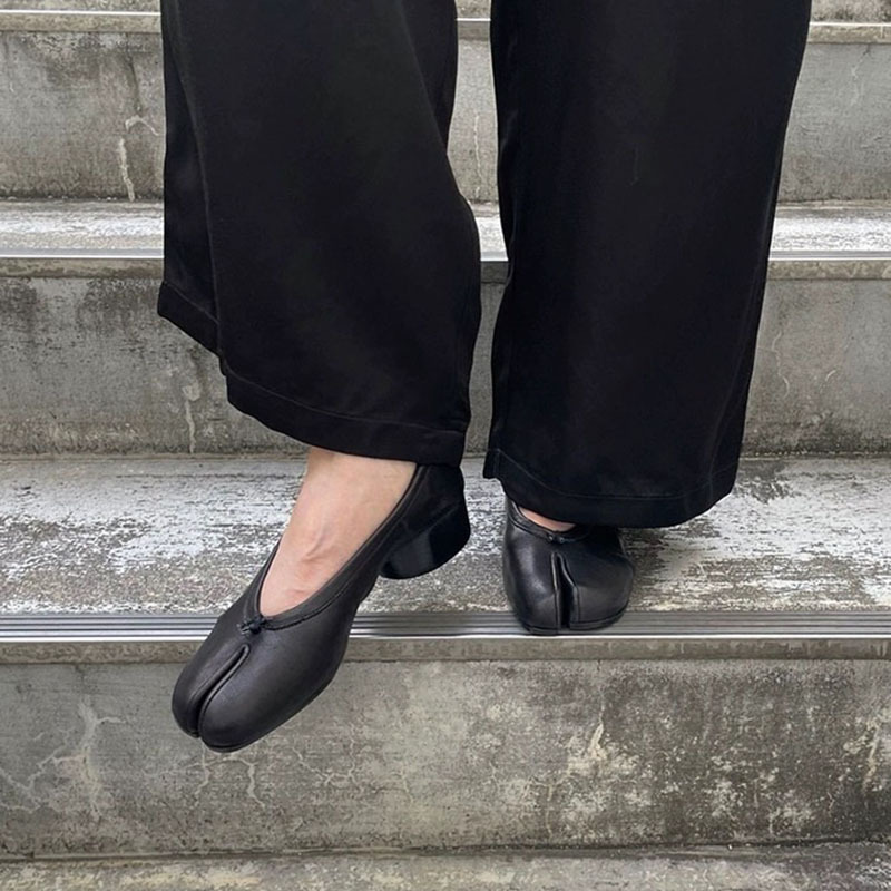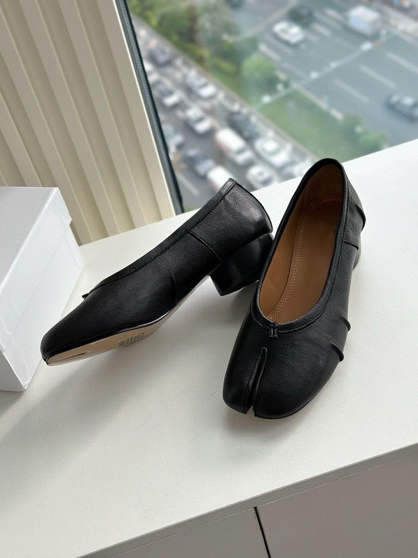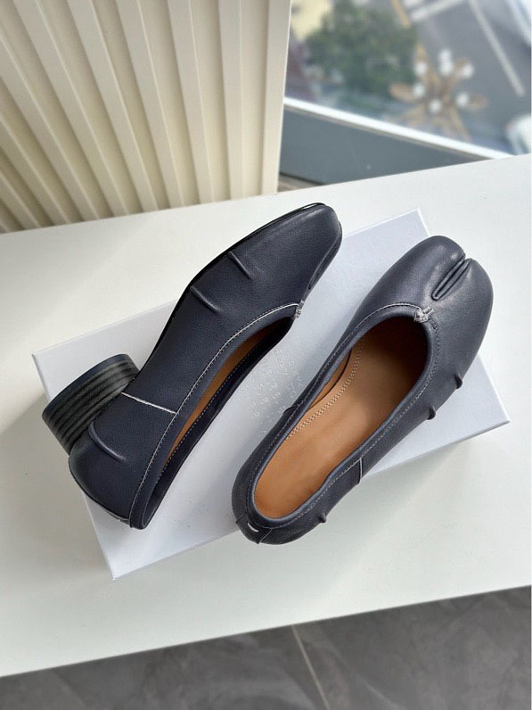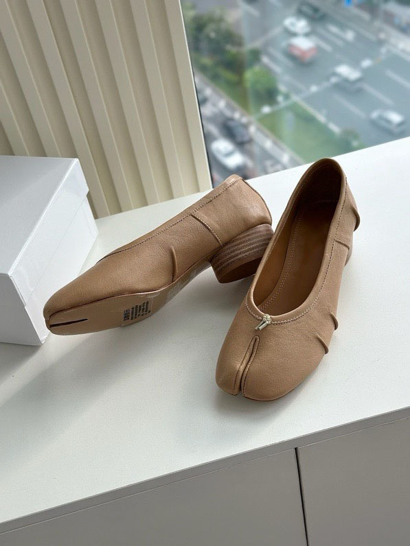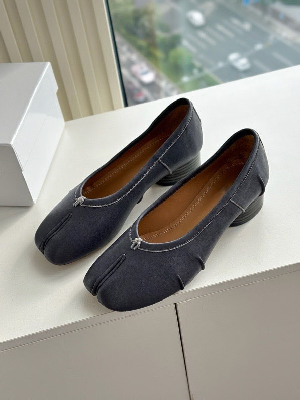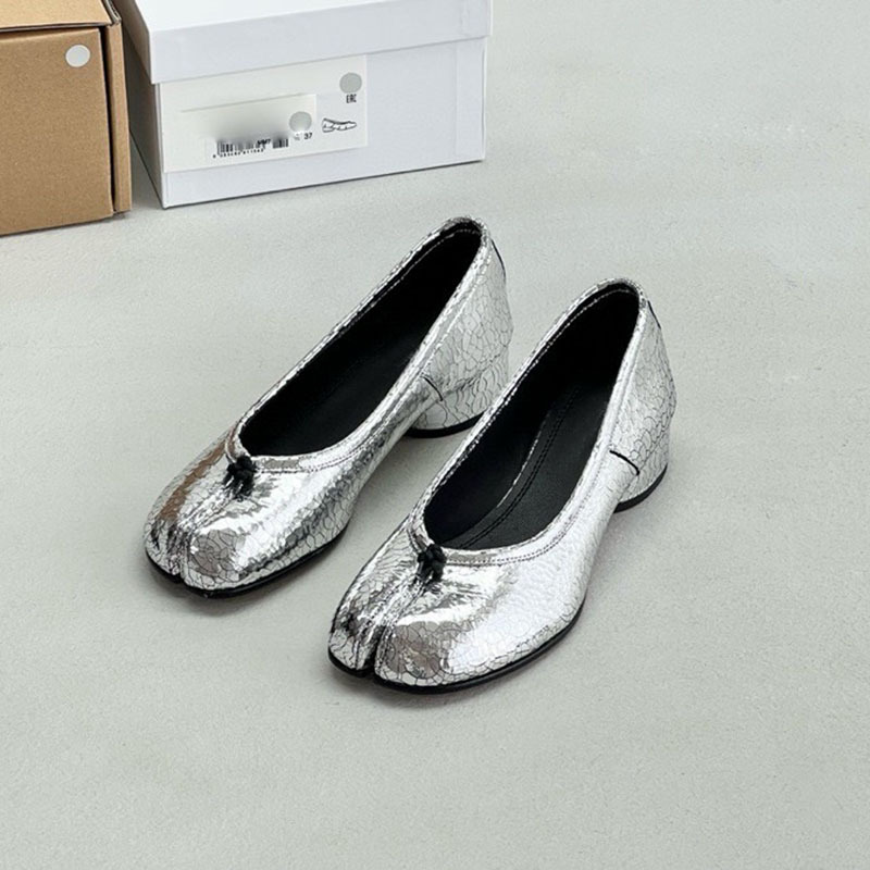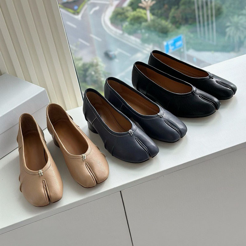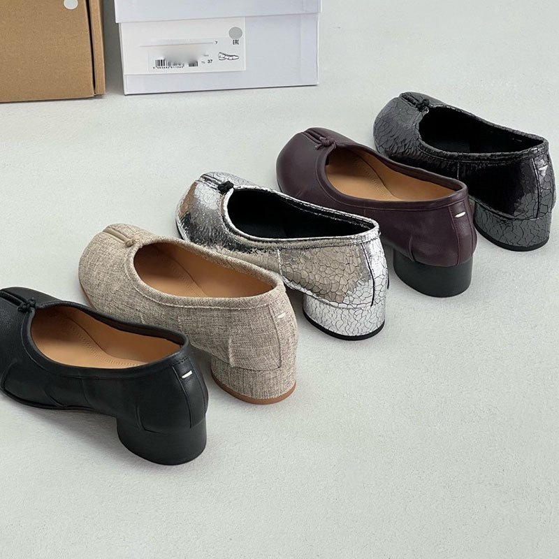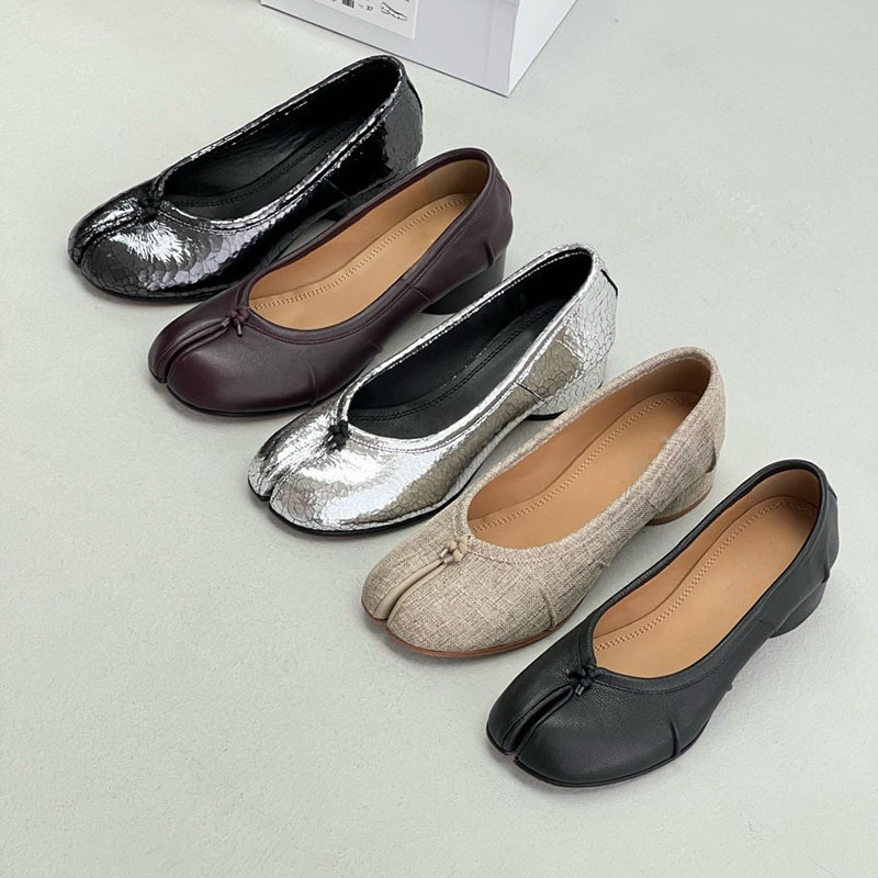 새로운 미드 힐 신발 발레 발굽 신발 타비 신발 여성 주름 가죽 메리 제인 신발스토어 가기