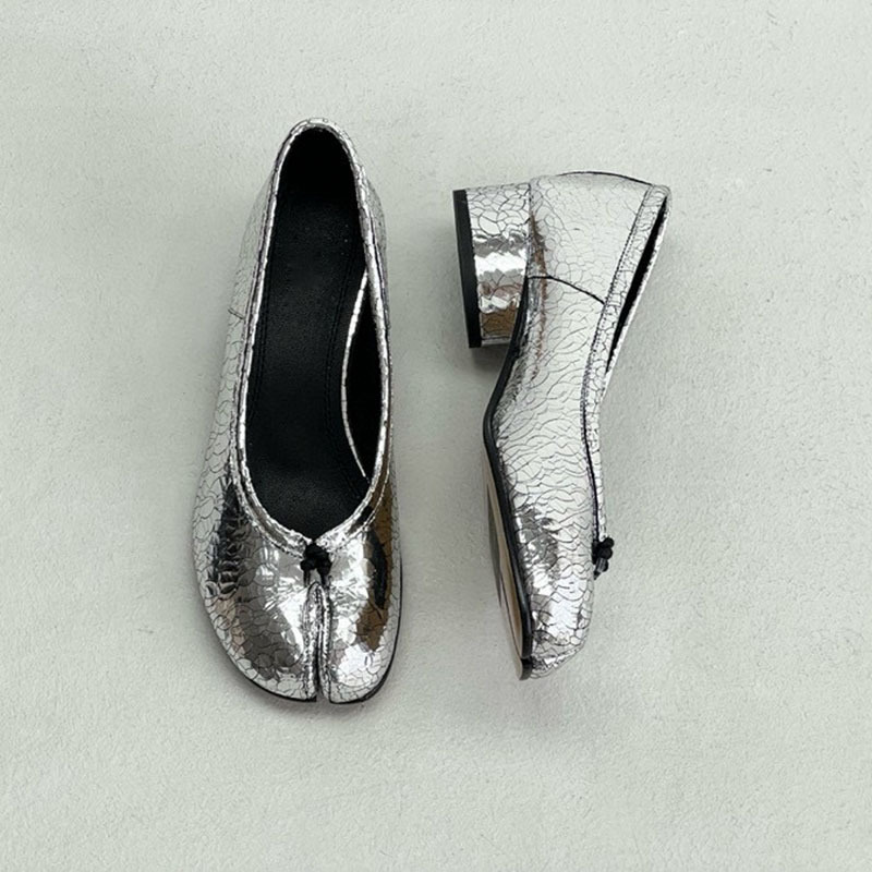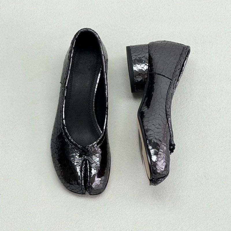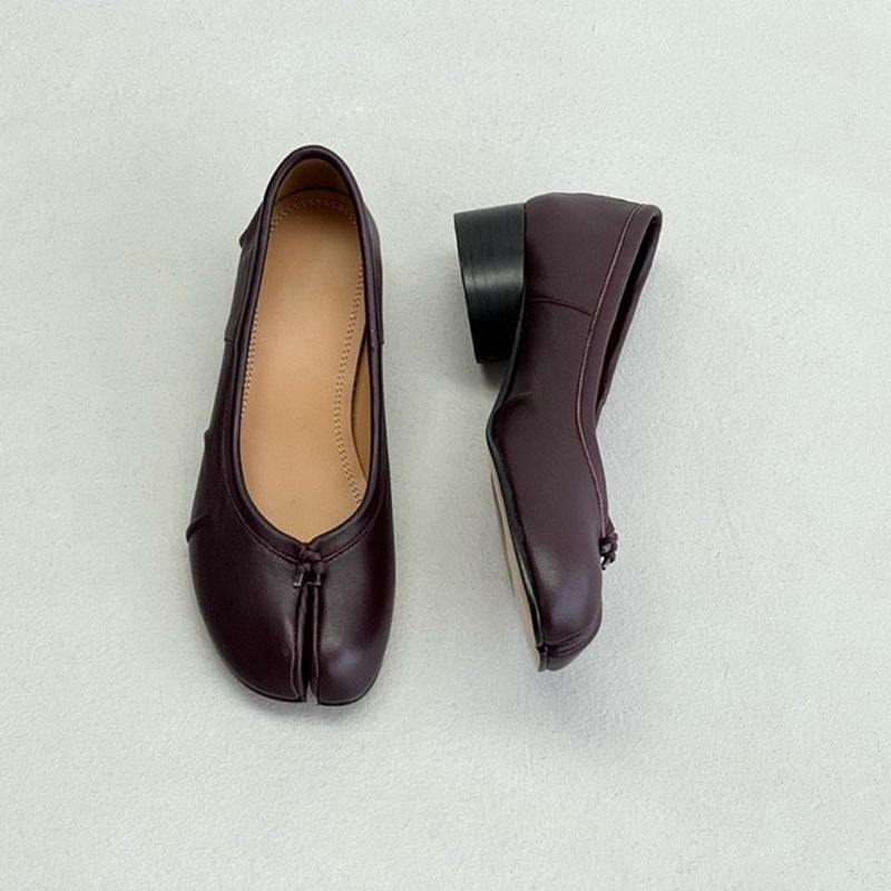 새로운 미드 힐 신발 발레 발굽 신발 타비 신발 여성 주름 가죽 메리 제인 신발