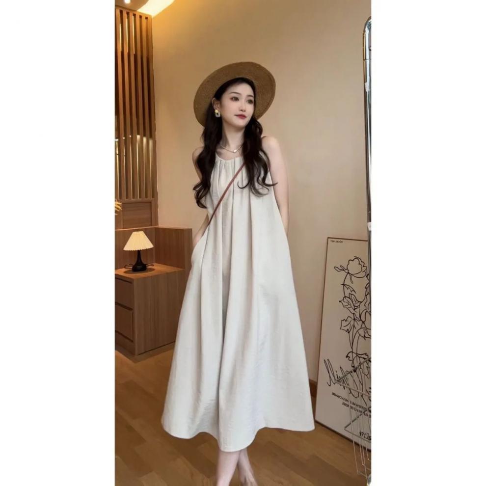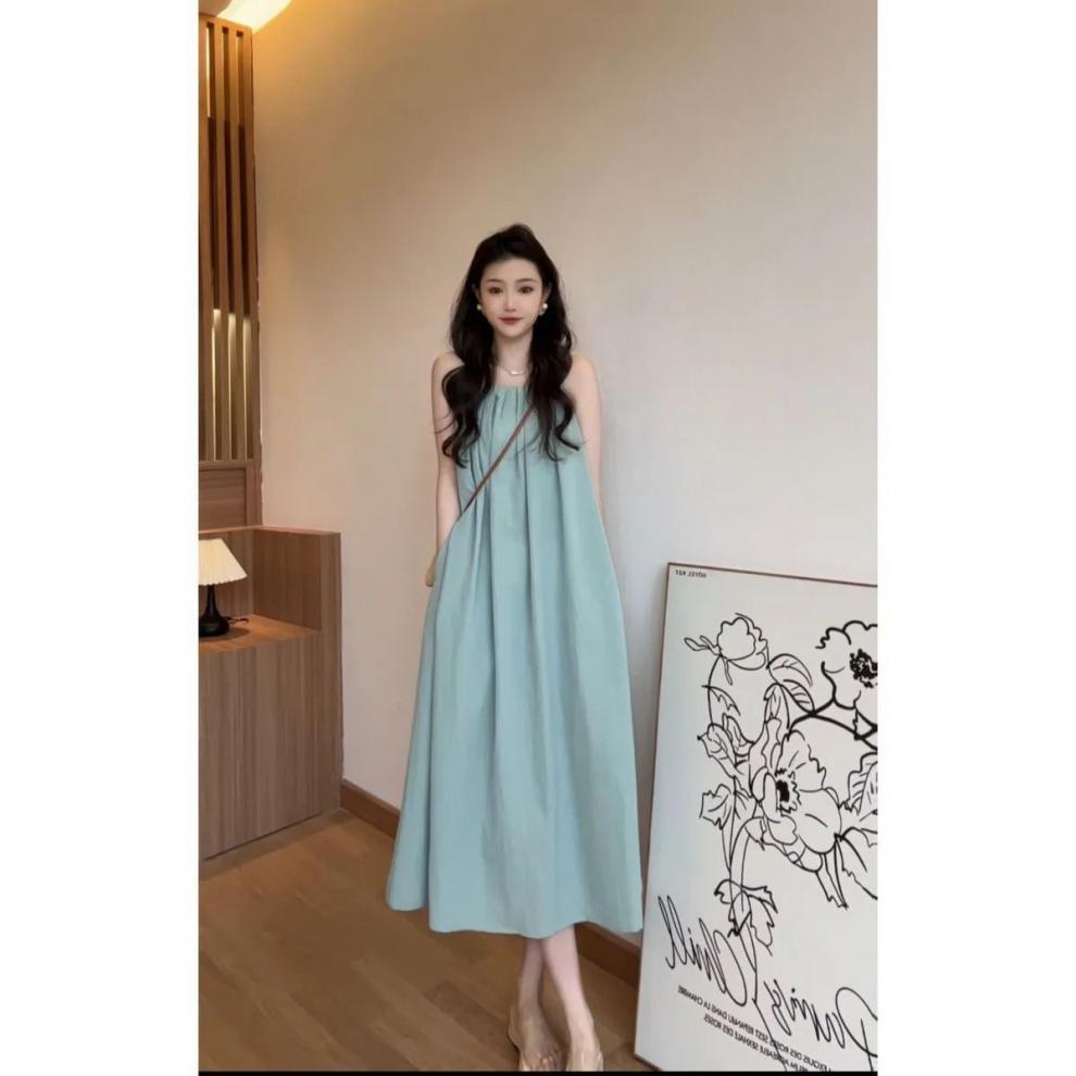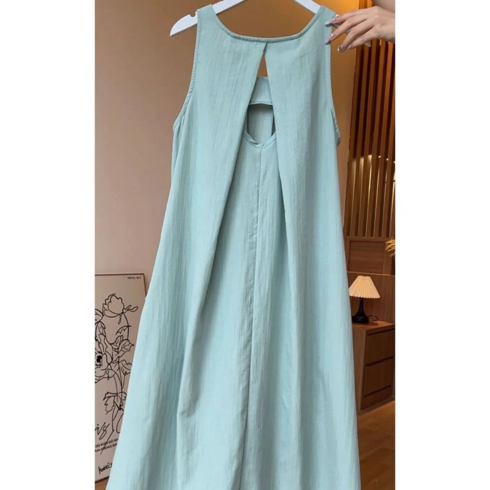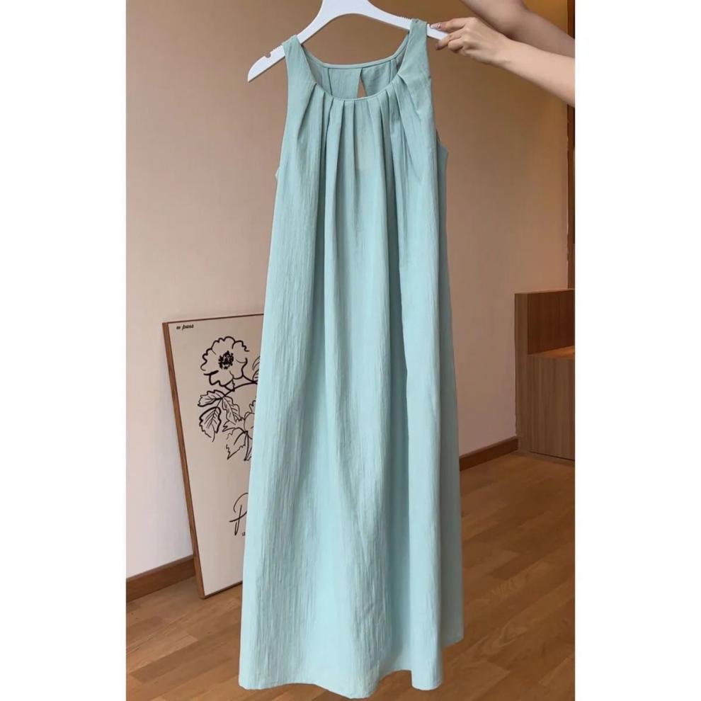 백리스 주름 민소매 조끼 원피스 여름 우아한 아우터 프렌치 얇은 느슨한 솔리드 컬러 한국 스타일 원피스스토어 가기