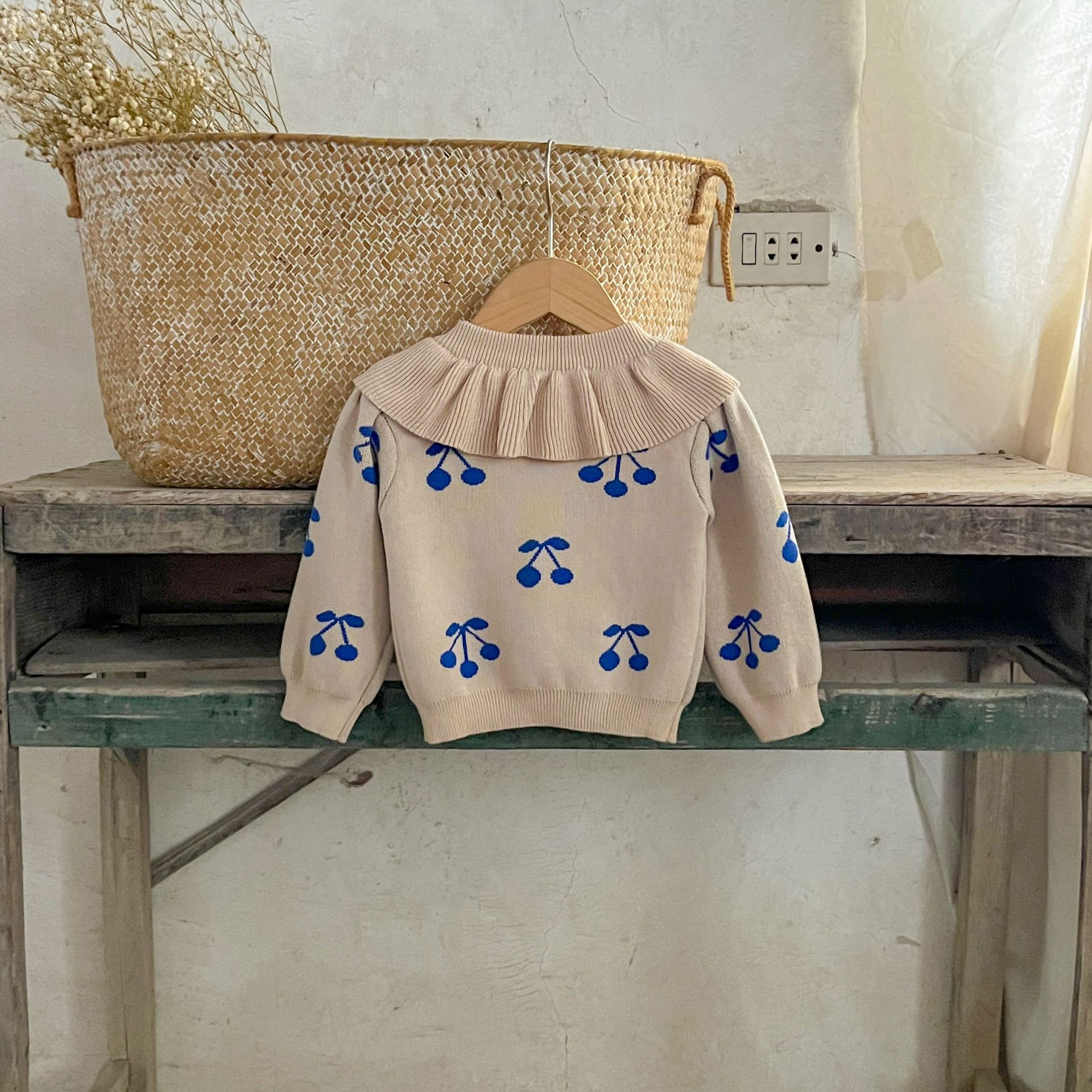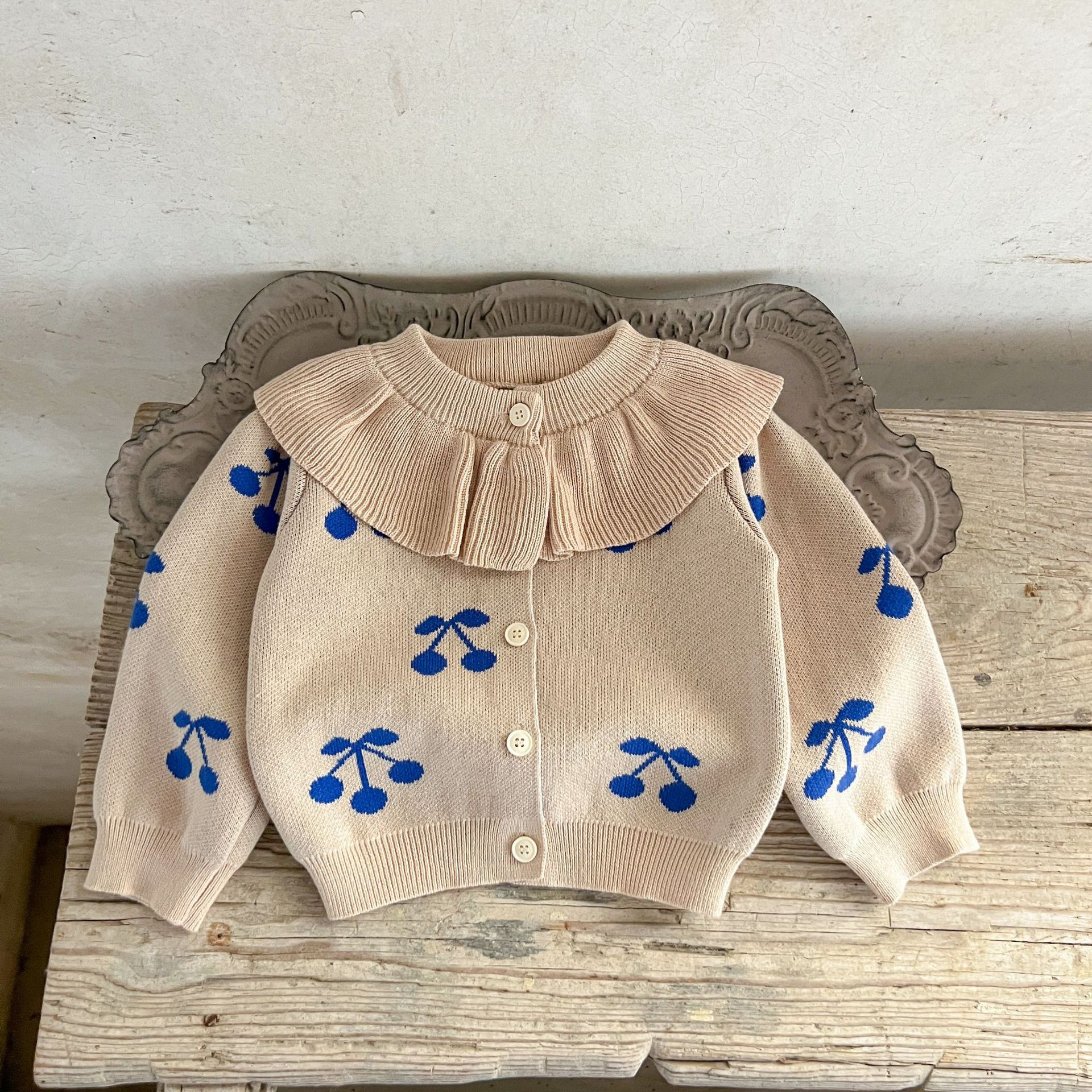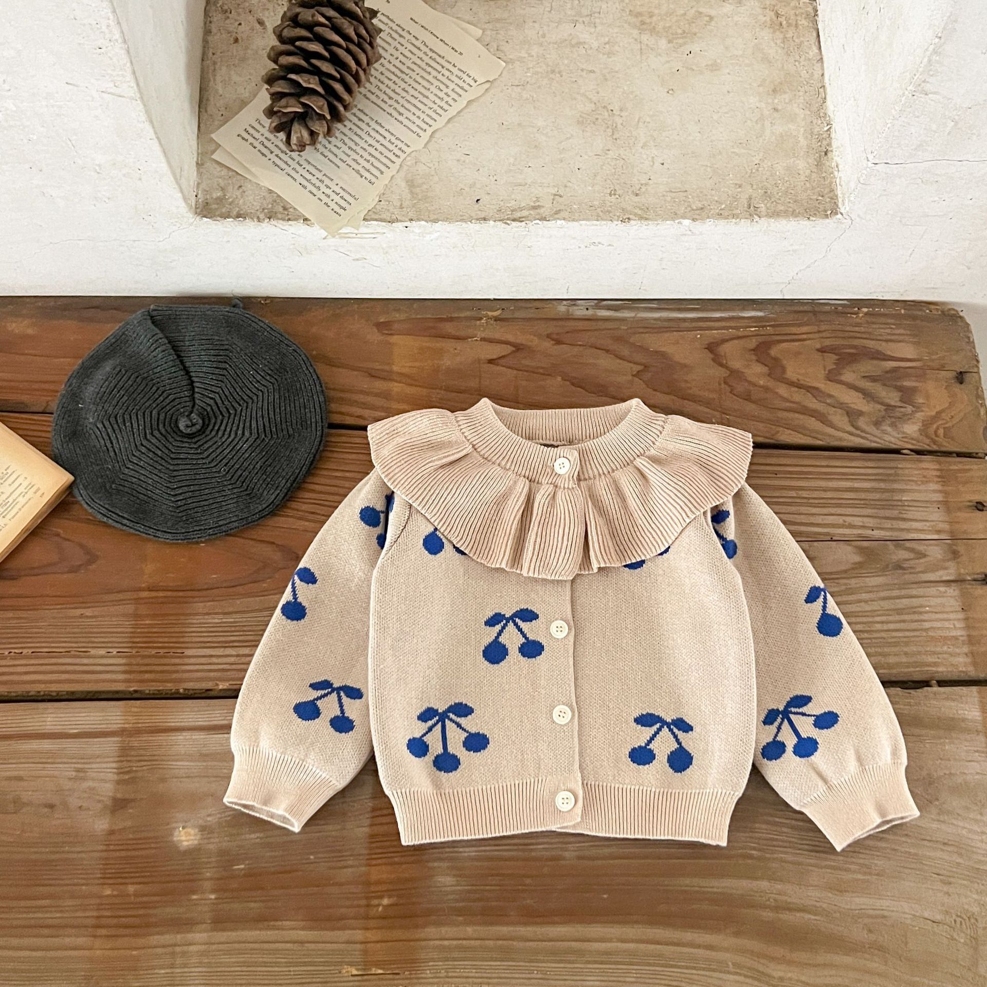 Ins Korean Style Girls Baby Pure Cotton Lotus Collar Cherry Cardigan 신생아 가을 올 매치 소프트 스웨터 재킷스토어 가기