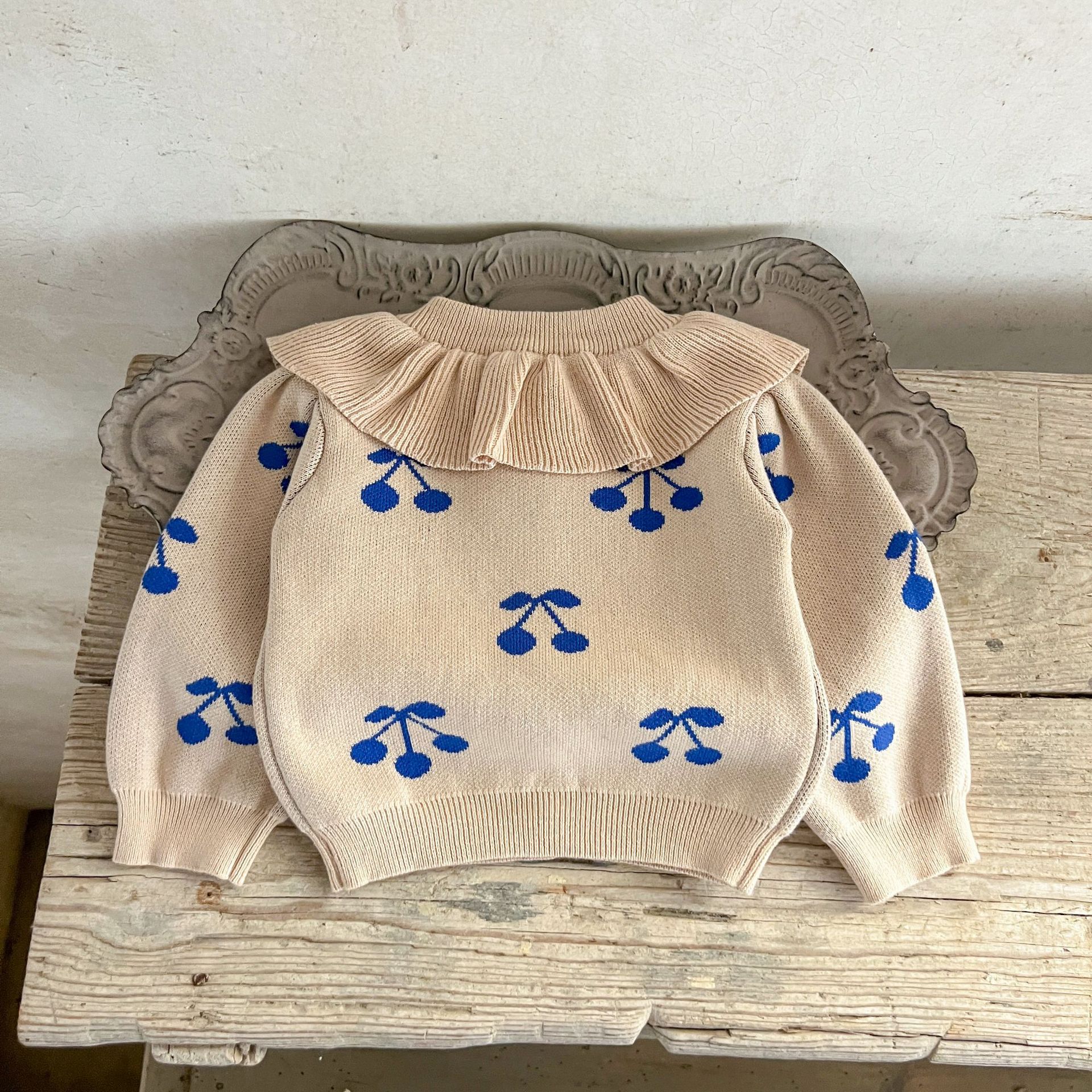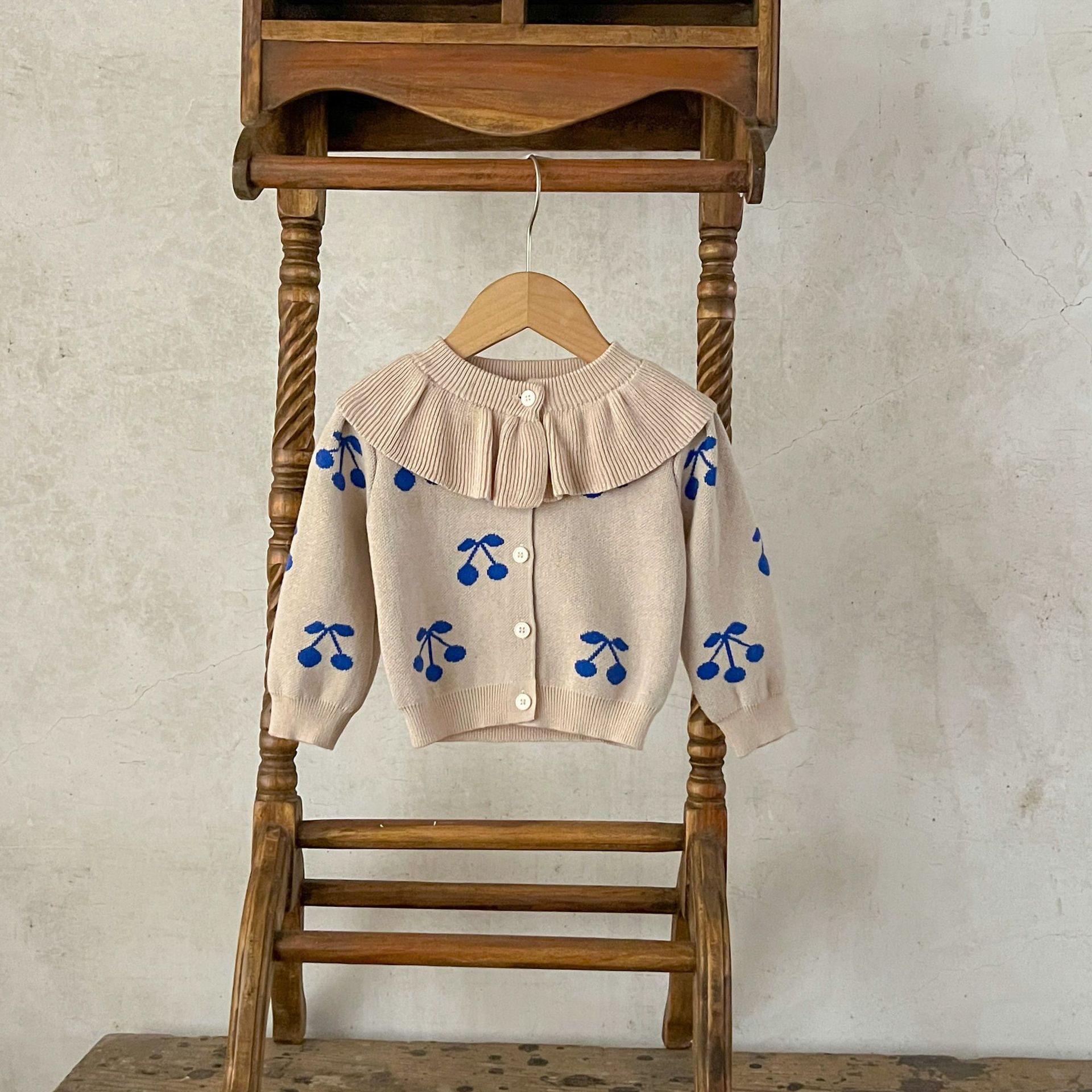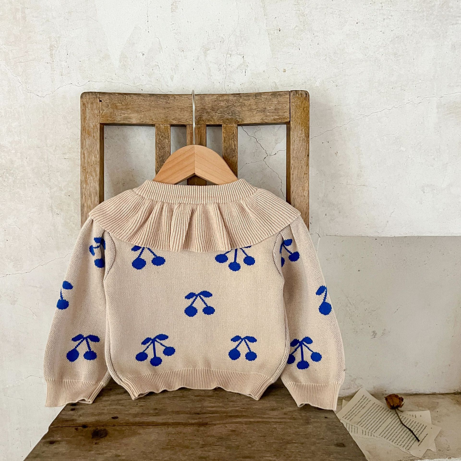 Ins Korean Style Girls Baby Pure Cotton Lotus Collar Cherry Cardigan 신생아 가을 올 매치 소프트 스웨터 재킷스토어 가기