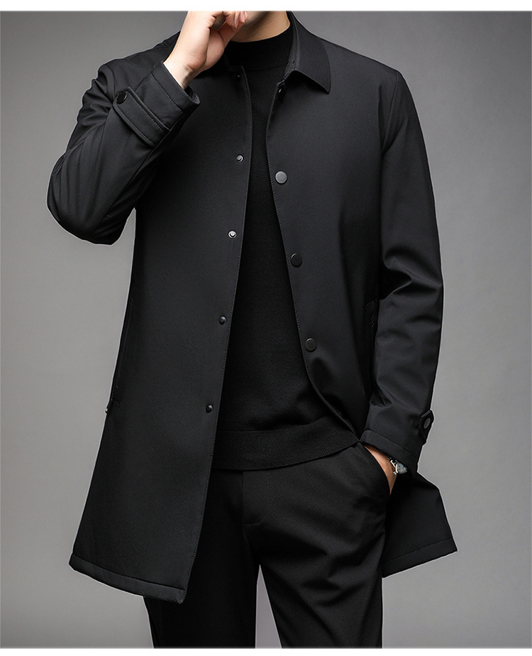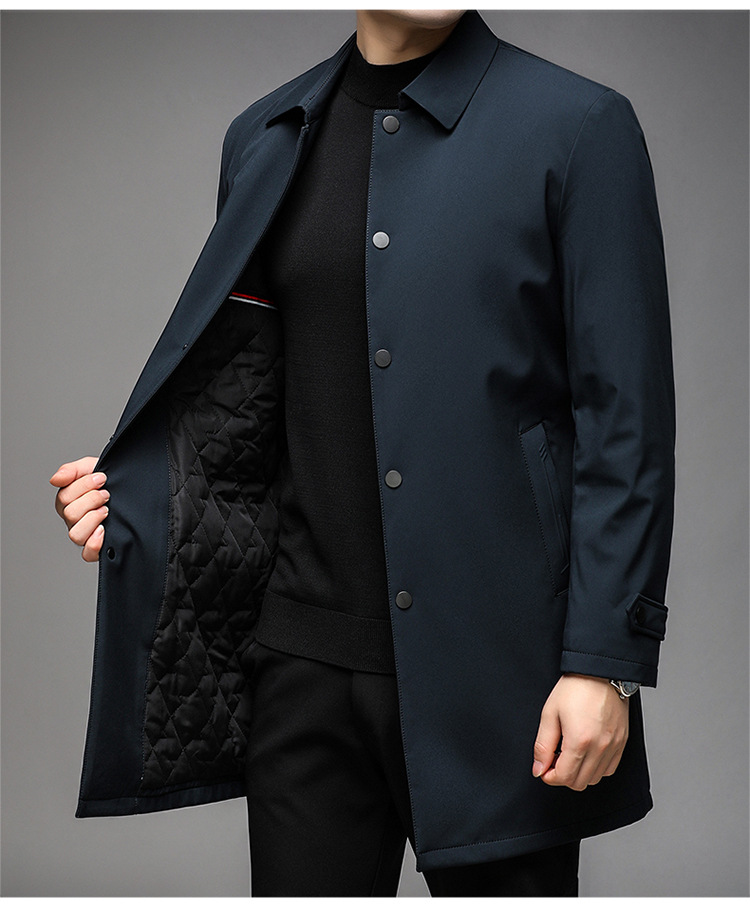 2024 가을과 겨울 긴 비즈니스 캐주얼 남성면 패딩 의류 중년 및 노인 아버지 코트 옷깃 공무원 코트