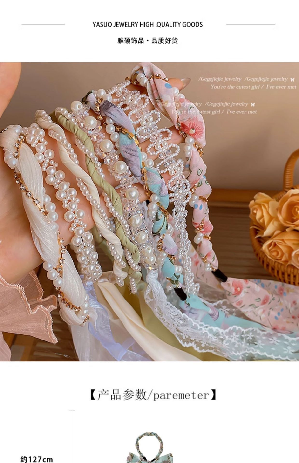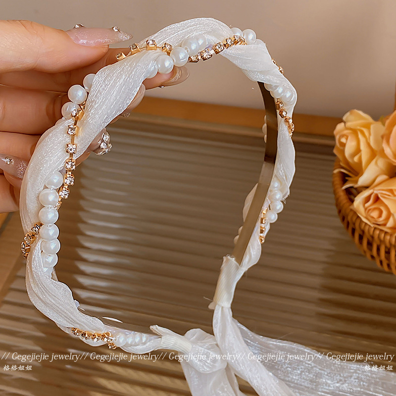 • 흰색 밝은 실크 진주 머리띠