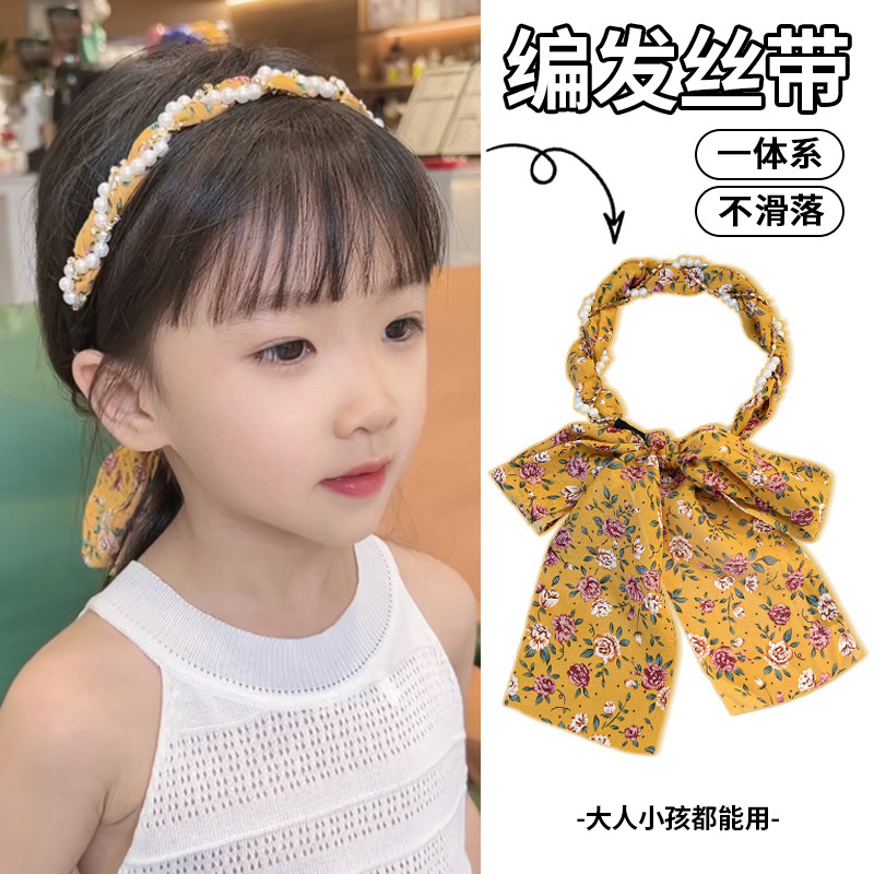 • 노란색 꽃무늬 진주 리본