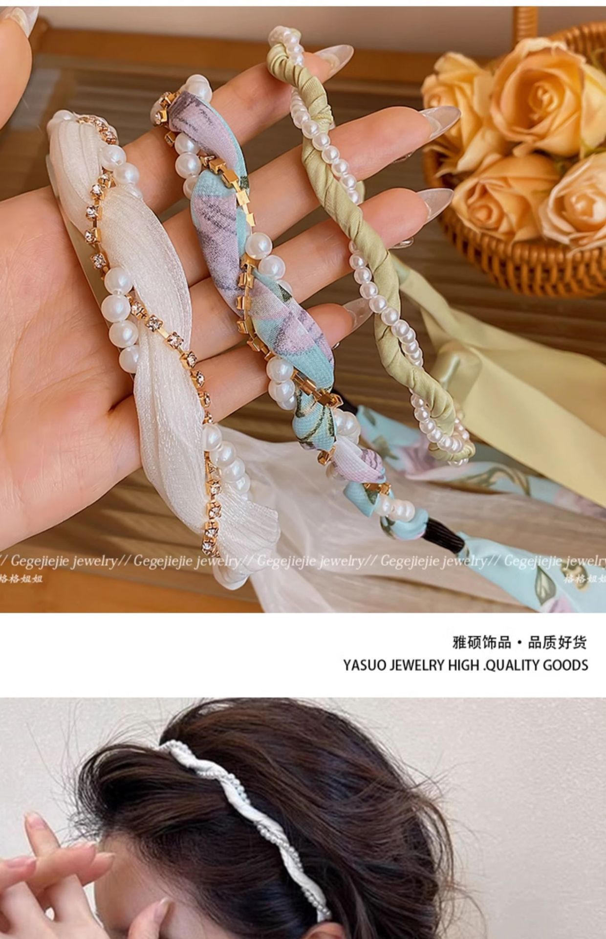 • 크리스탈 진주 머리띠