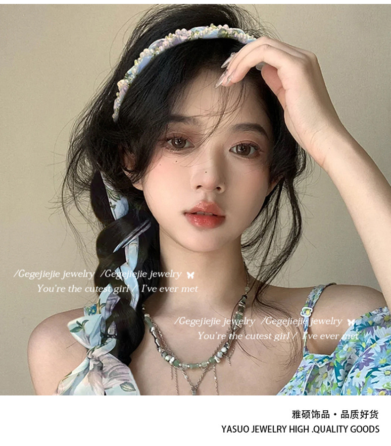 긴 실크 스카프 헤어 밴드 여성의 2024 새로운 스타일 와이드 헤어 리본 헤어 밴드 통합 해변 휴일 헤어 타이 헤드 밴드