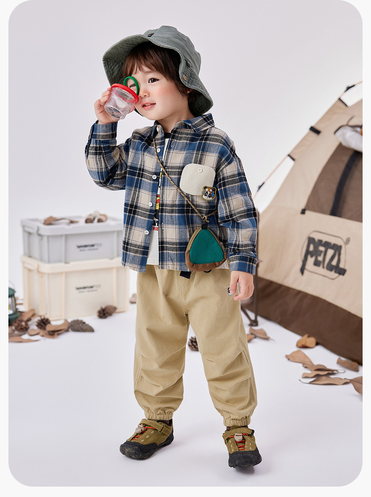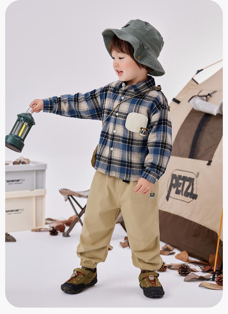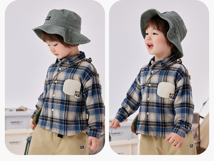 [옷] Dudu 소년 격자 무늬 셔츠 봄 소녀 티셔츠 봄 아기 바닥 셔츠 아동 바지 t스토어 가기