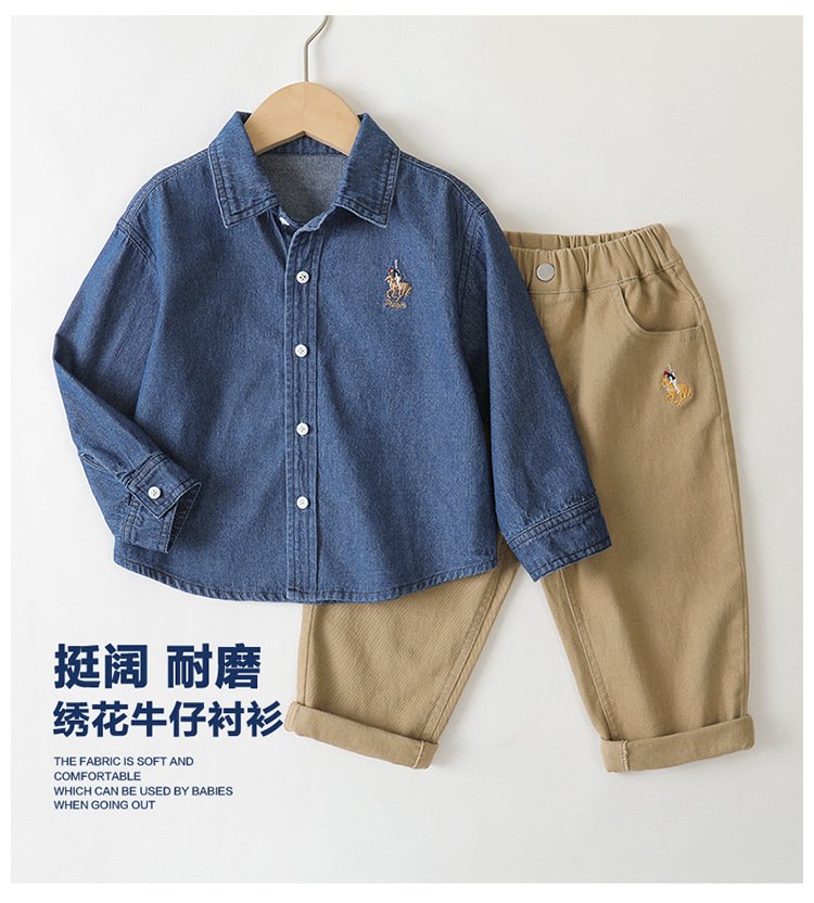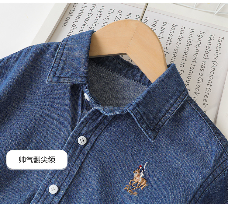 소년 순면 데님 셔츠 봄, 가을 긴팔 아동복 아기 어린이 셔츠 2025 새로운 가을 코트 유행