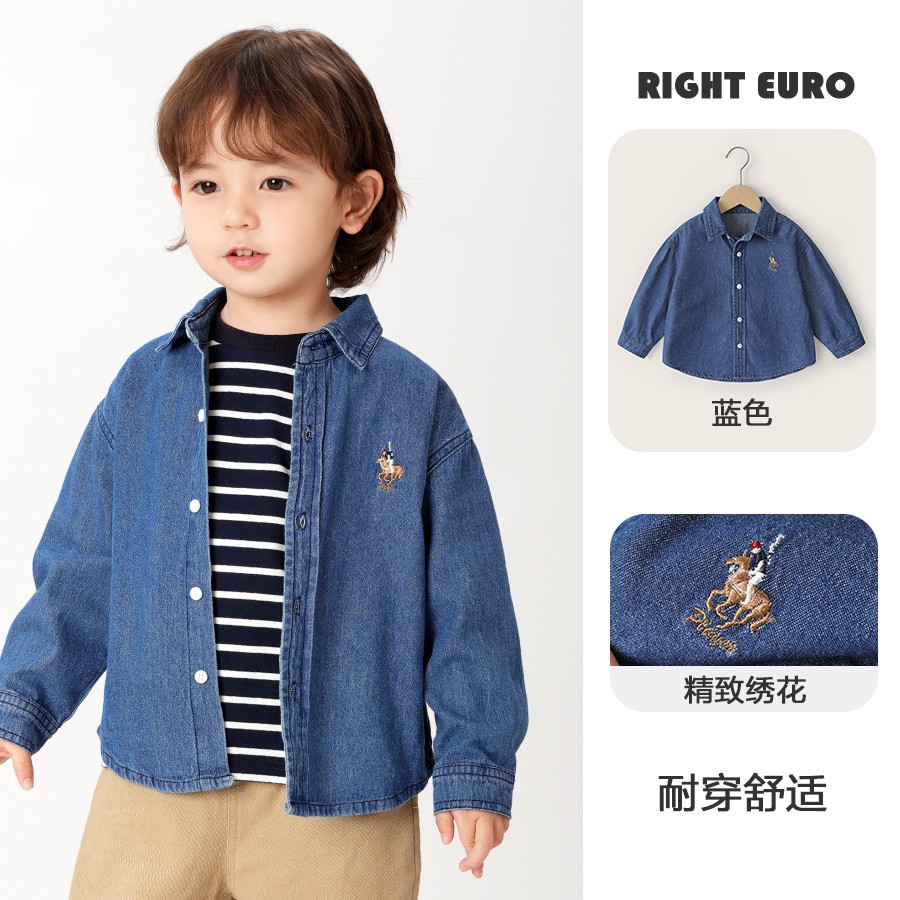 소년 순면 데님 셔츠 봄, 가을 긴팔 아동복 아기 어린이 셔츠 2025 새로운 가을 코트 유행스토어 가기