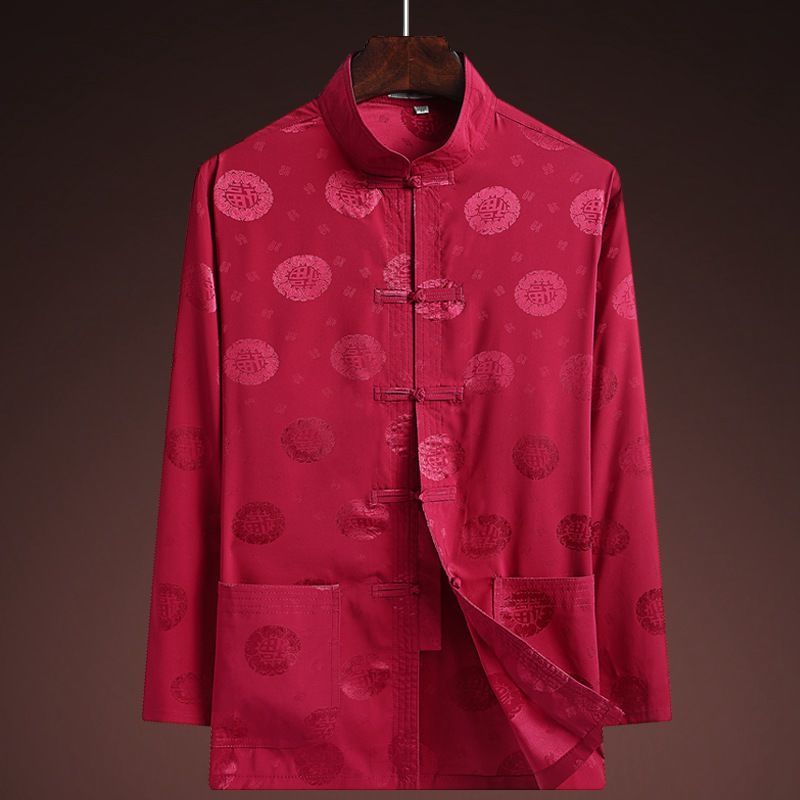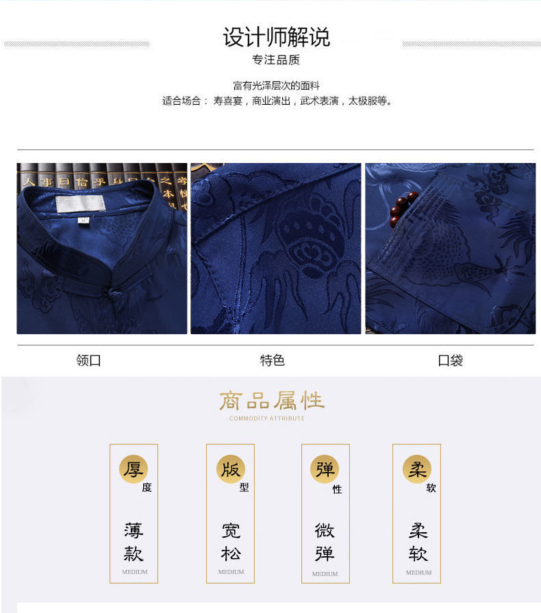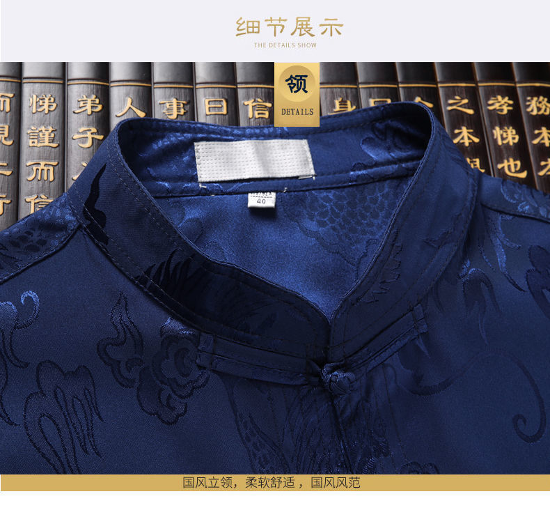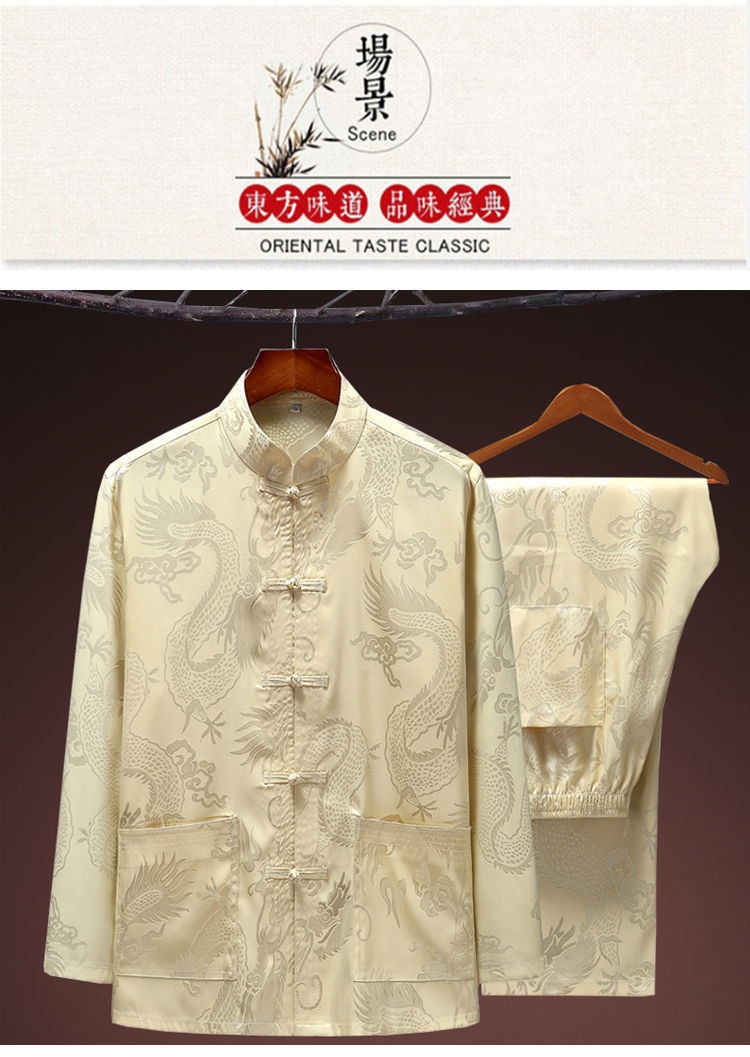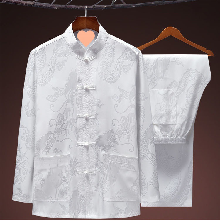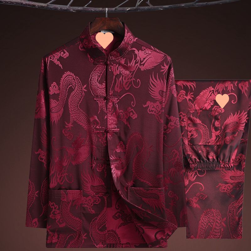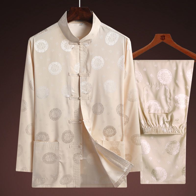 봄과 여름 아이스 실크 중년 및 노인 탕 세트 남자 긴팔 세트 아빠의 실크 셔츠 할아버지의 아침 운동 복 한푸스토어 가기