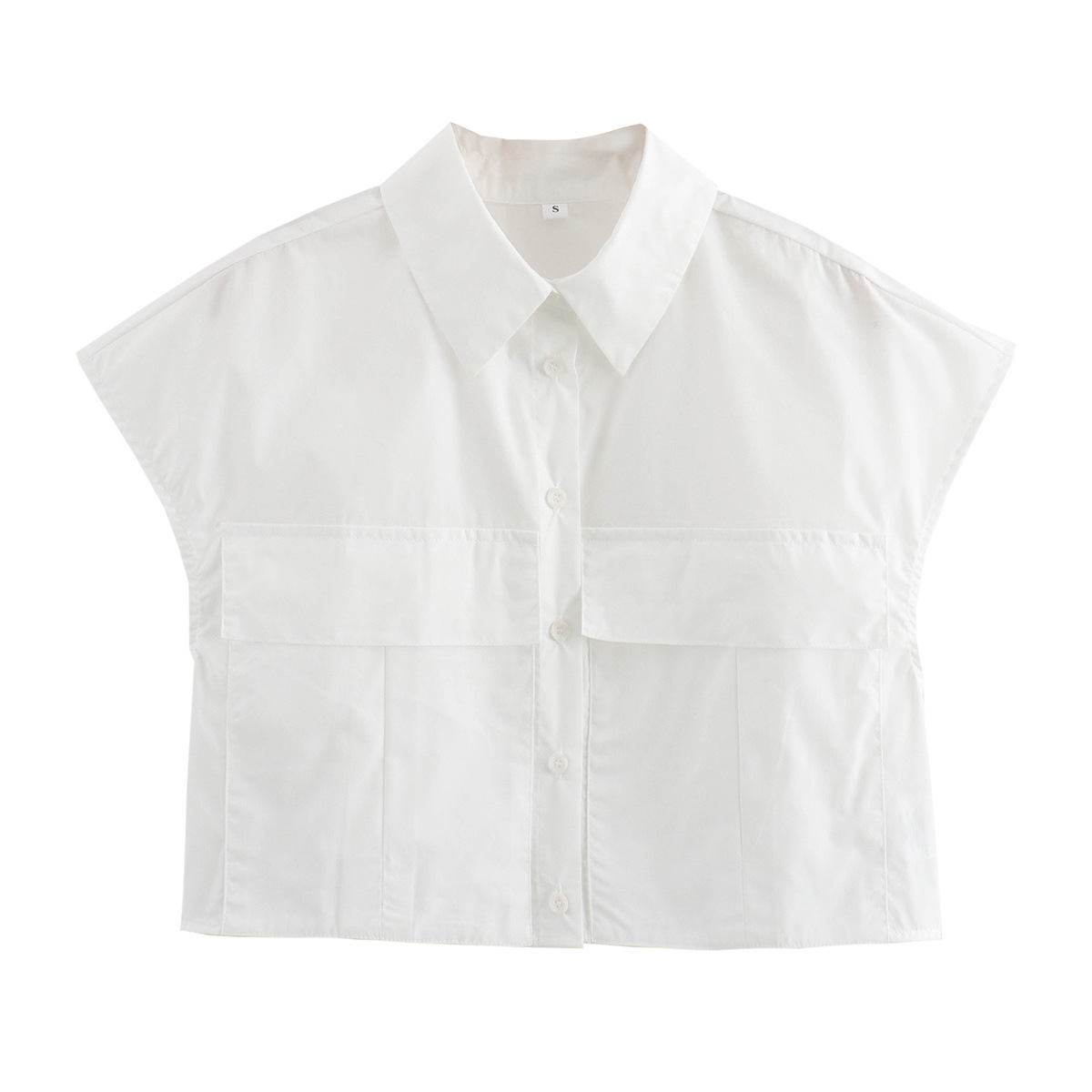 2024 여름 새로운 여성 의류 유럽과 미국 스타일 우아한 랩 칼라 디자인 틈새 포켓 장식 짧은 셔츠 탑