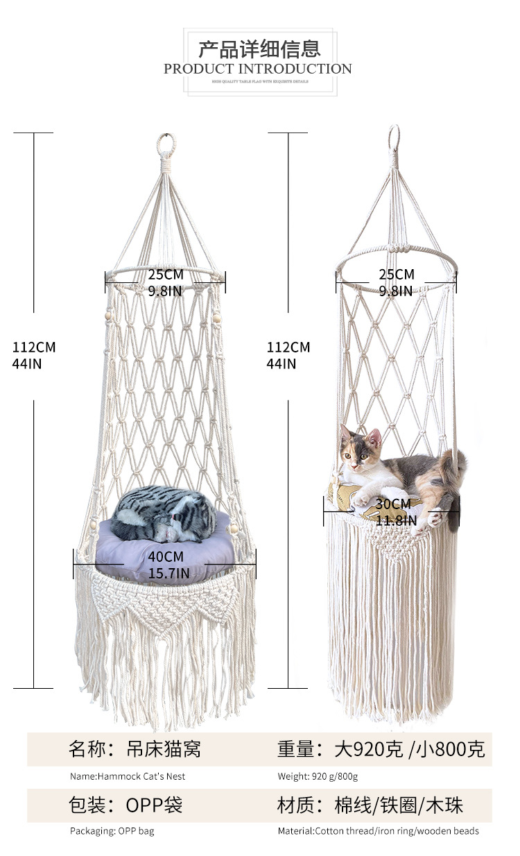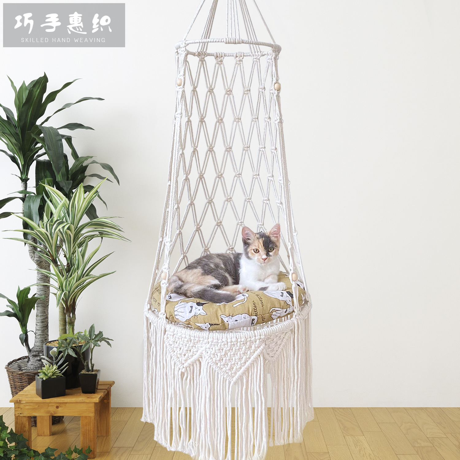 보헤미안 스타일 수제 짠 고양이 해먹 애완 동물 그물 가방 교수형 바구니 고양이 스윙 교수형 고양이 둥지 애완 동물 침대