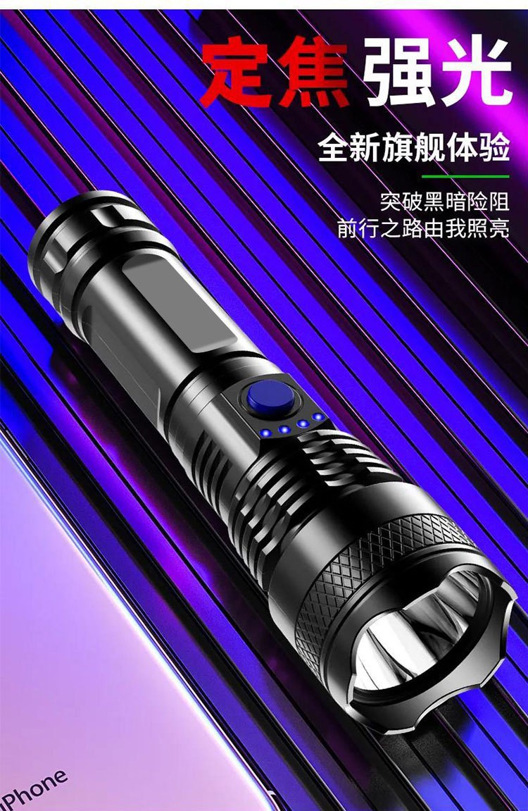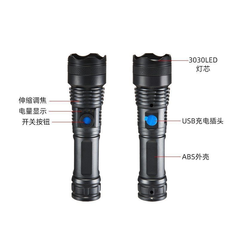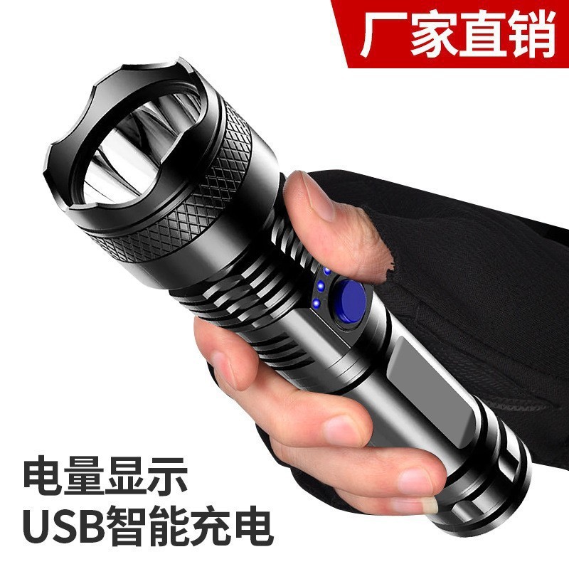 국경 간 폭발 ABS 밝은 LED 손전등 USB 충전 디스플레이 야외 홈 휴대용 야간 낚시 캠핑 손전등스토어 가기