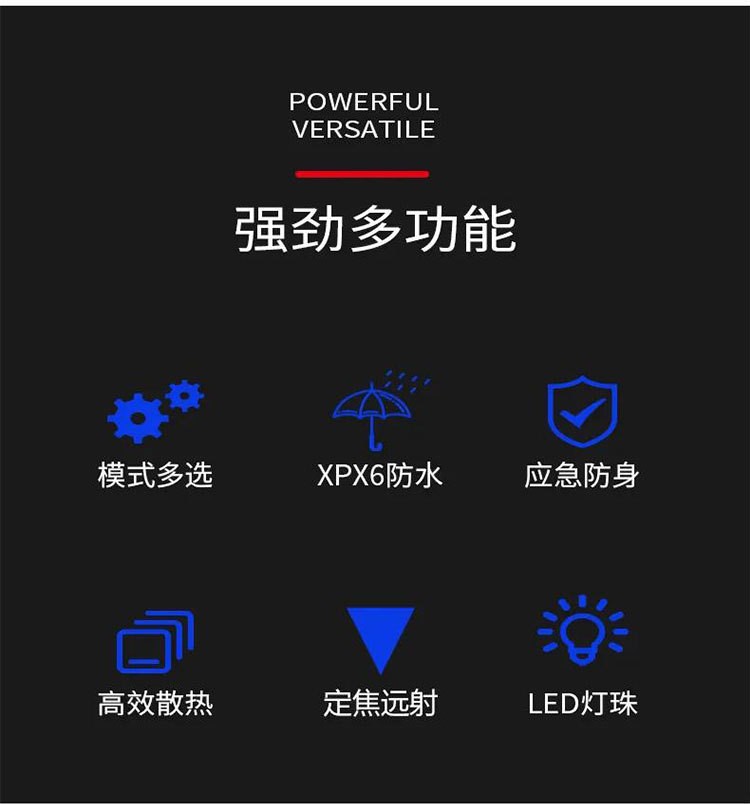 국경 간 폭발 ABS 밝은 LED 손전등 USB 충전 디스플레이 야외 홈 휴대용 야간 낚시 캠핑 손전등