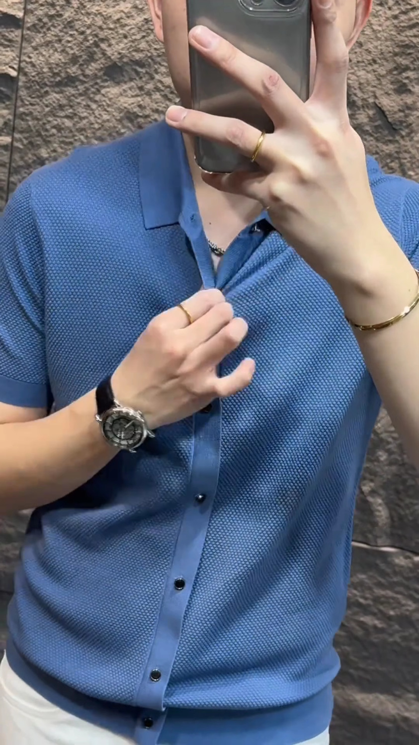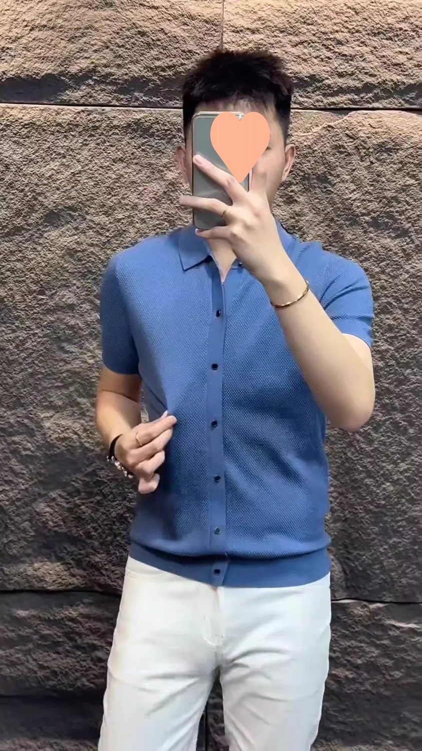 유럽 하이 엔드 남성 여름 새 옷깃 비즈니스 캐주얼 라이트 럭셔리 패션 슬림핏 올 매치 솔리드 컬러 하프 슬리브 티셔츠스토어 가기