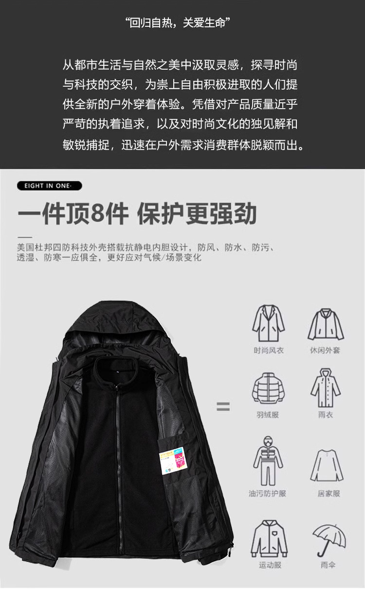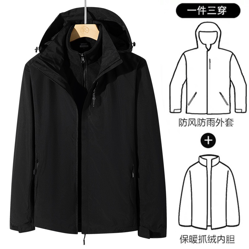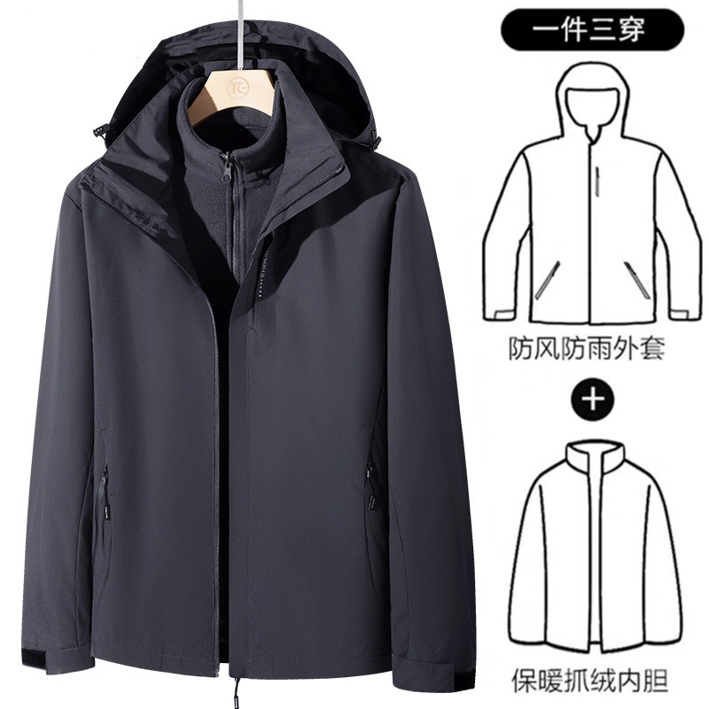 남성 봄과 가을 새로운 야외 3 대 1 방풍 방수 따뜻한 남성 캐주얼 후드 재킷