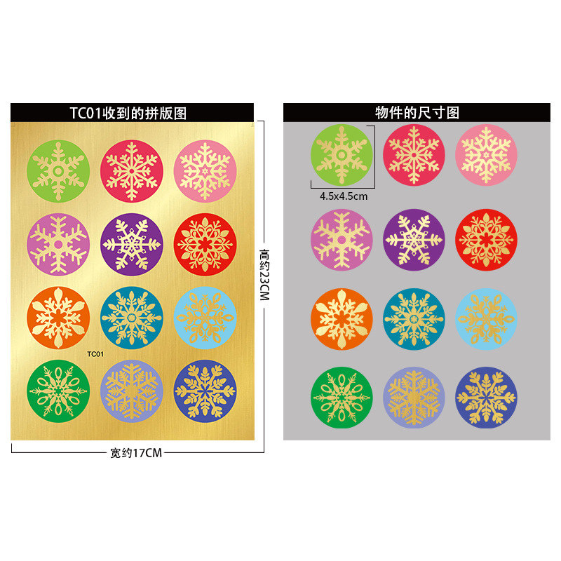 크리스마스 장식 선물 스티커 청동 눈송이 봉투 사탕 선물 상자 포장 씰 스틱 라운드