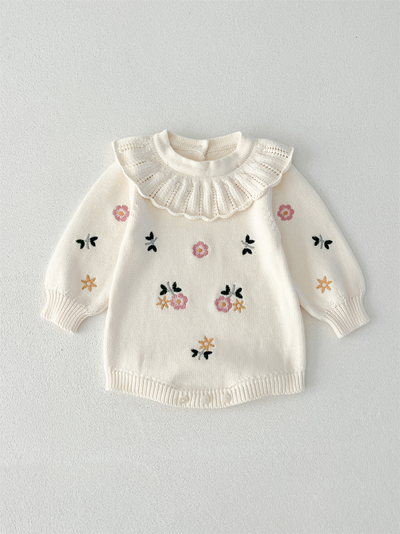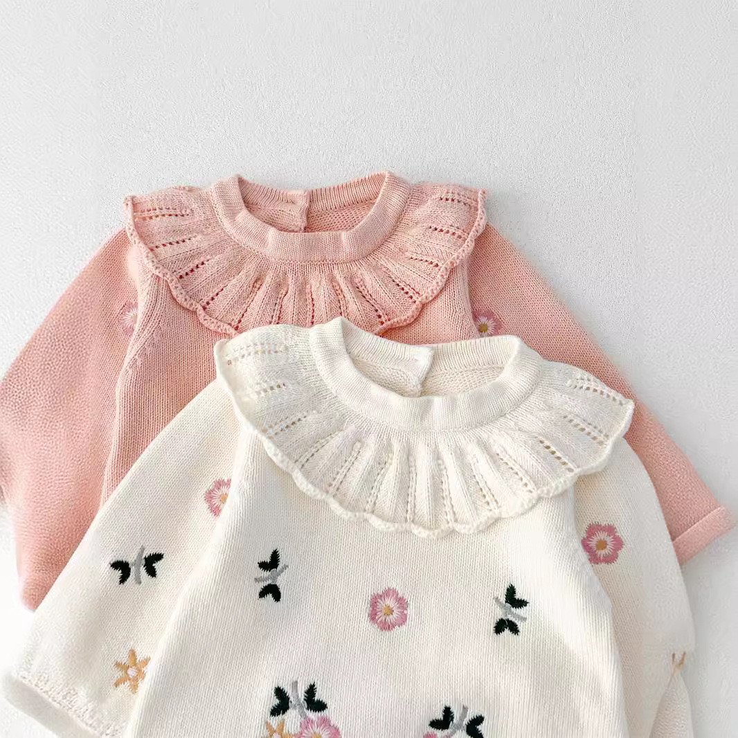 봄과 가을 소녀 아기 아기 자수 옷깃 니트 양모 점프 스웨터