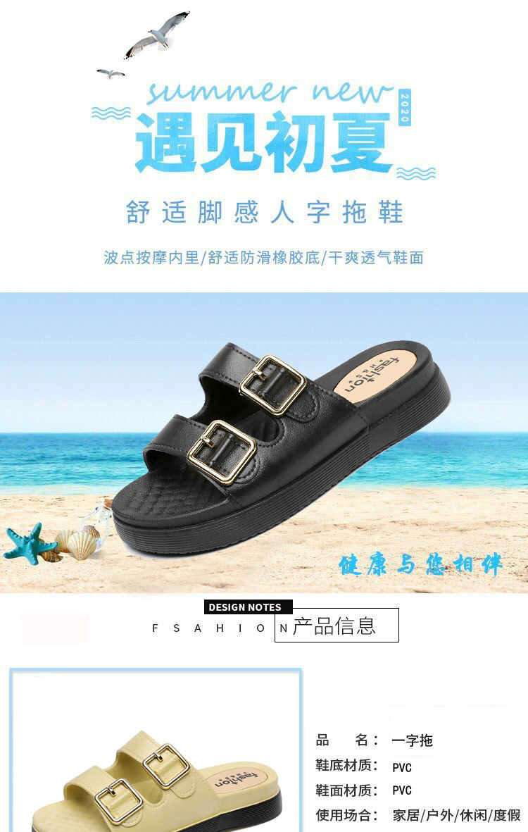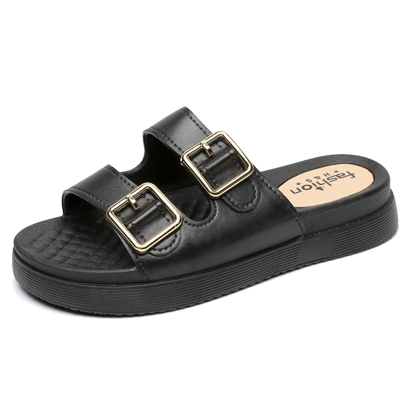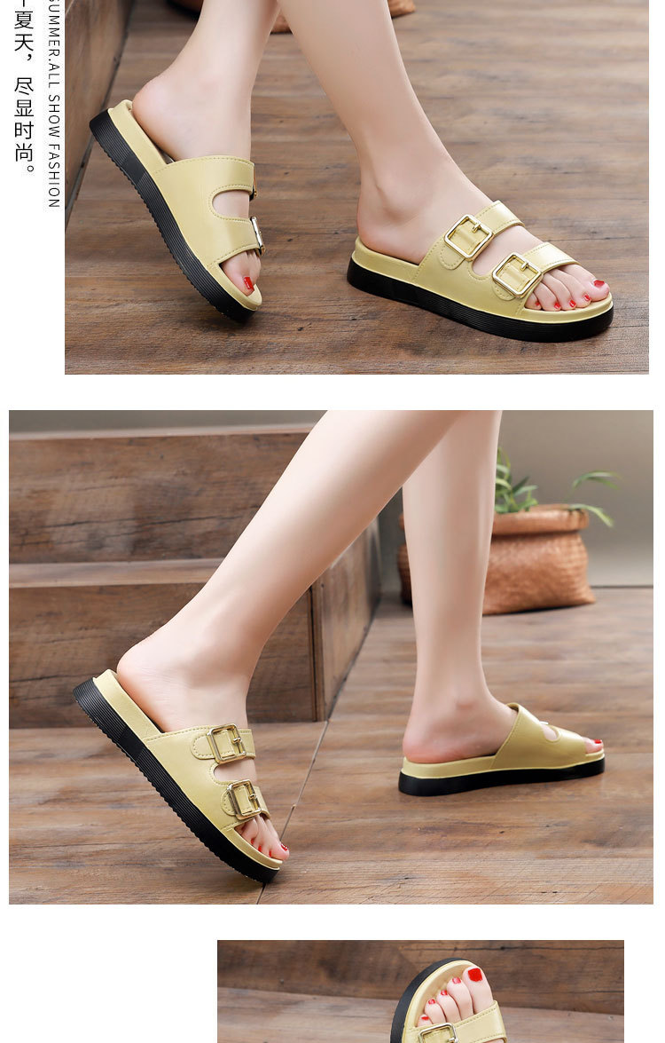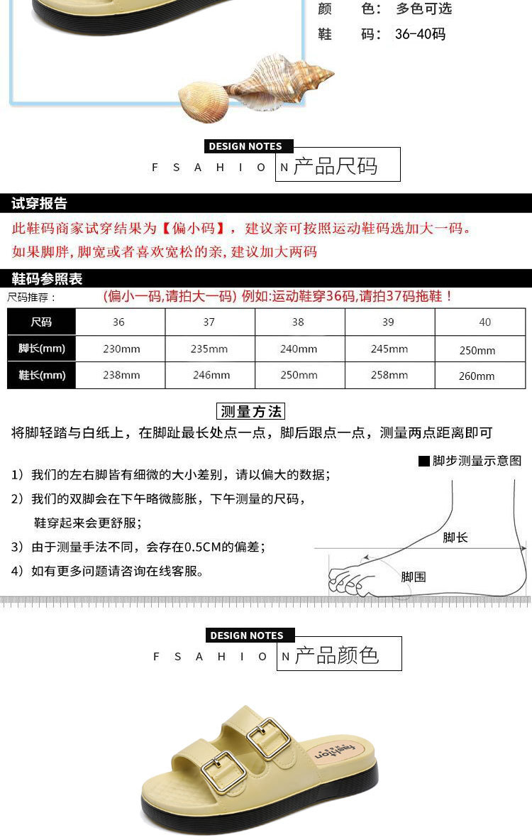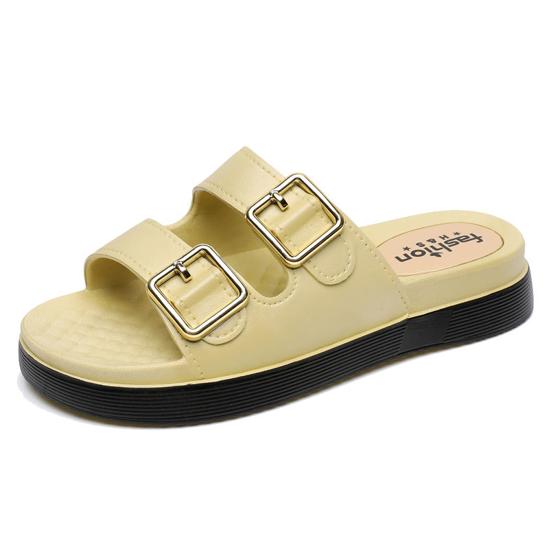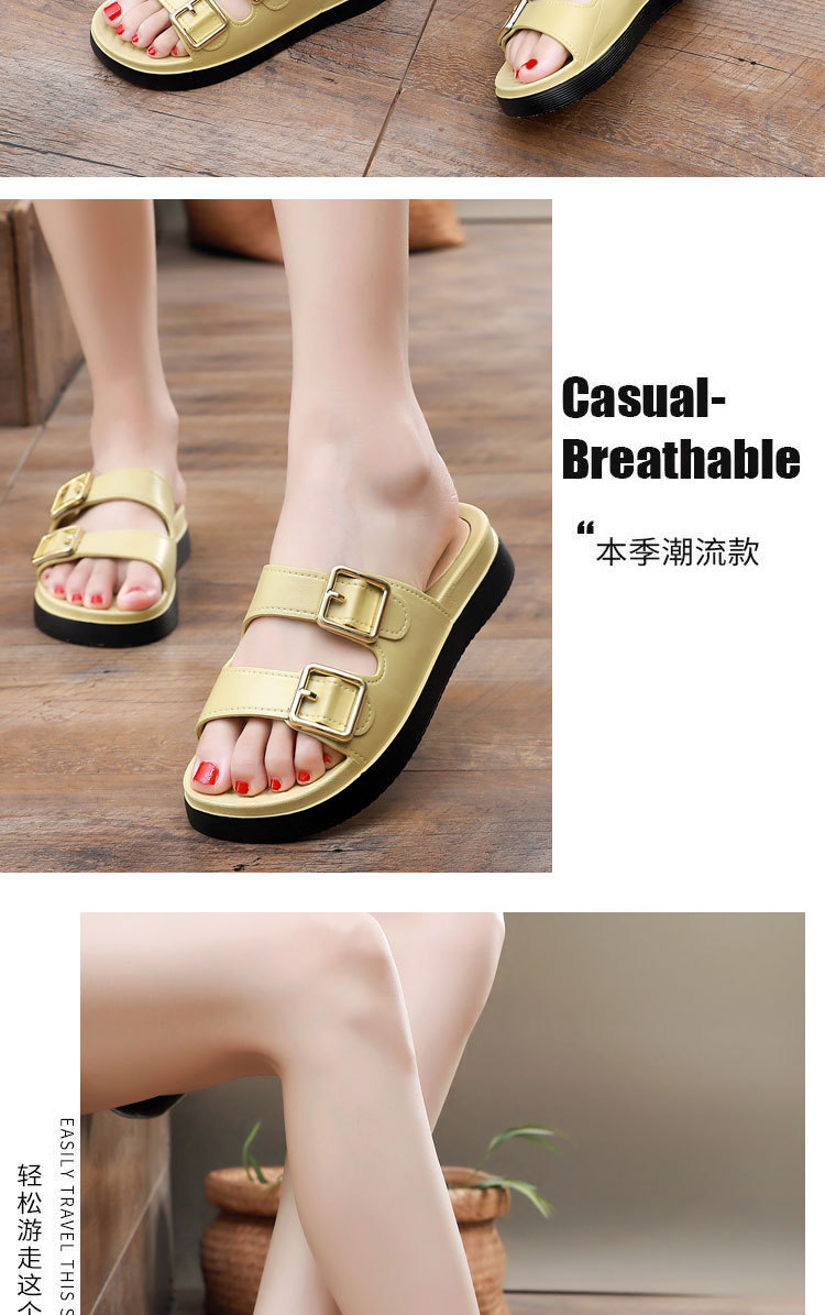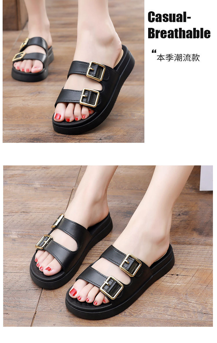 여성용 미끄럼 방지 슬라이드 유행 새 여름 외부 두꺼운 하단 미드 힐 편안한 더블 버클 캐주얼 비치 샌들
