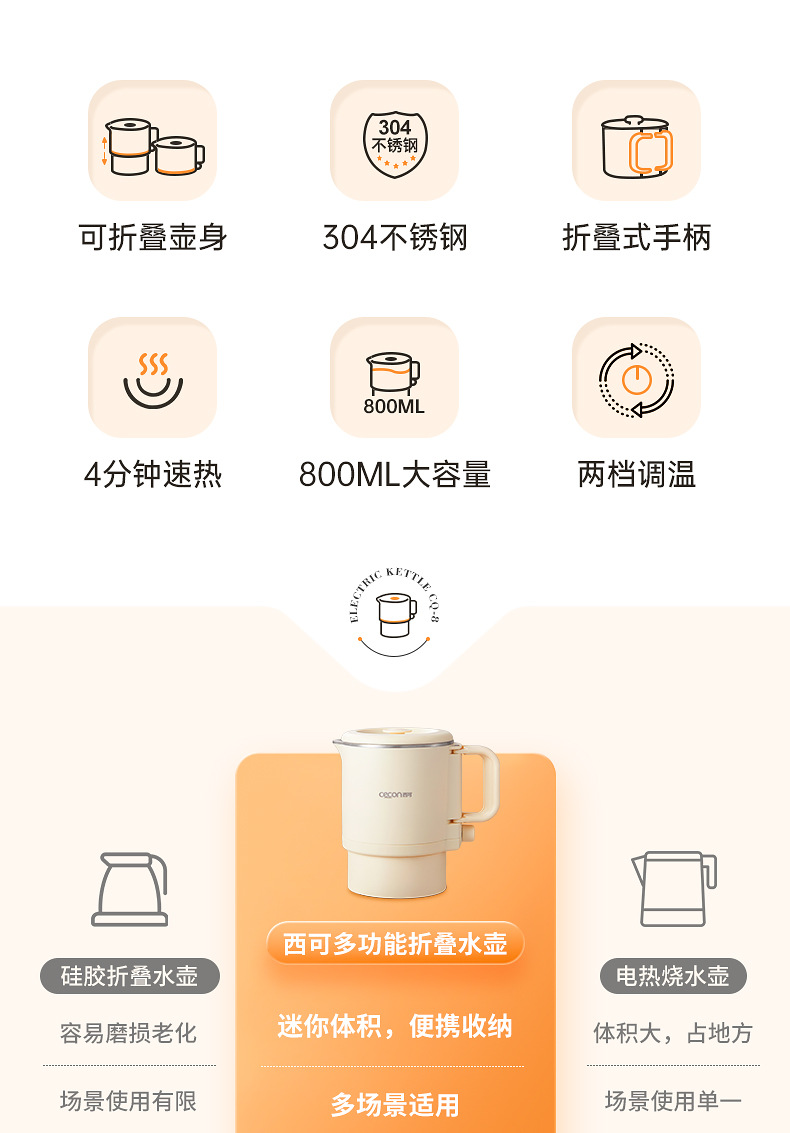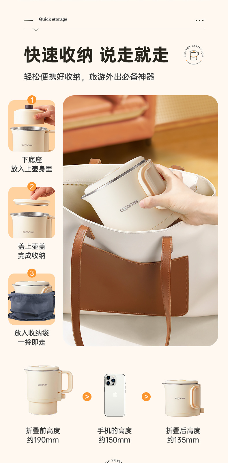 서양 접이식 주전자 휴대용 주전자 스테인레스 스틸 여행 전기 주전자 기숙사 전기 주전자스토어 가기