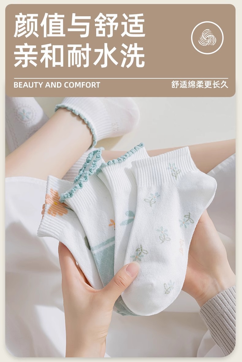 양말 여성 여름 양말 얇은 중공 꽃 낮은 상단 나무 귀 짧은 허리 낮은 튜브 보트 양말 재고 도매