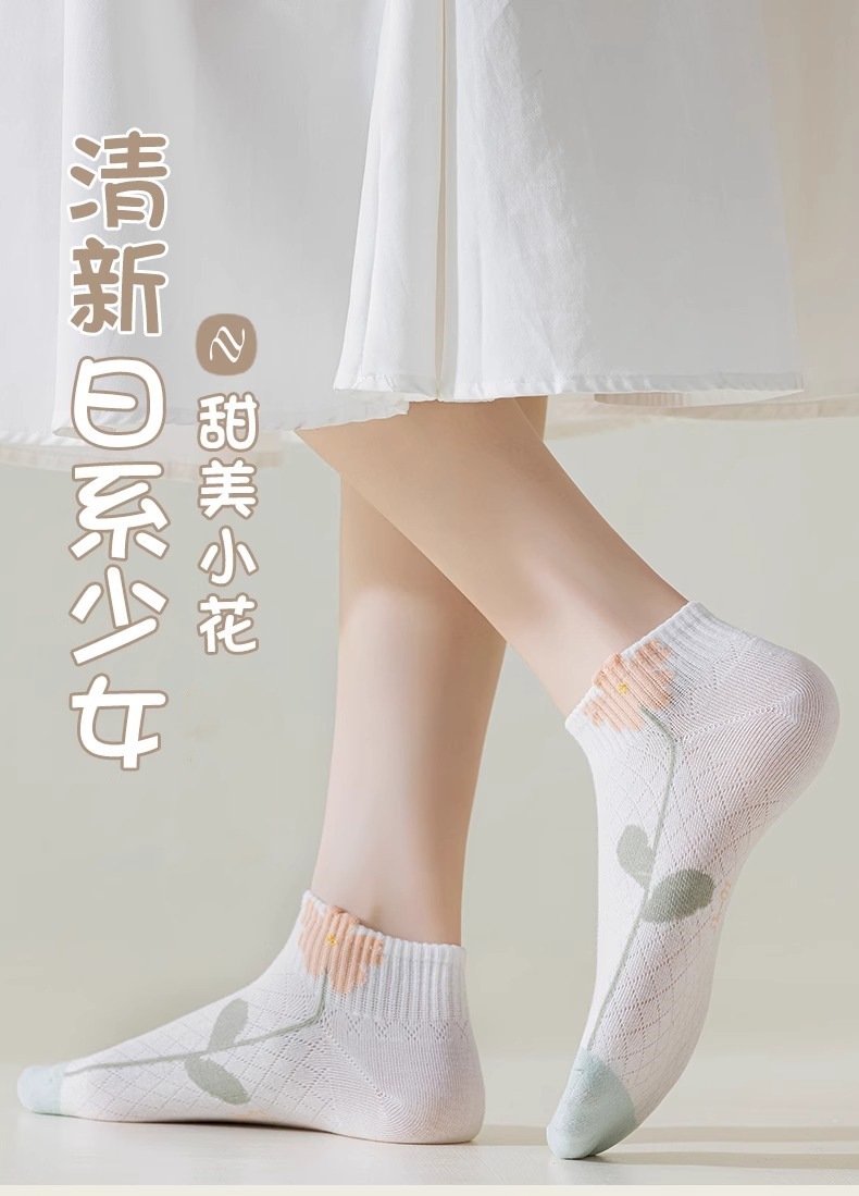 양말 여성 여름 양말 얇은 중공 꽃 낮은 상단 나무 귀 짧은 허리 낮은 튜브 보트 양말 재고 도매스토어 가기